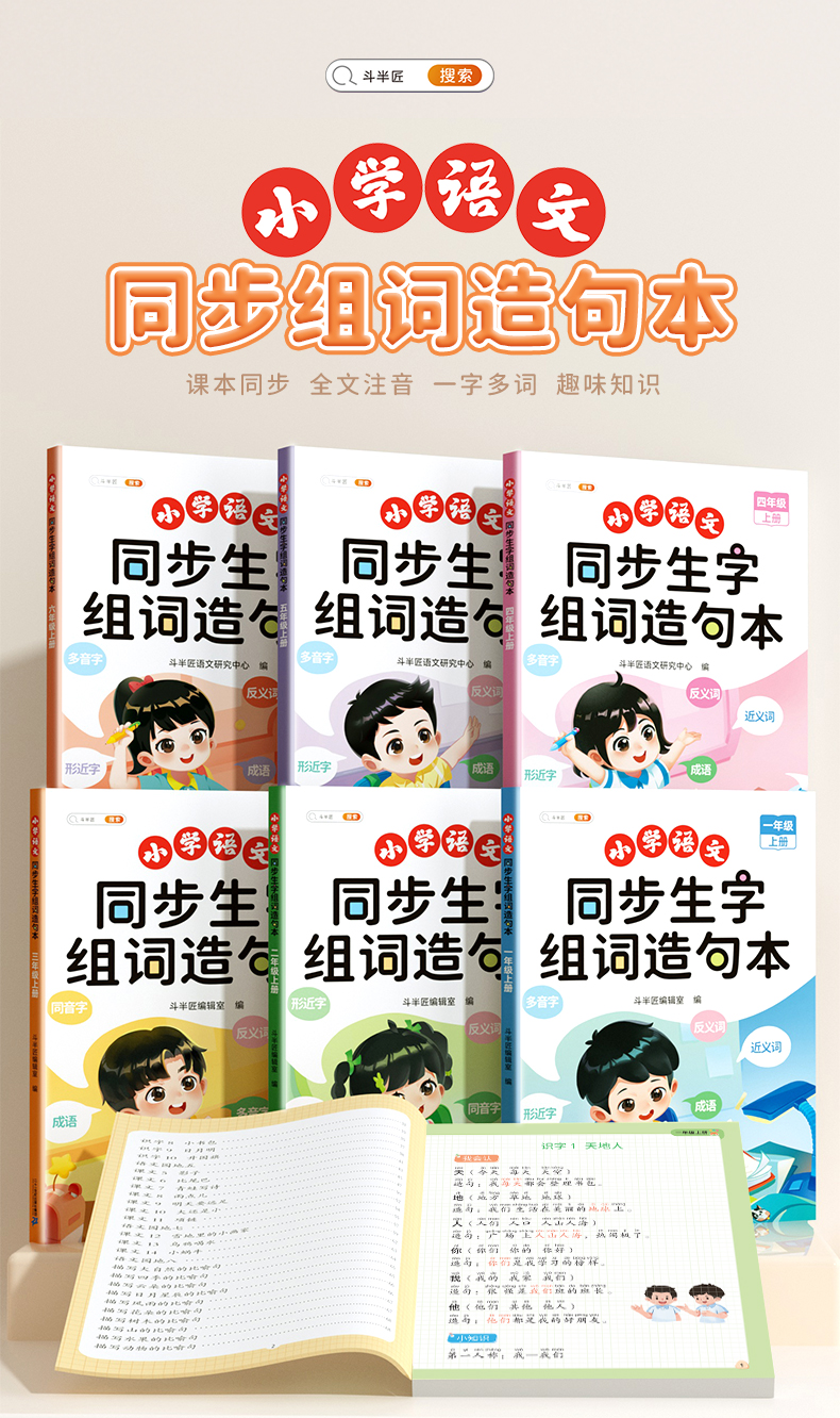 【社群首单福利】小学语文人教版同步生字组词造句本专项训练