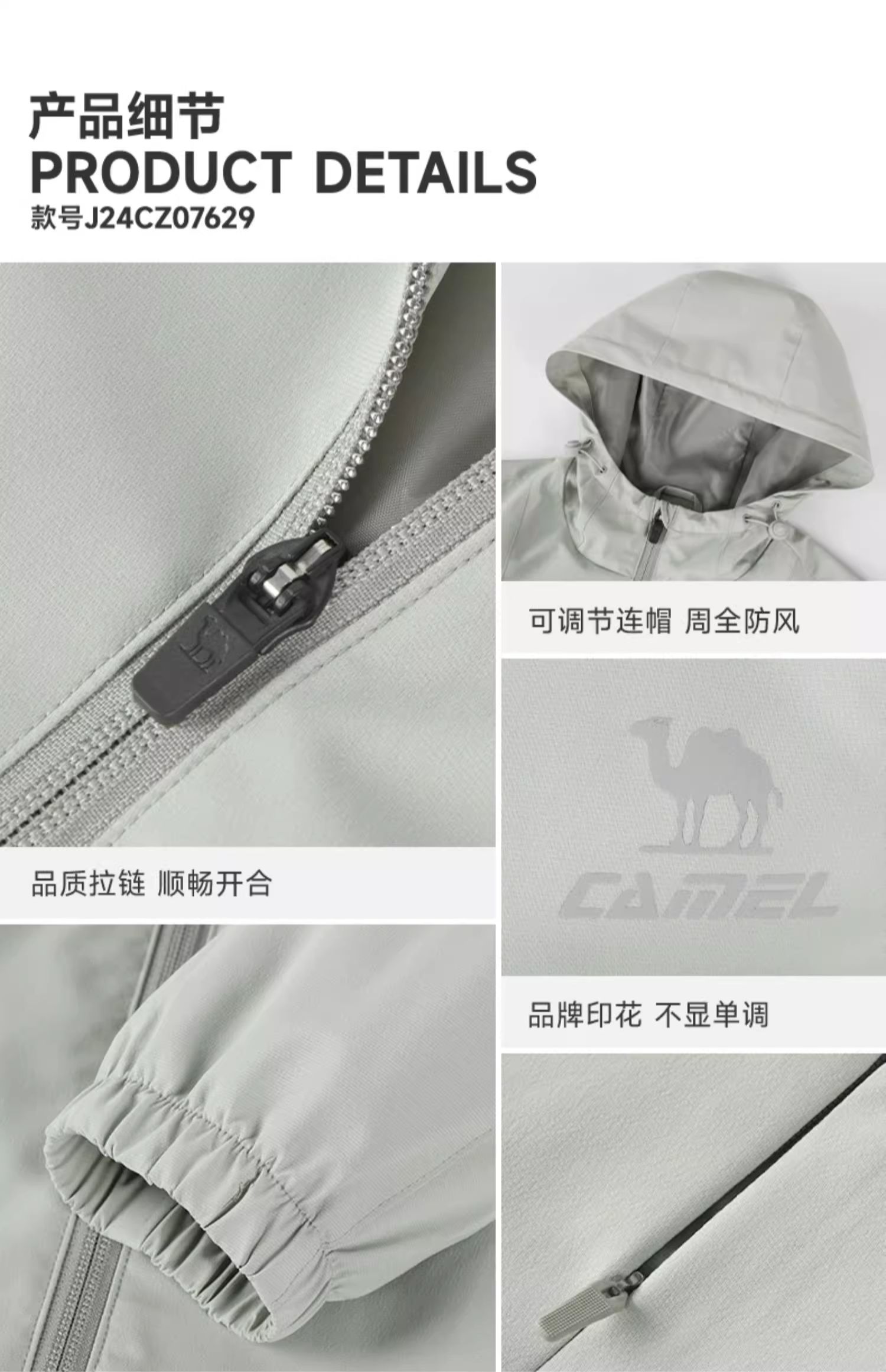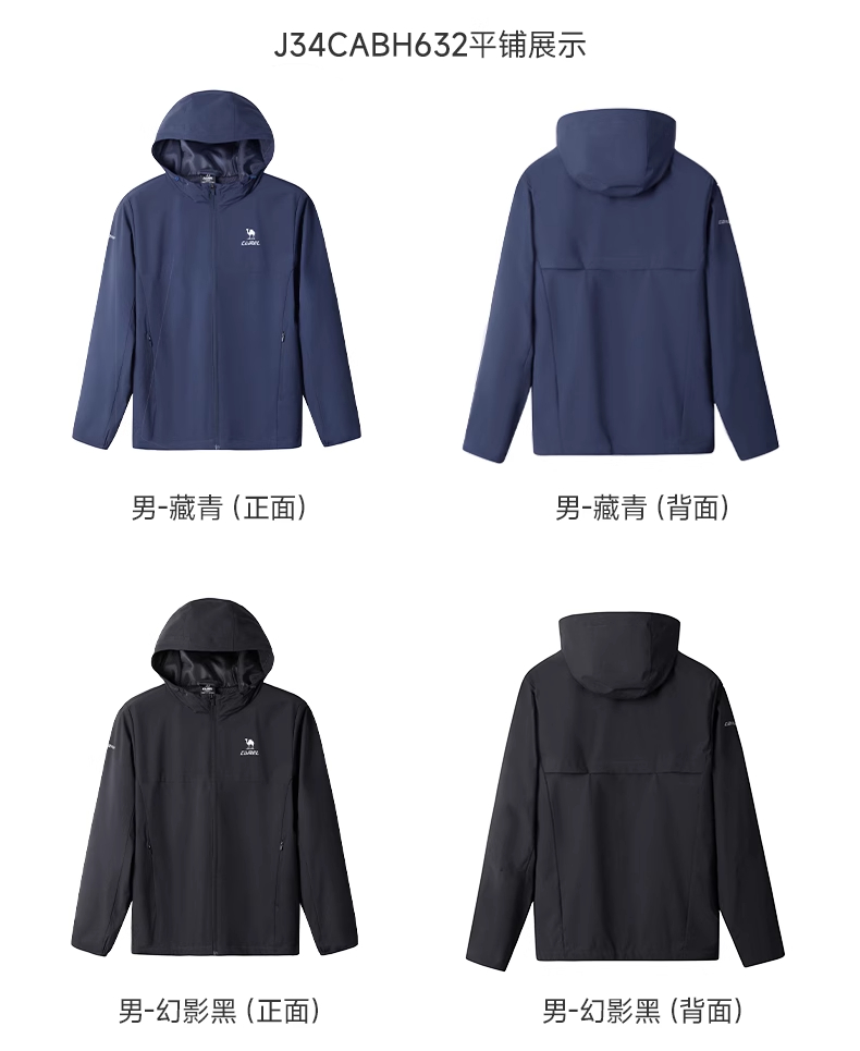 骆驼运动风衣外套秋冬季新款梭织连帽防风防水舒适保暖顺滑亲肤男 C13CAY6021_J34CABH632
