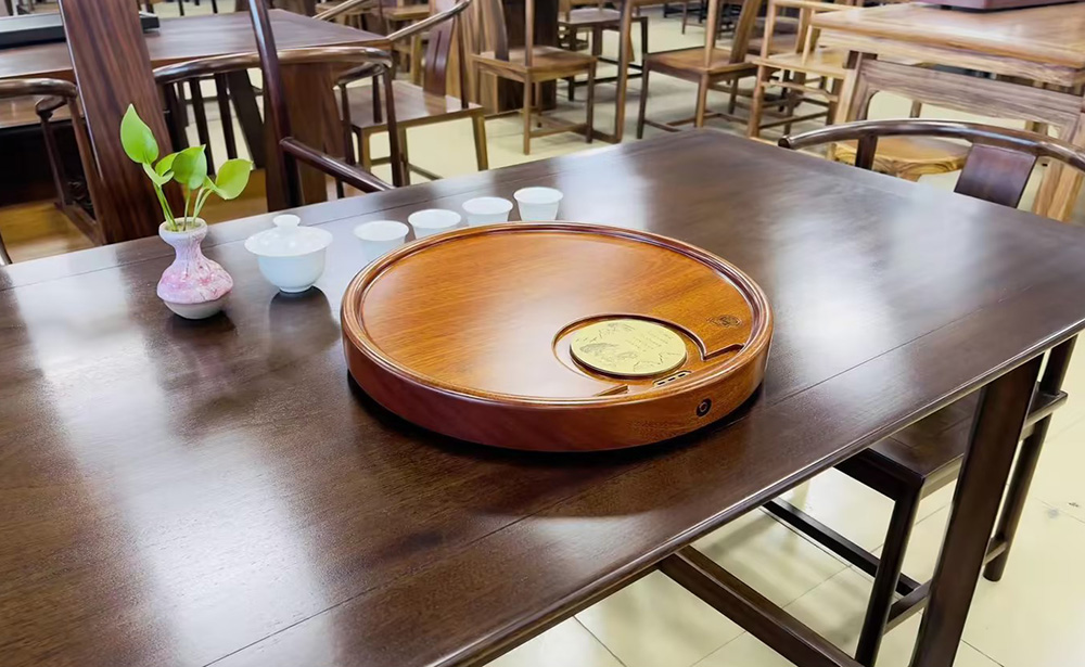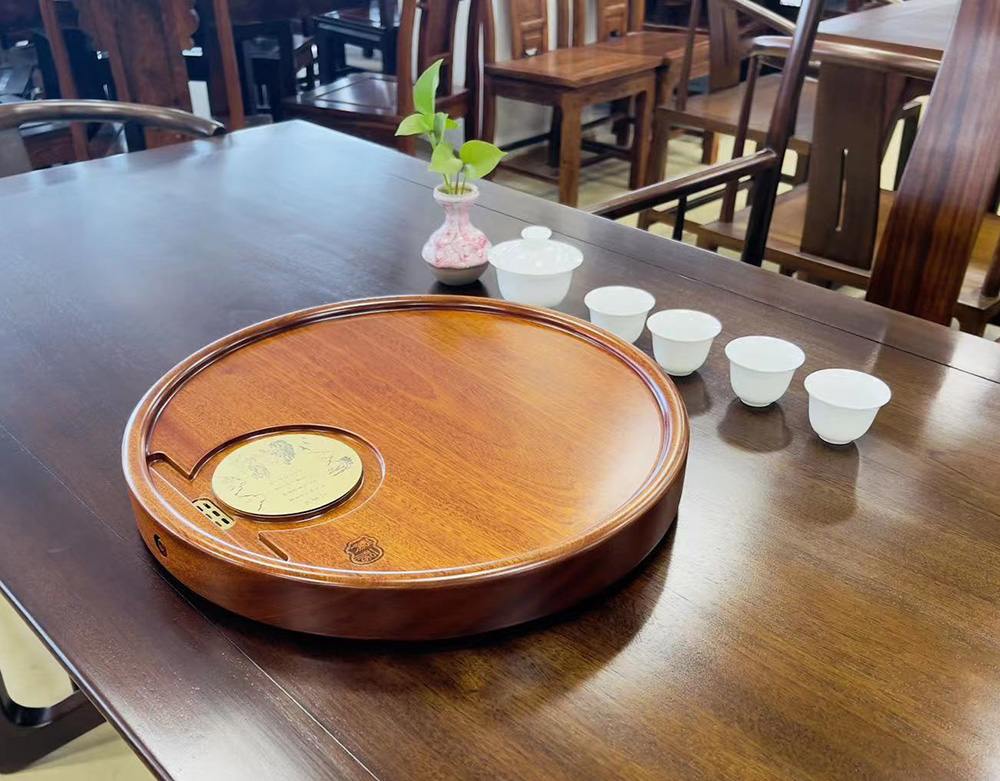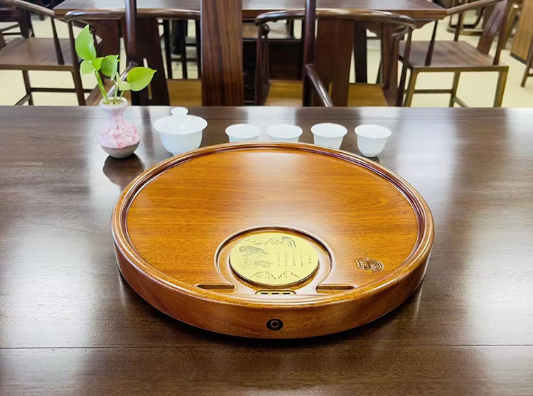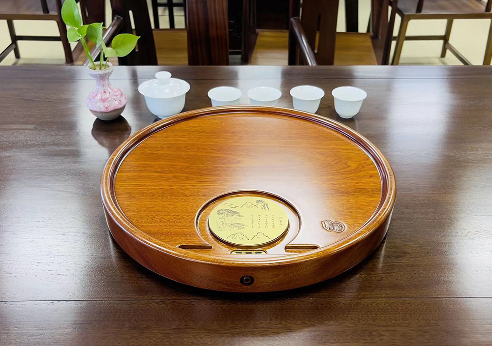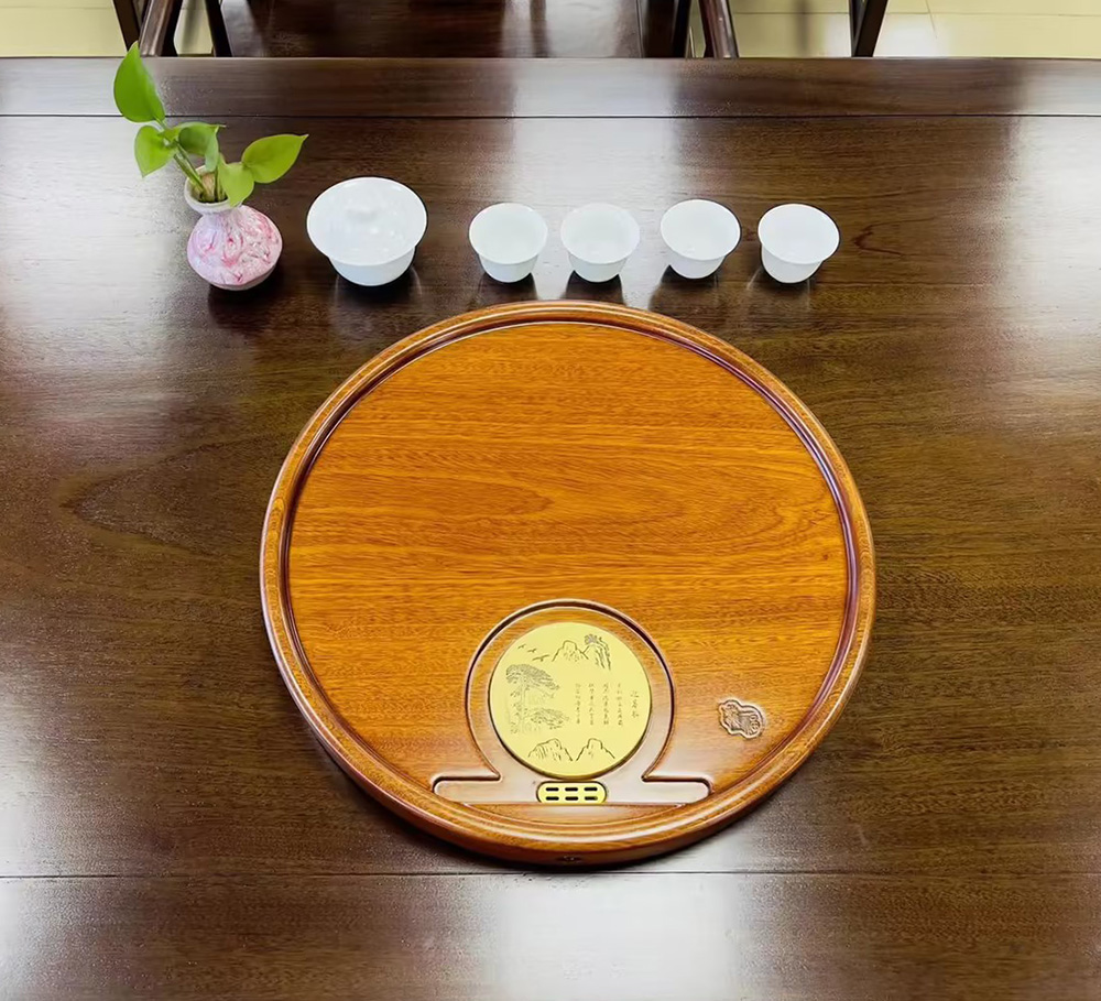 龙福刚果花梨迎客松圆形茶盘(约40*40cm)