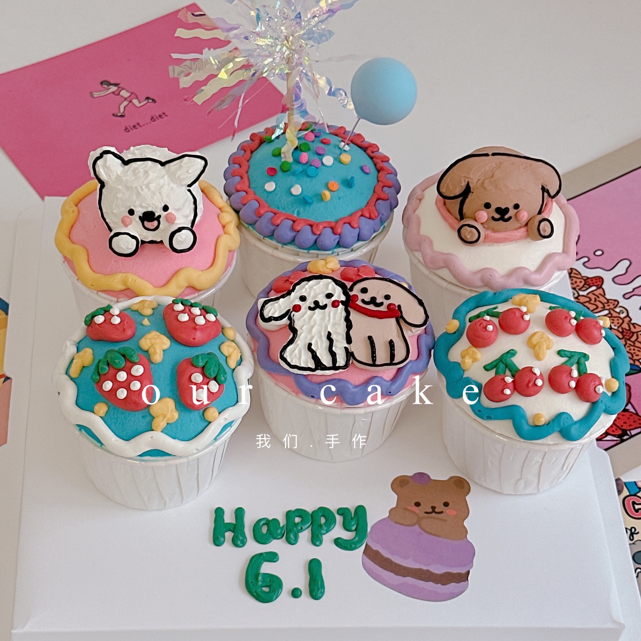 手绘卡通动物杯子蛋糕-无夹心内有卡仕达酱-低糖无添加