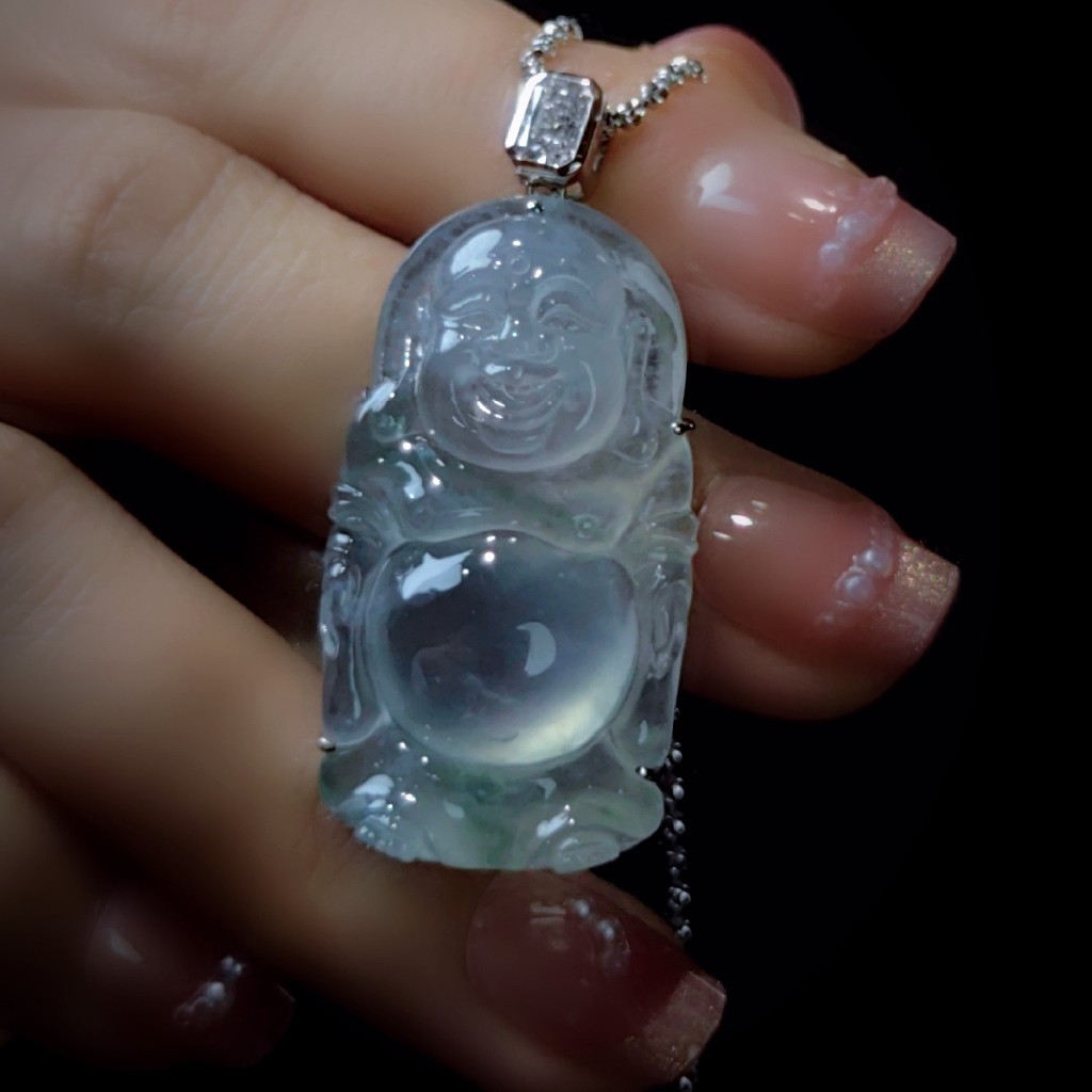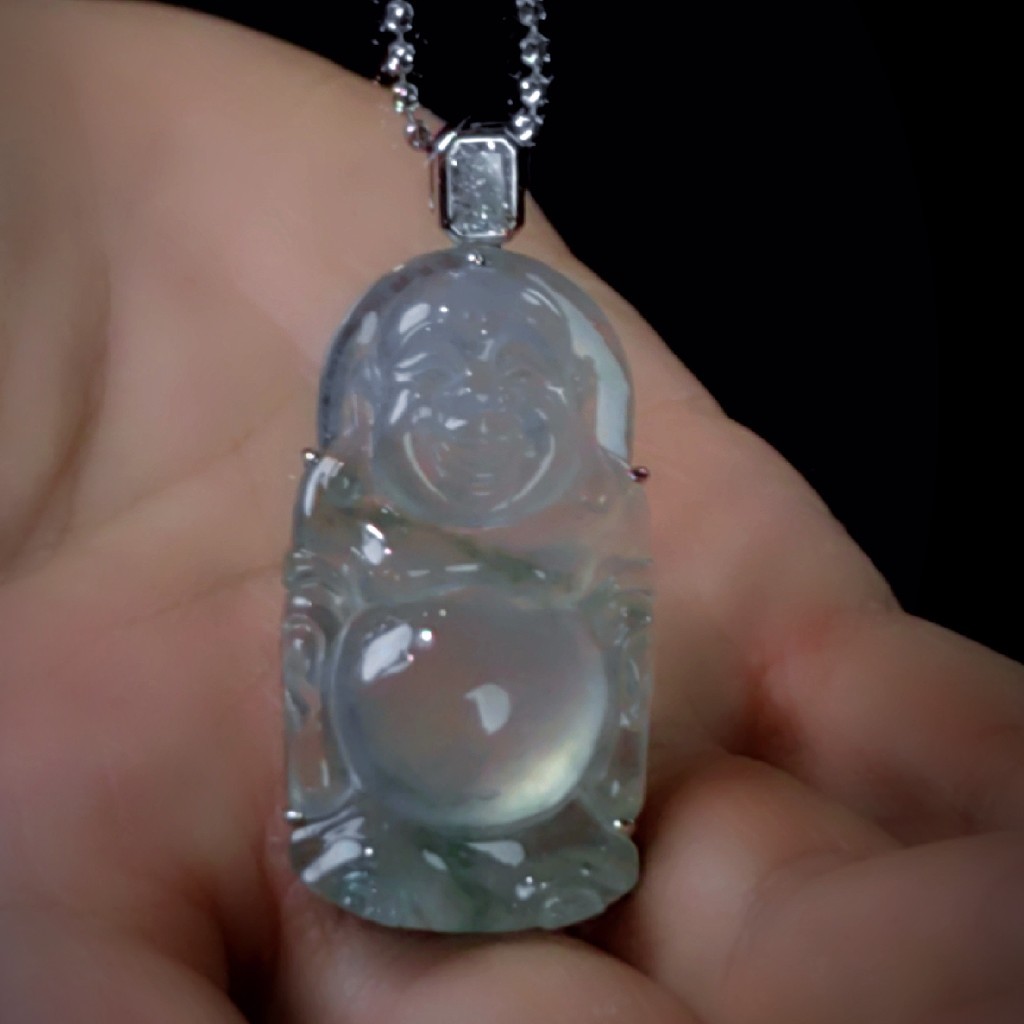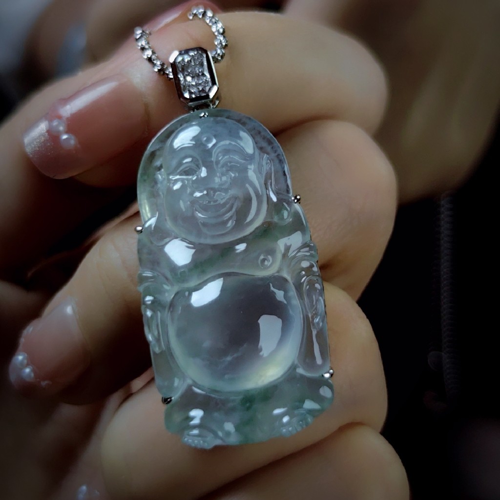 商品:18k玻璃种翡翠站弥勒