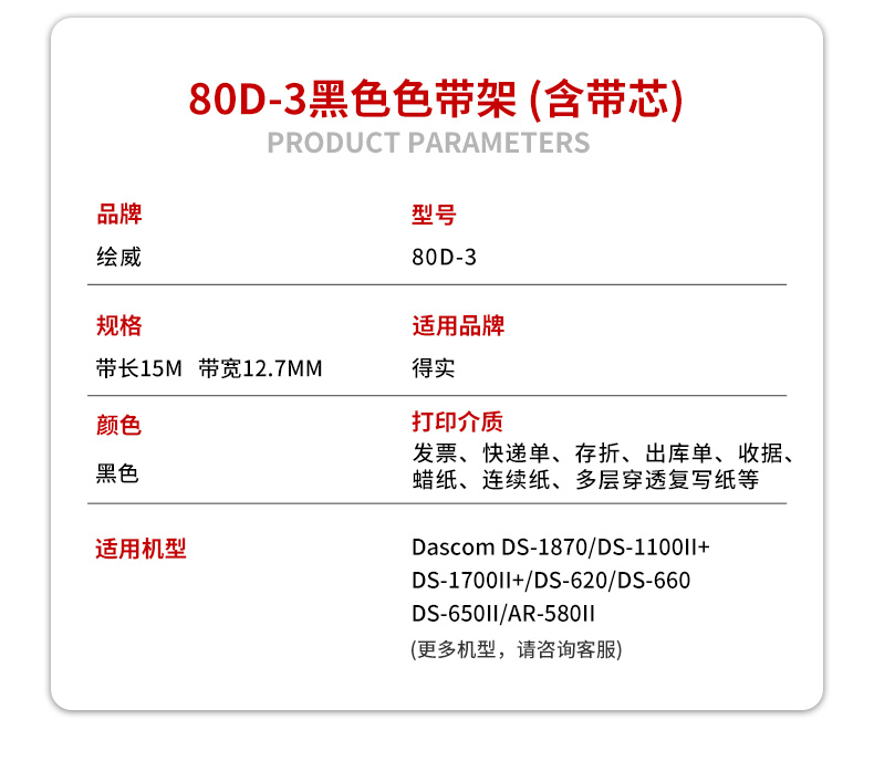 绘威臻享版 80D-3色带架 黑色 适用得实DS-1870 DS-1100II DS-1700II DS-620 DS-660 DS-650II AR-580II