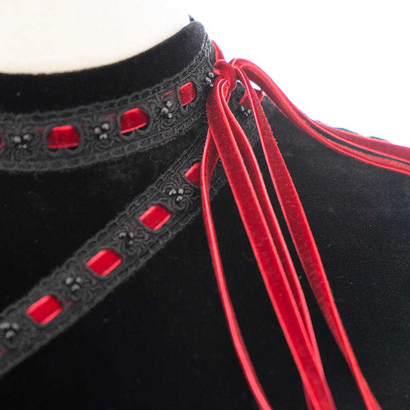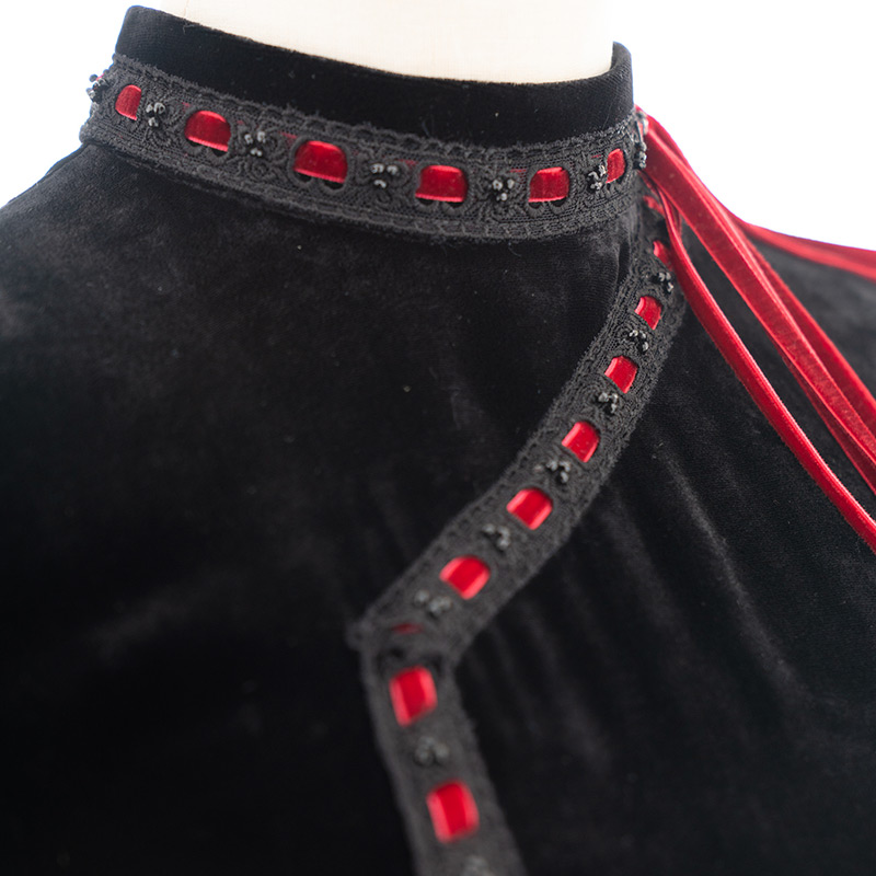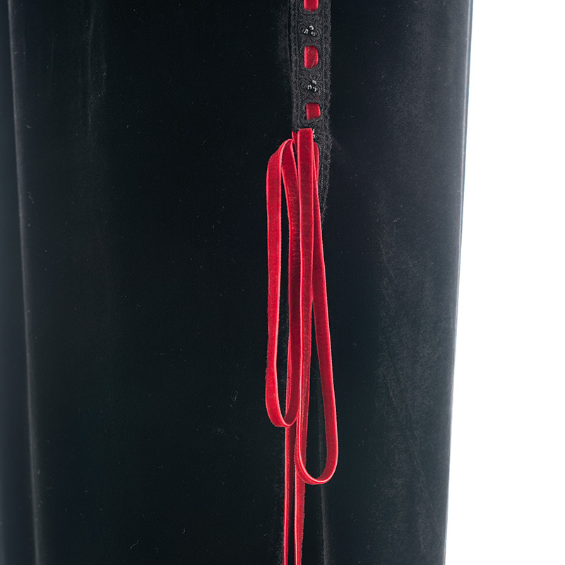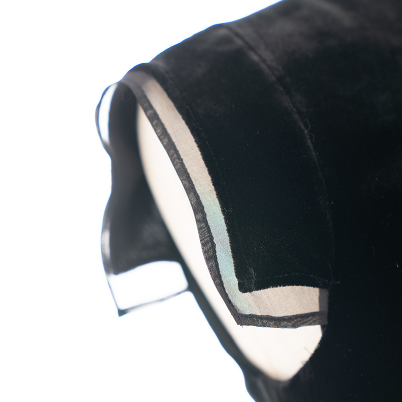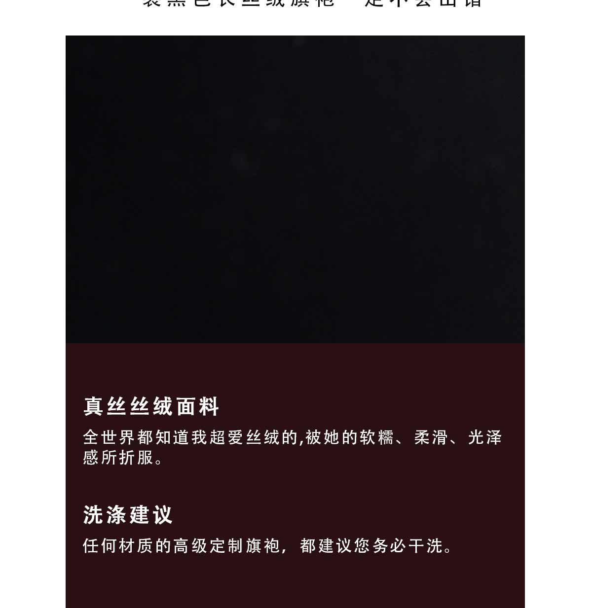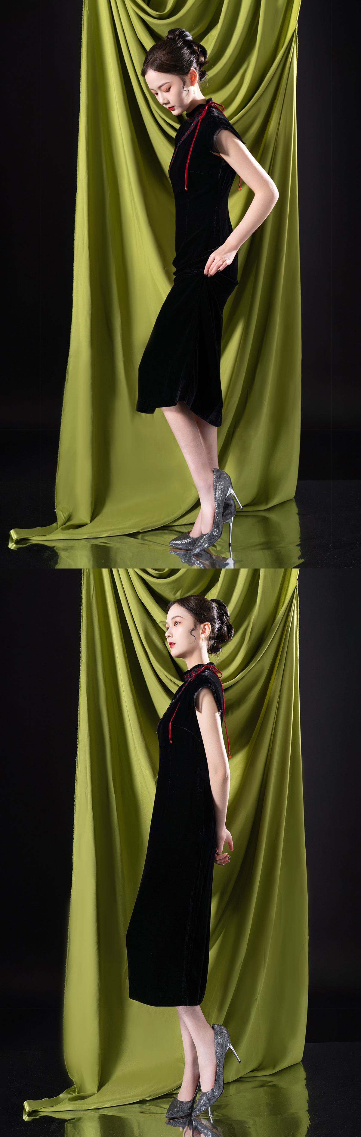 荷言HEHEN纯手工定制 夜未央 黑色百分真丝丝绒复古筒子领特色拼接袖细带改良旗袍裙
