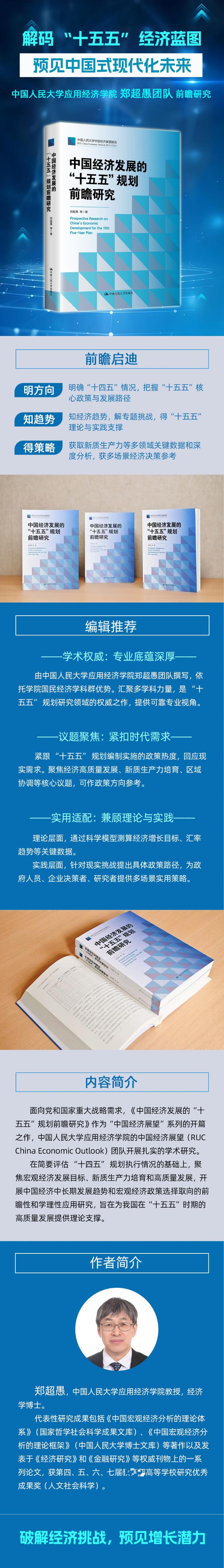 作为年度研究报告的开篇,以“十五五”规划的前瞻研究和人大方案为主题,在简要评估“十四五”规划执行情况的基础上,聚焦宏观经济发展、新质生产力培育、高质量发展三大领域,探索性地提出中国经济发展趋势和政策选择的中国人民大学“十五五”规划方案。