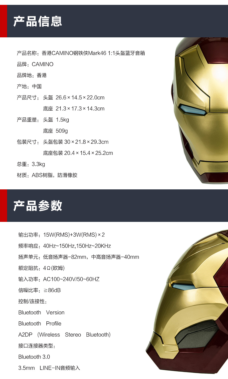 香港CAMINO 钢铁侠Mark46音响 1:1头盔蓝牙音箱 [福利品]