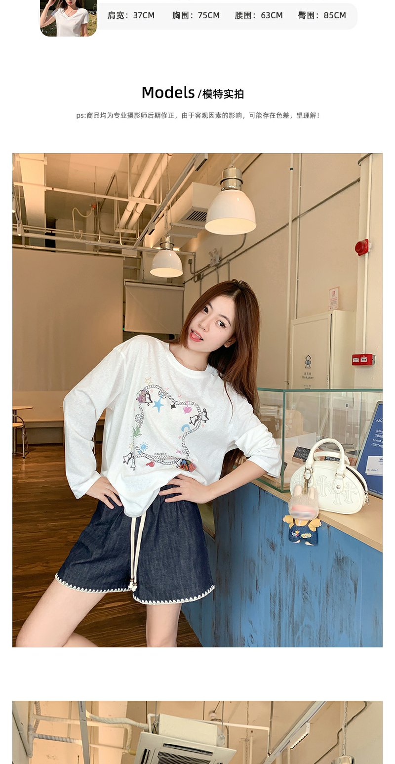 【169元任选2件】最后一波现货!!撞色贝壳绣串珠抽绳牛仔短裤