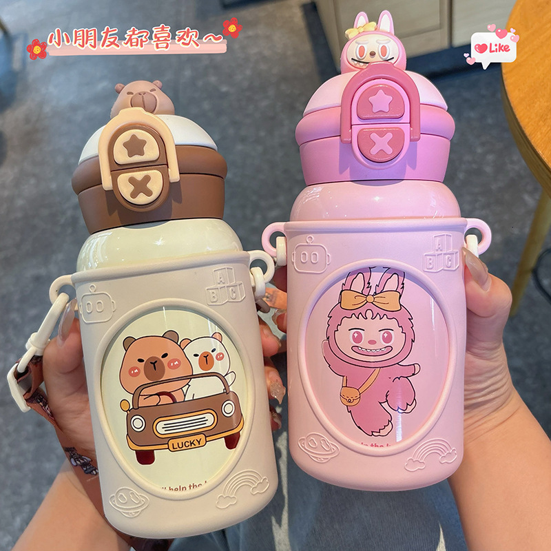 新款潮流【医用级316保温杯】 拉布布&卡皮巴拉公仔儿童壶 316不锈钢双饮保温杯 学生上学必备水杯