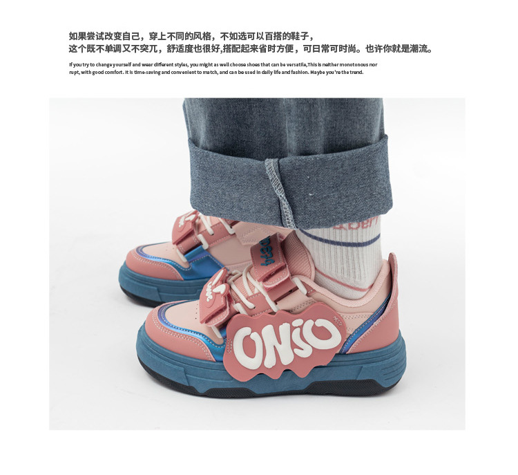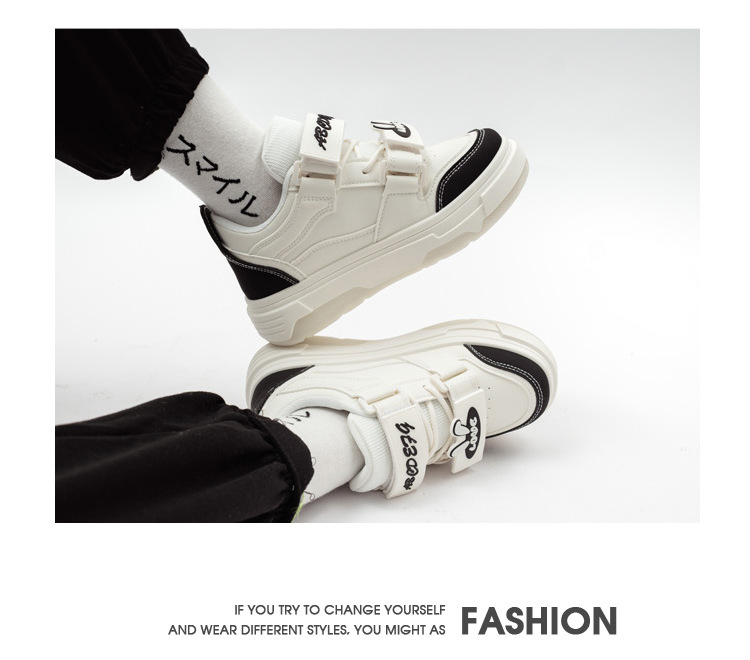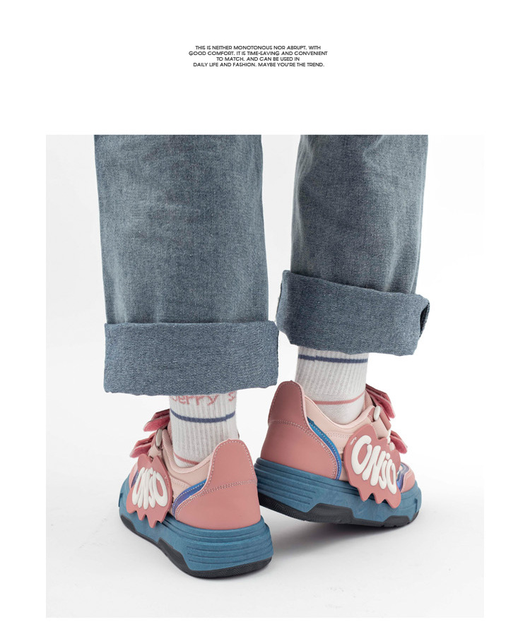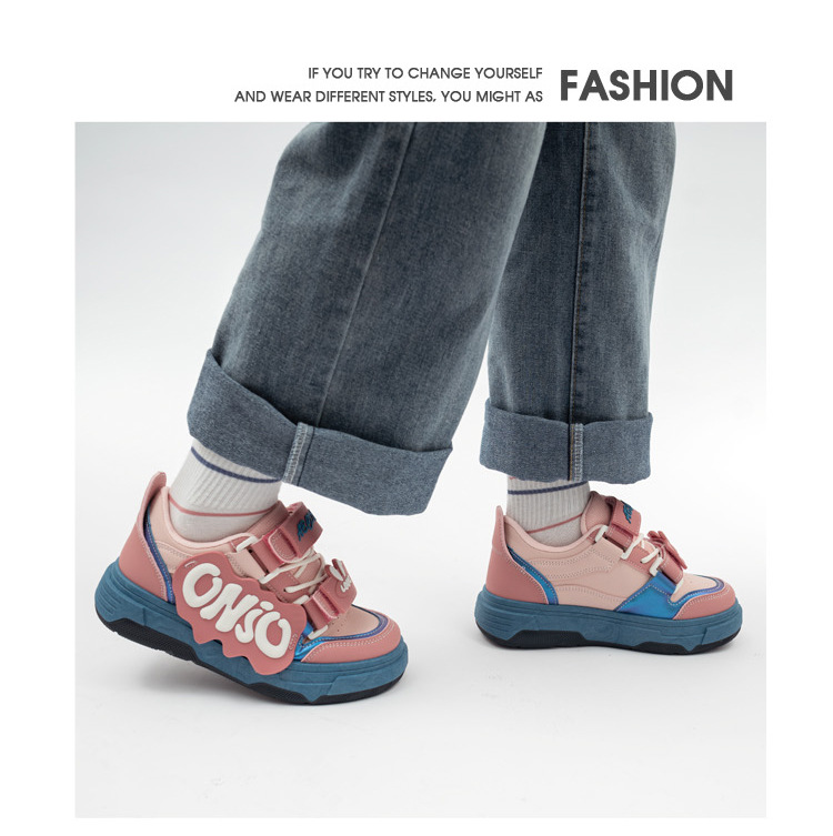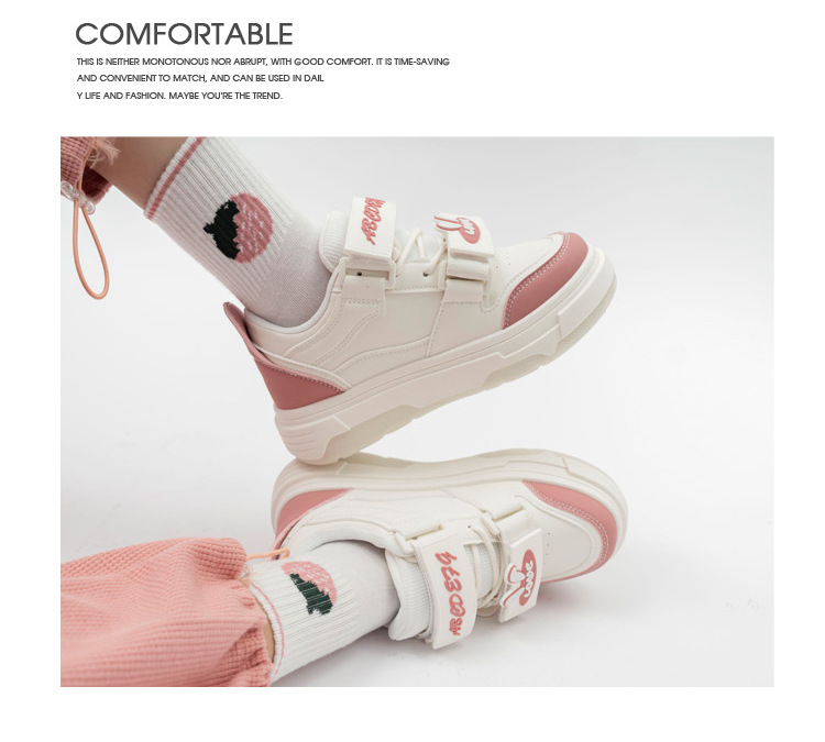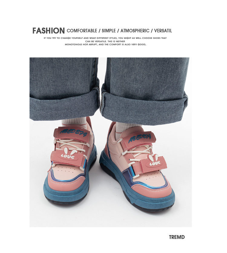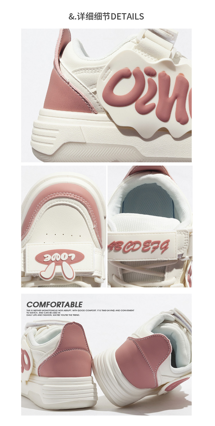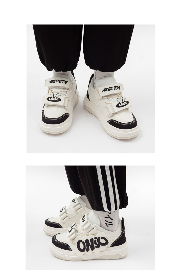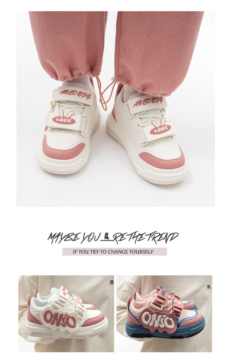 「三款配色!多巴胺港风」兔子魔术贴字母面包鞋软妹风学生ins潮运动板鞋女