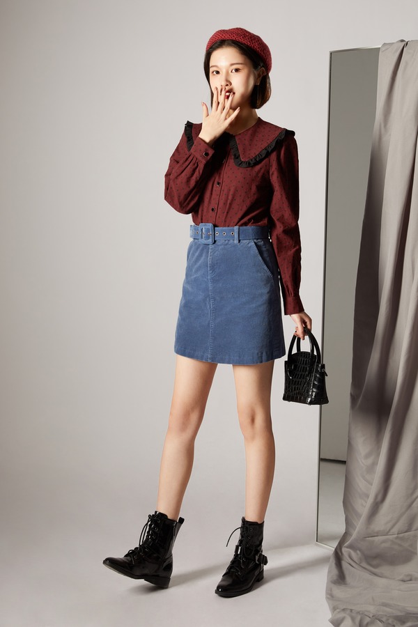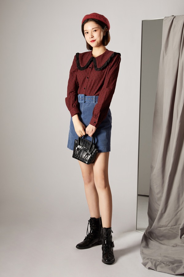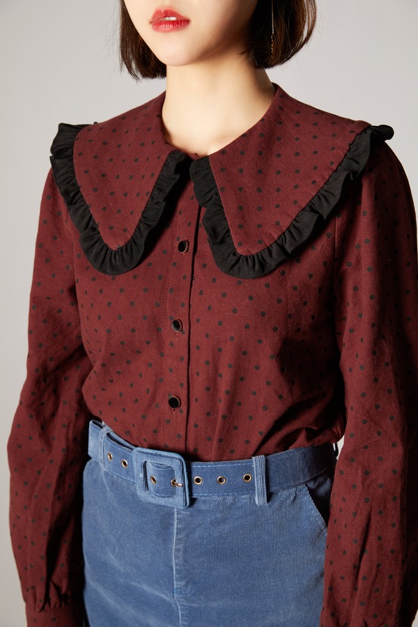AVA 红色荷叶边袖系带雪纺上衣 2352