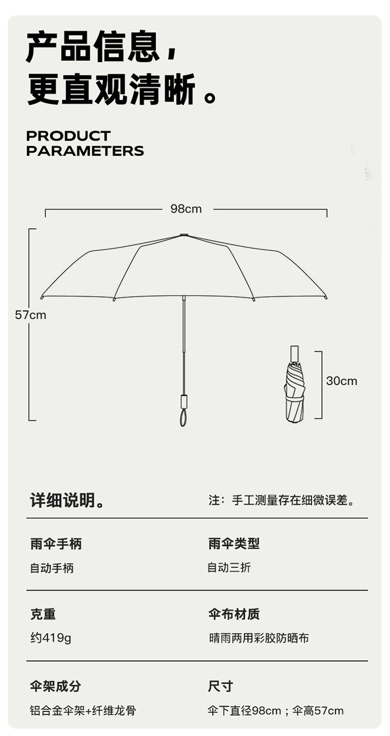 【莫兰迪雨伞】法式节节收防回弹自动伞 国风23寸女晴雨两用 国风高颜值