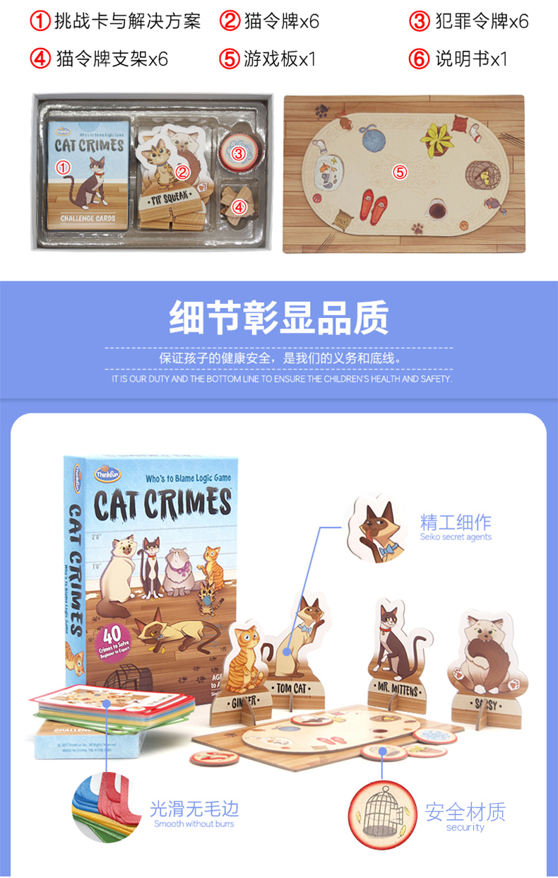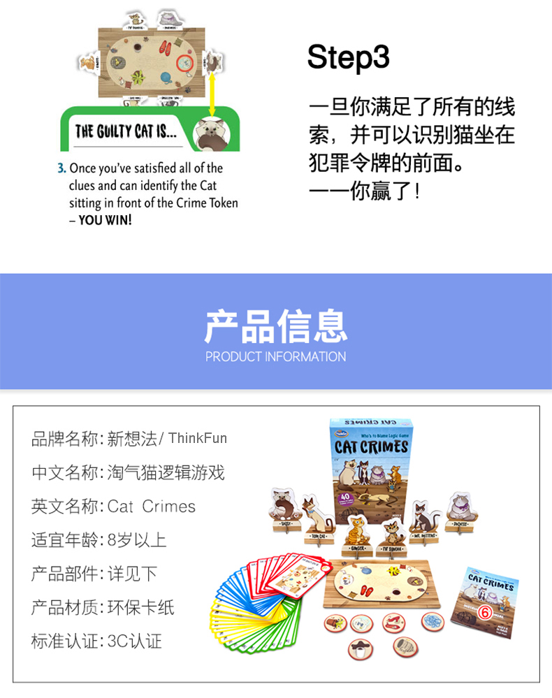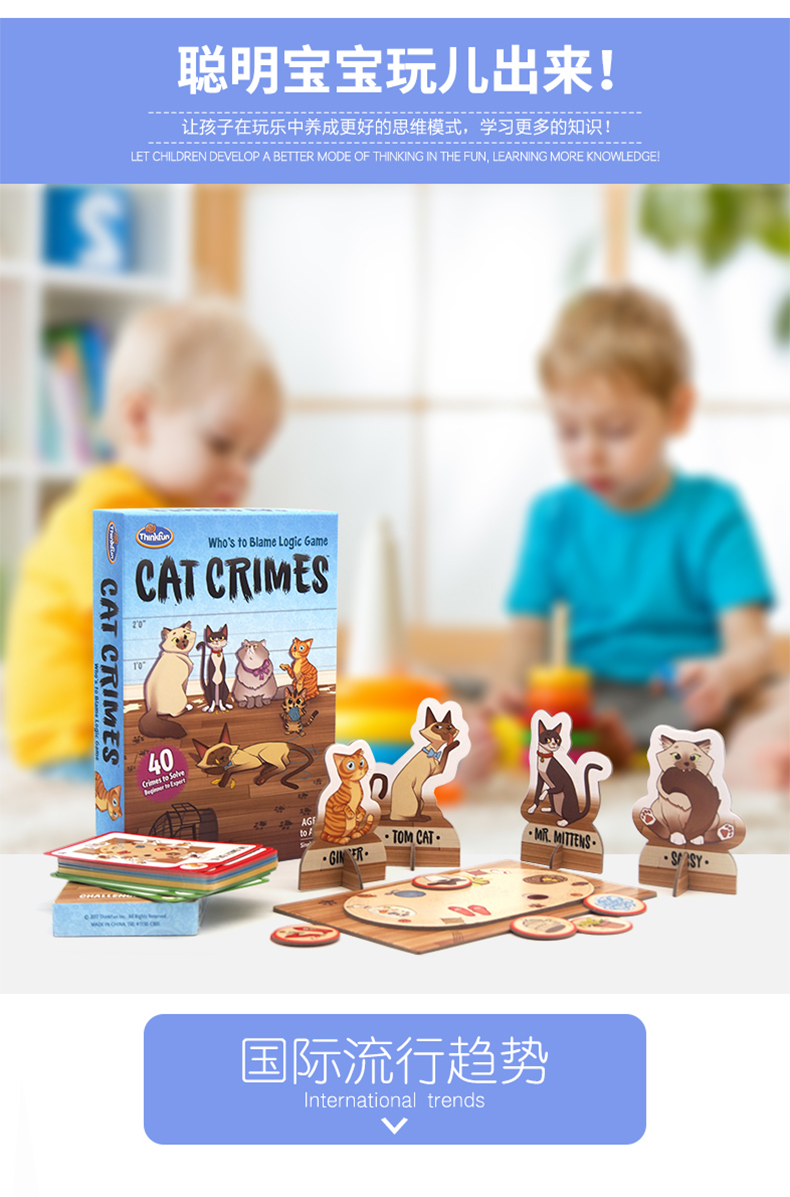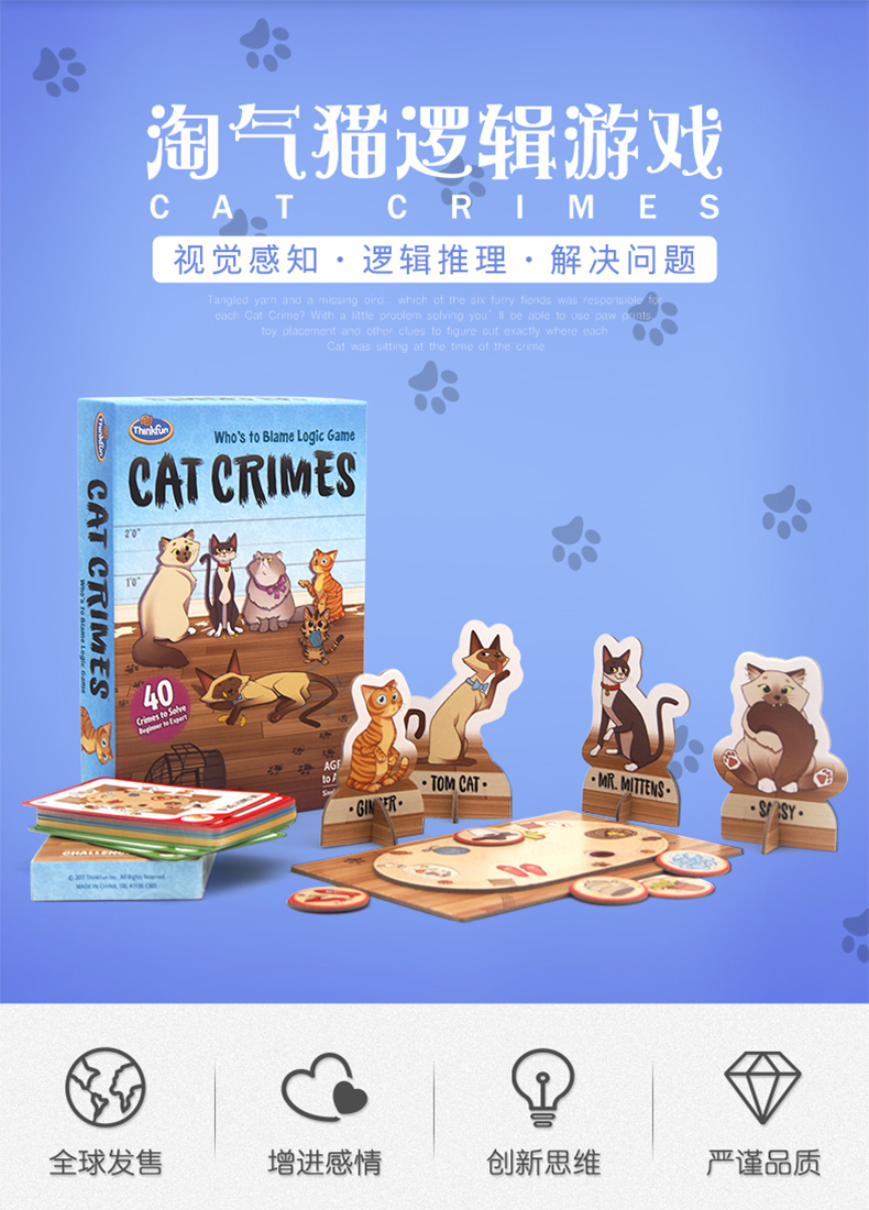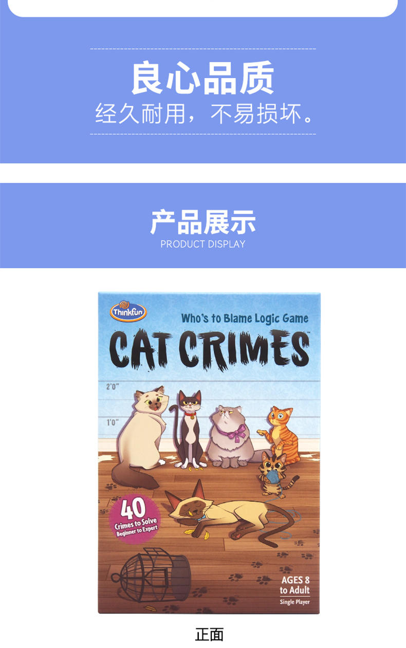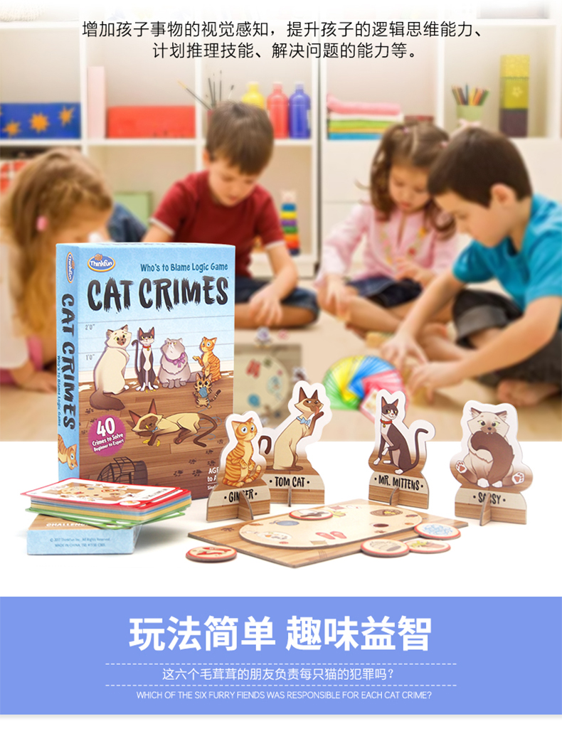 美国ThinkFun淘气猫男女孩单人探索棋8+锻炼逻辑推理能力桌面玩具