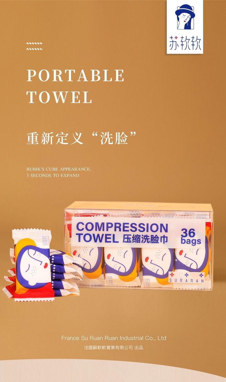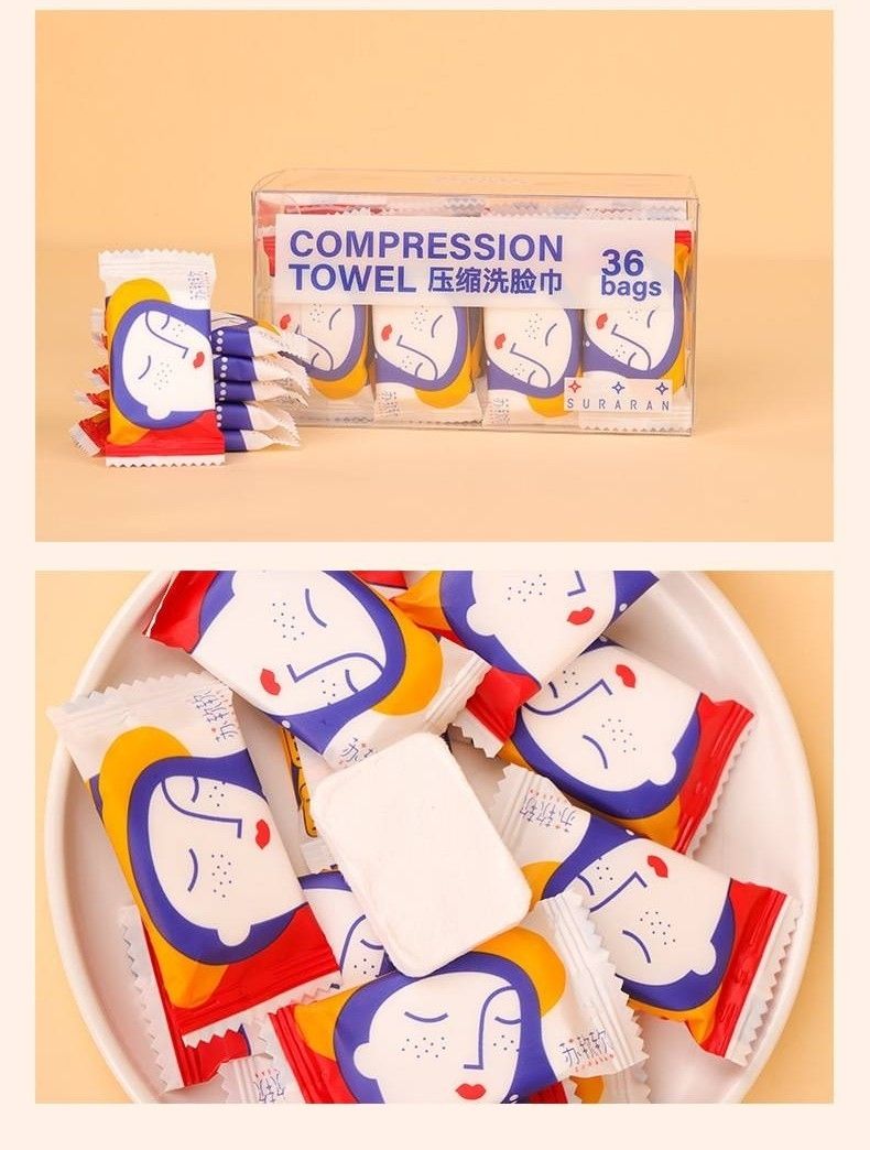 苏软软压缩毛巾 一次性不掉毛洗脸巾无菌纯棉加厚旅行必备擦脸巾 36粒/盒