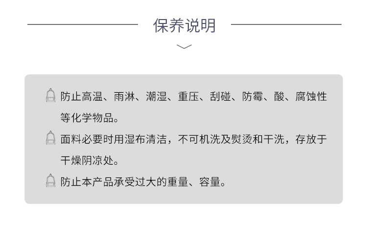 1. 采用加厚菱形织物面料,材质轻盈,包身轻巧。