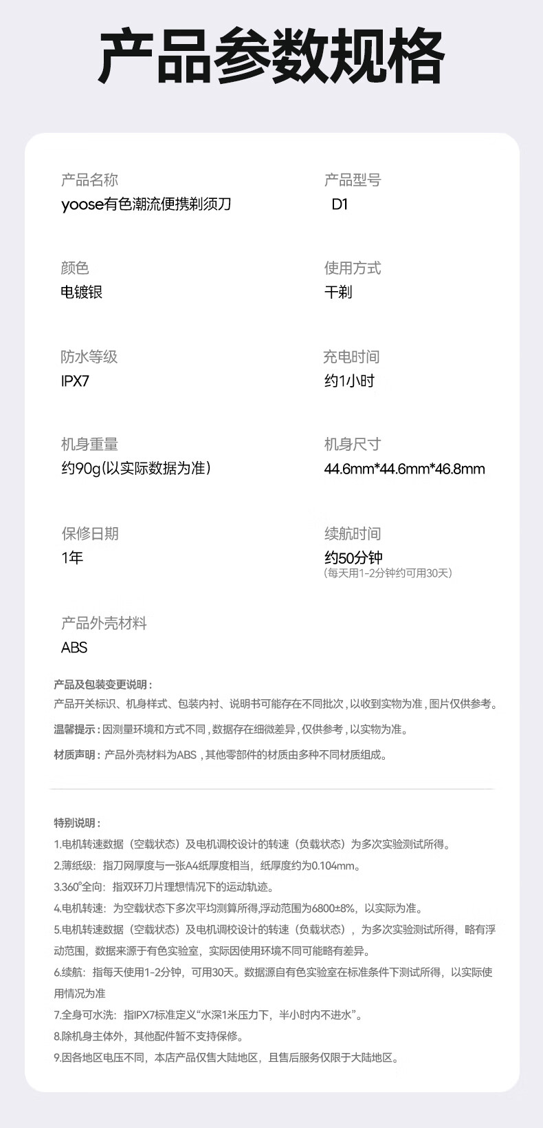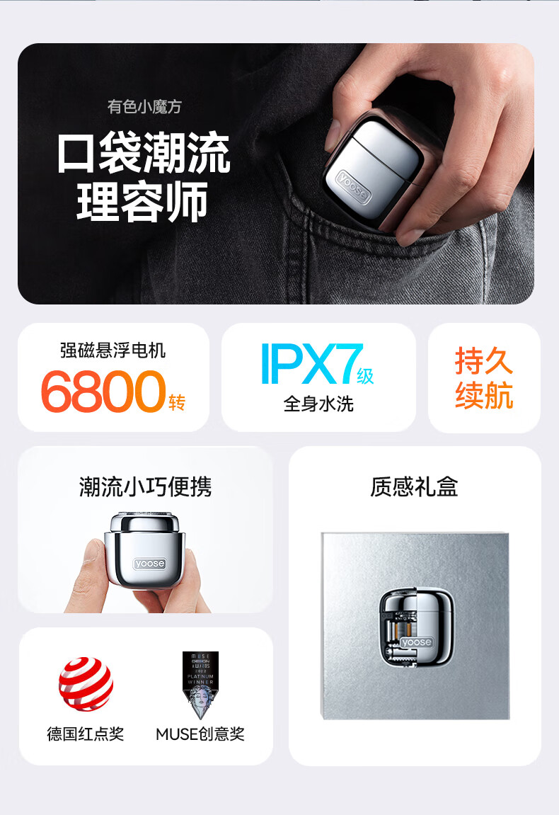 【自营】有色(yoose)电动剃须刀便携款刮胡刀 生日礼物送男友老公父亲节胡须刀 D1单机款便携剃须刀(电镀银)