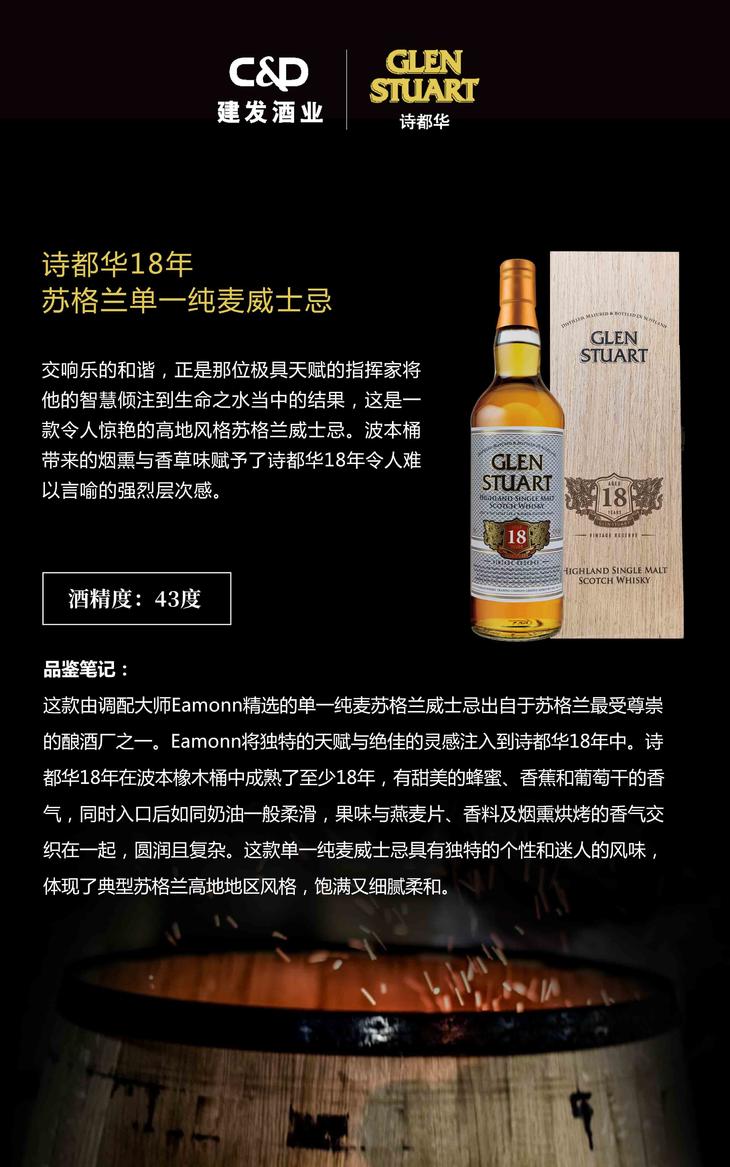 【臻选好酒】诗都华18年苏格兰单一纯麦威士忌木盒装700ml*6 一箱起发