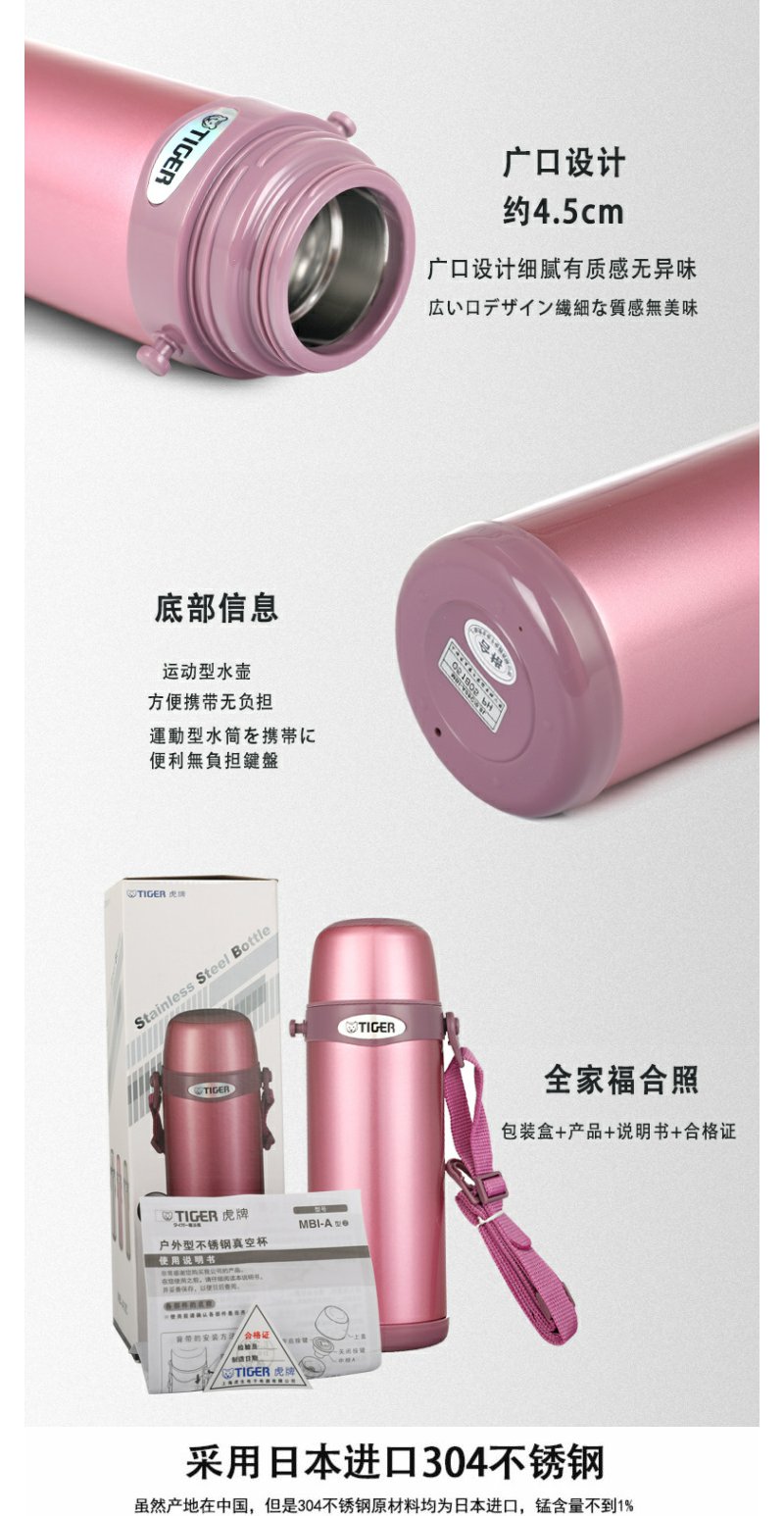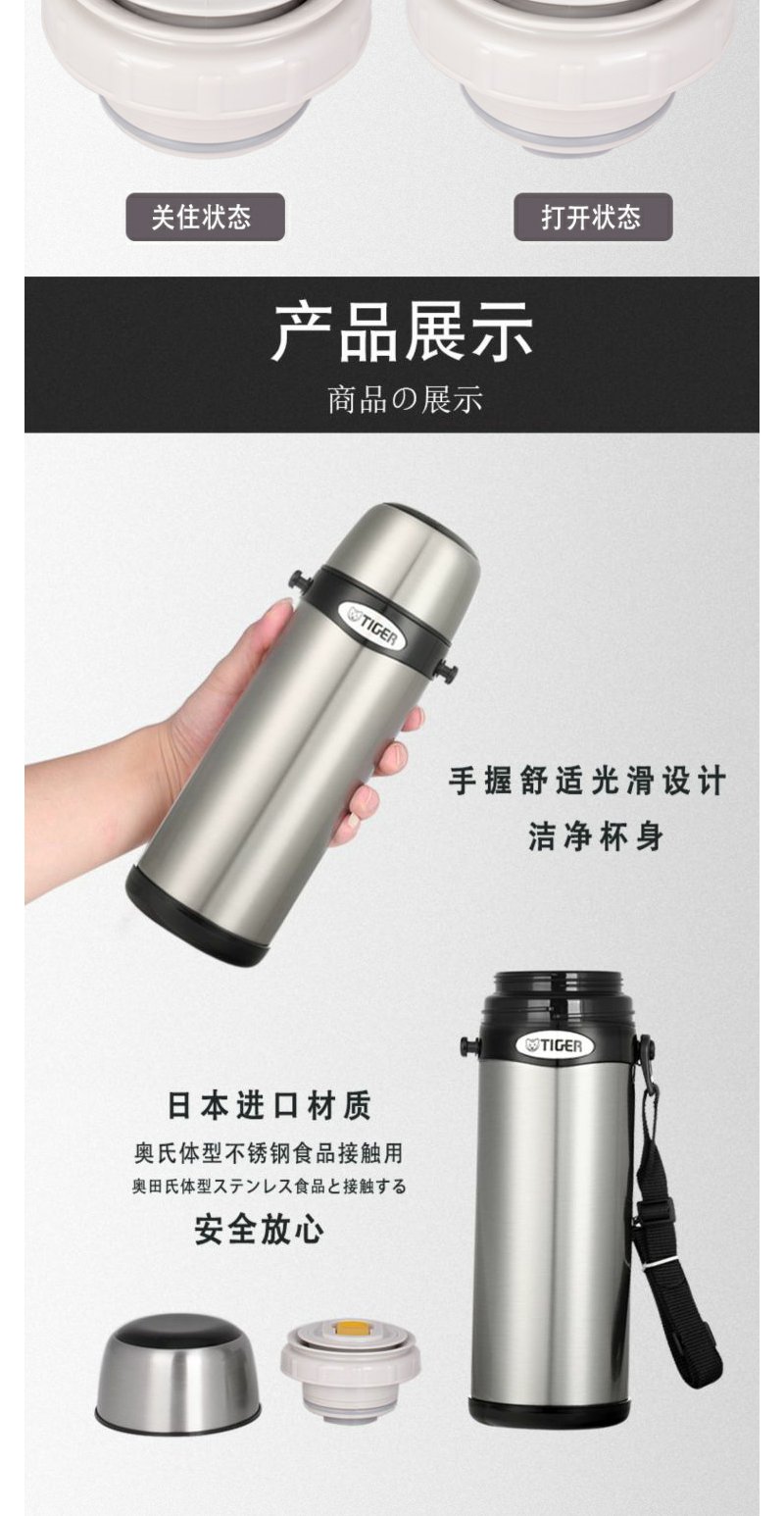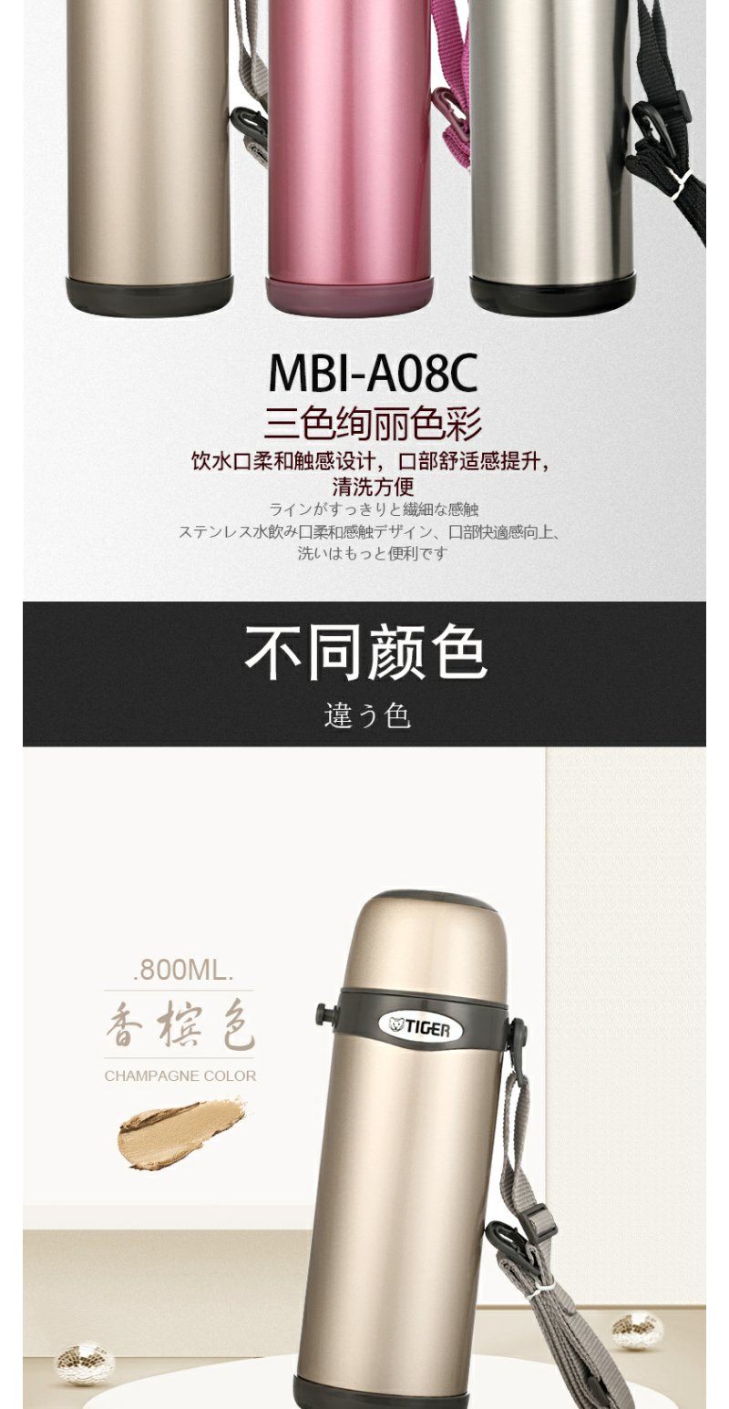 日本虎牌Tiger 保温杯车载大容量便携式真空旅行保冷杯MBI-A08C运动保温壶0.8L