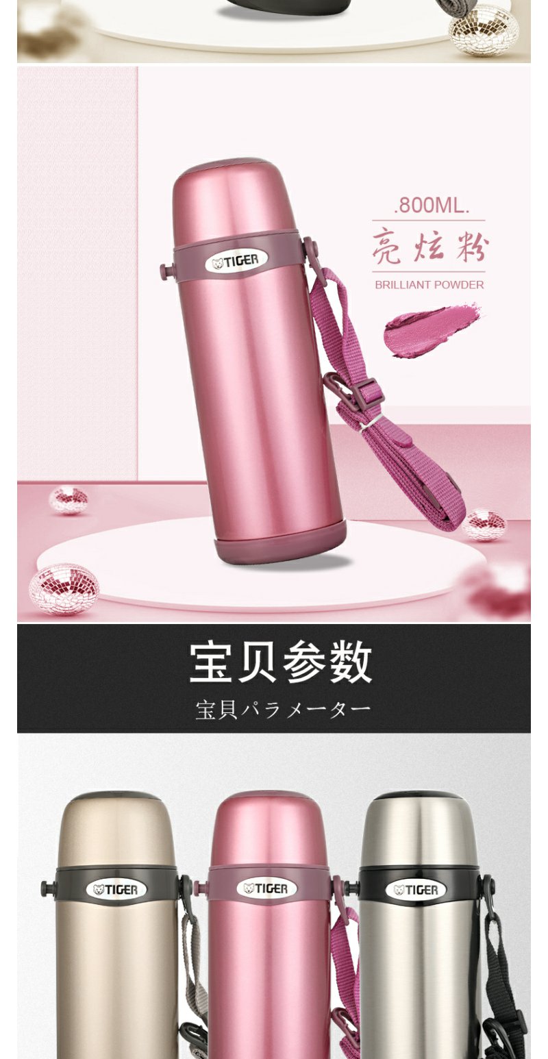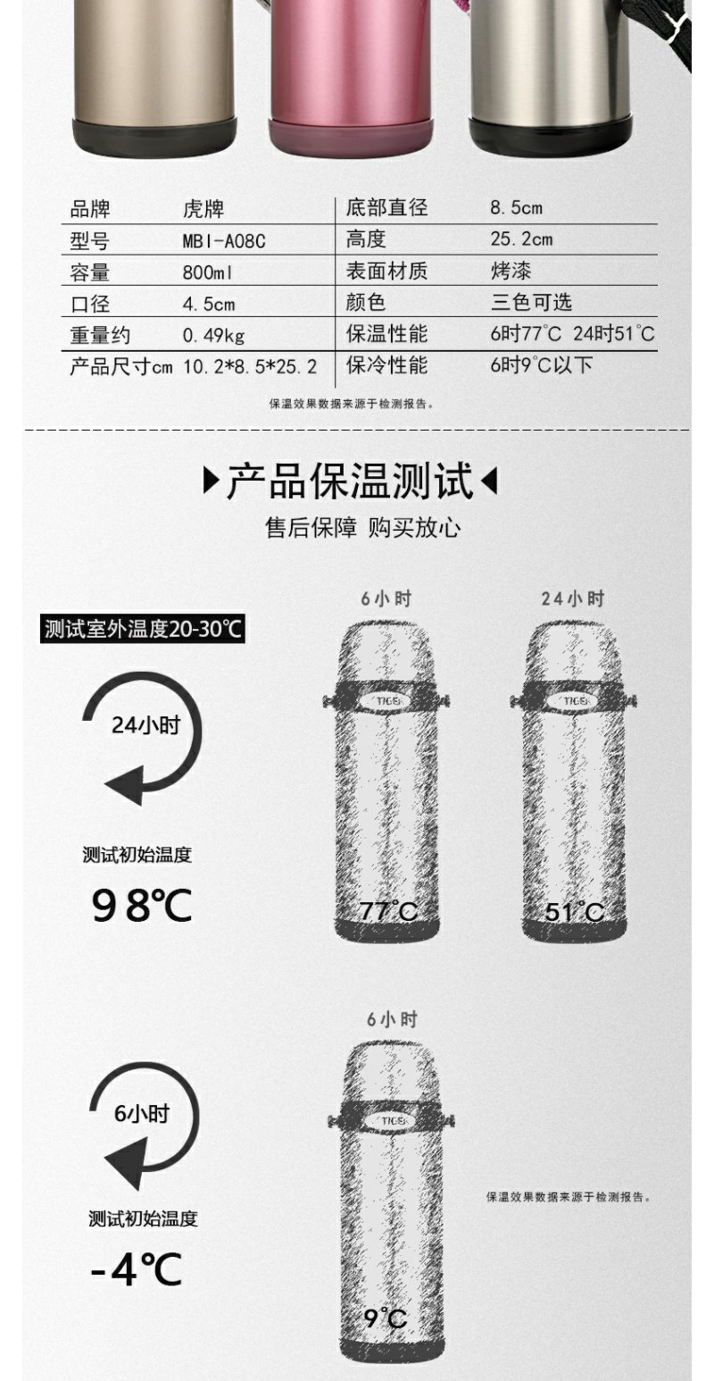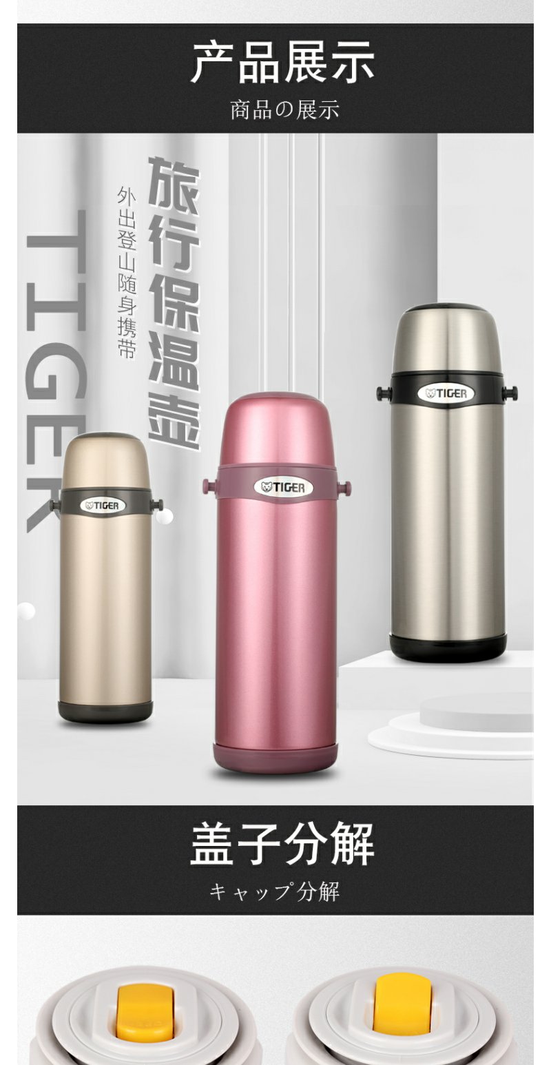 日本虎牌Tiger 保温杯车载大容量便携式真空旅行保冷杯MBI-A08C运动保温壶0.8L