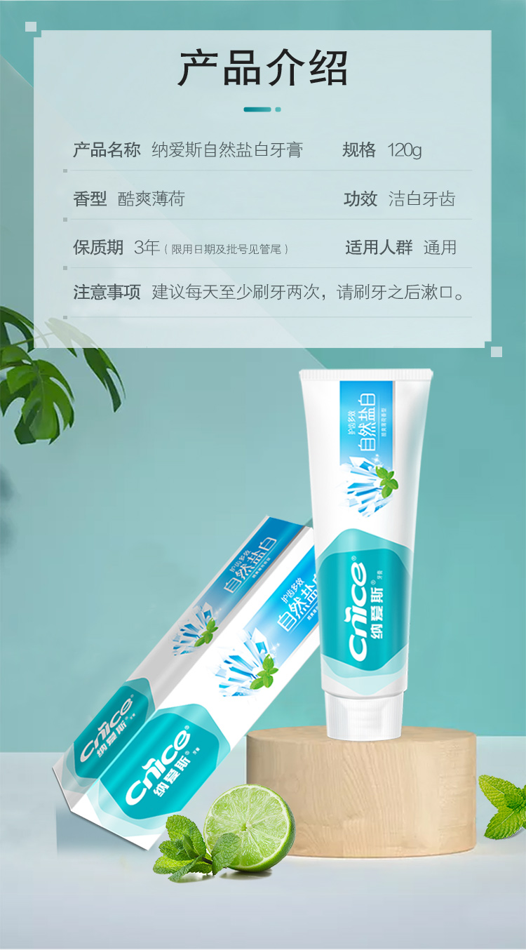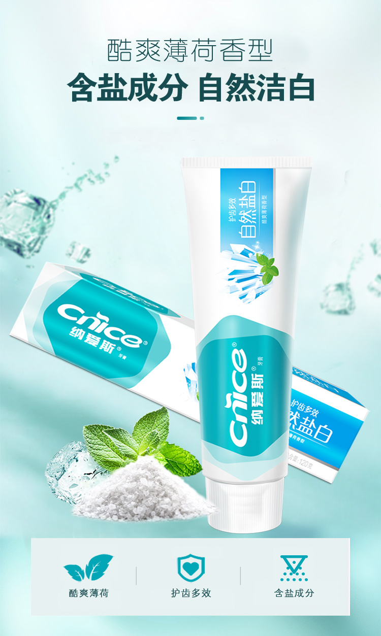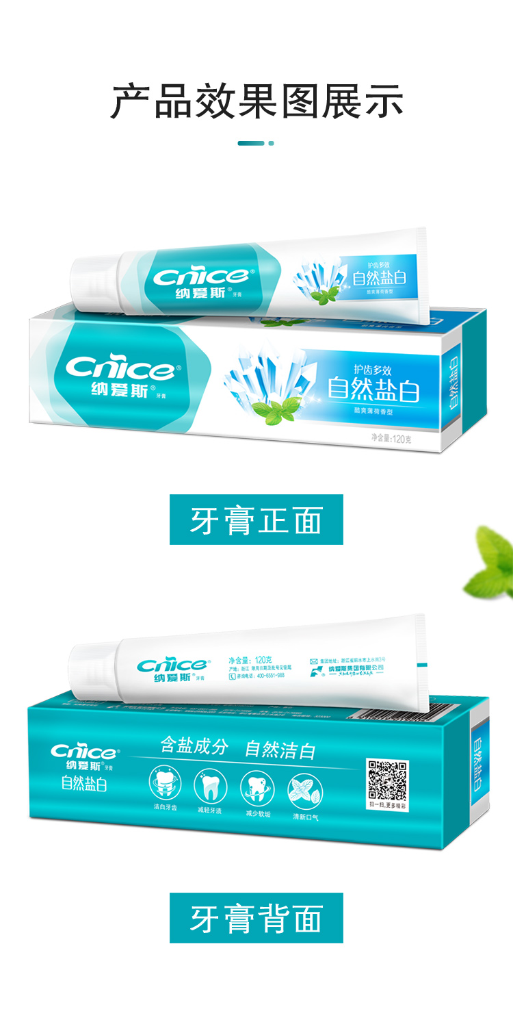 【自营】 纳爱斯 成人护牙龈美白牙膏 自然盐白/清新鲜果/清凉冰菊 120g/支 多规格