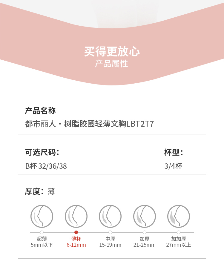 都市丽人舒适打底无痕内衣女泳布文胸BC杯适穿1/2杯B中厚C薄款软钢圈三排扣LB42A1