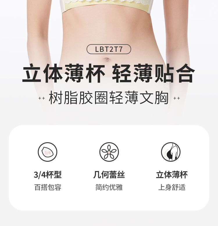 都市丽人内衣自然舒适常规文胸蕾丝薄文胸3/4杯三排扣无钢圈LBT2T7