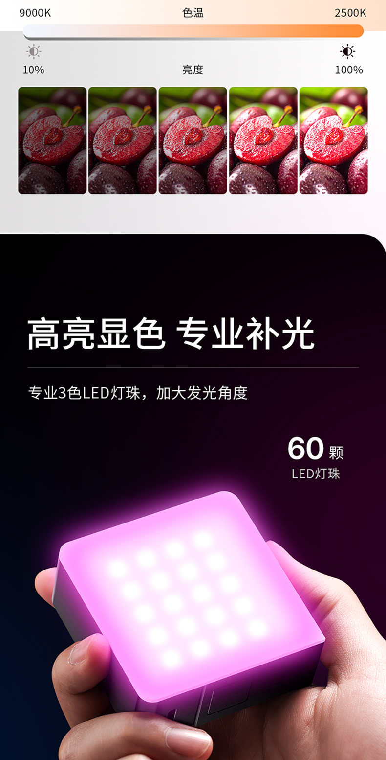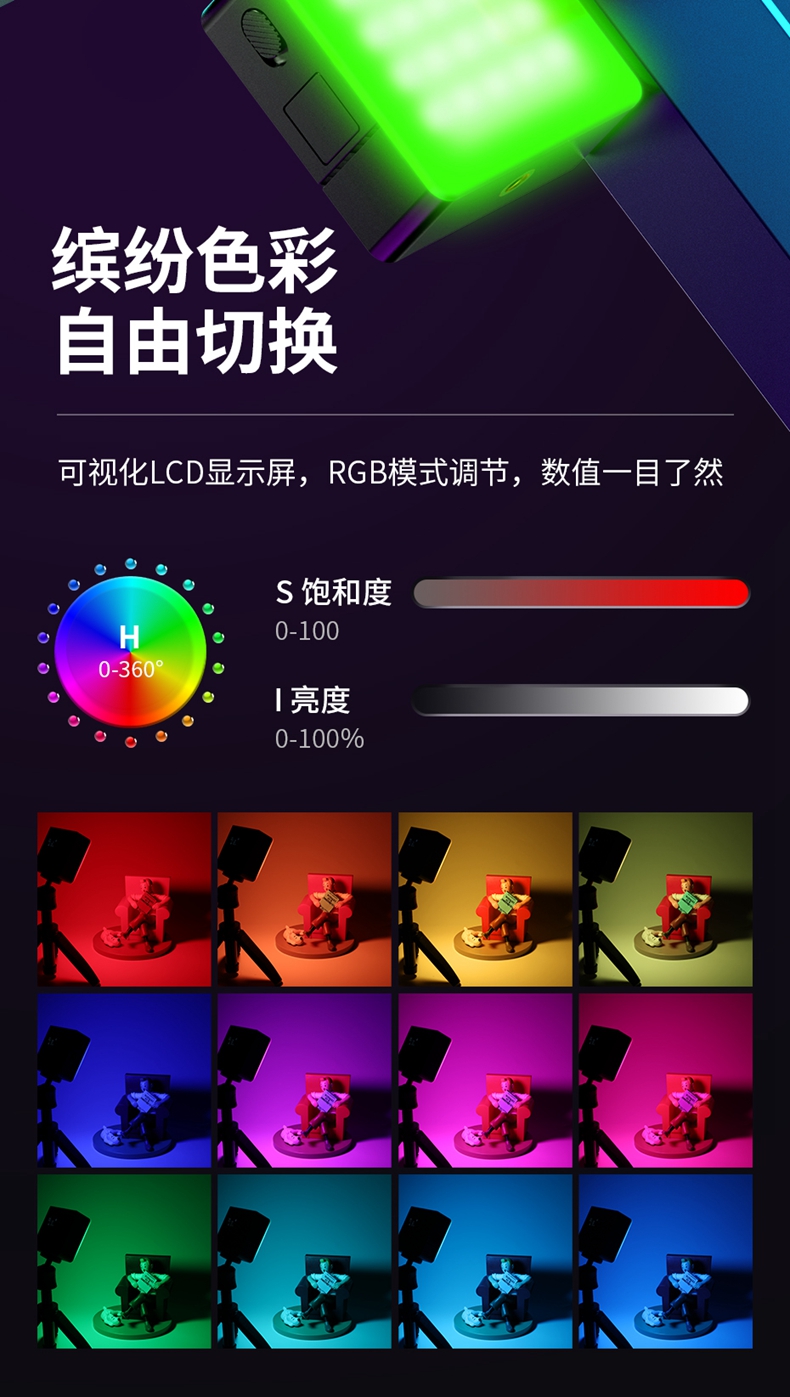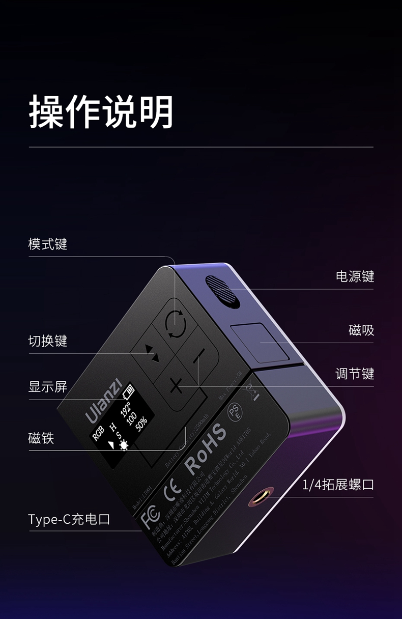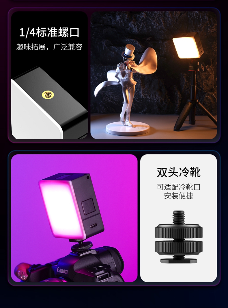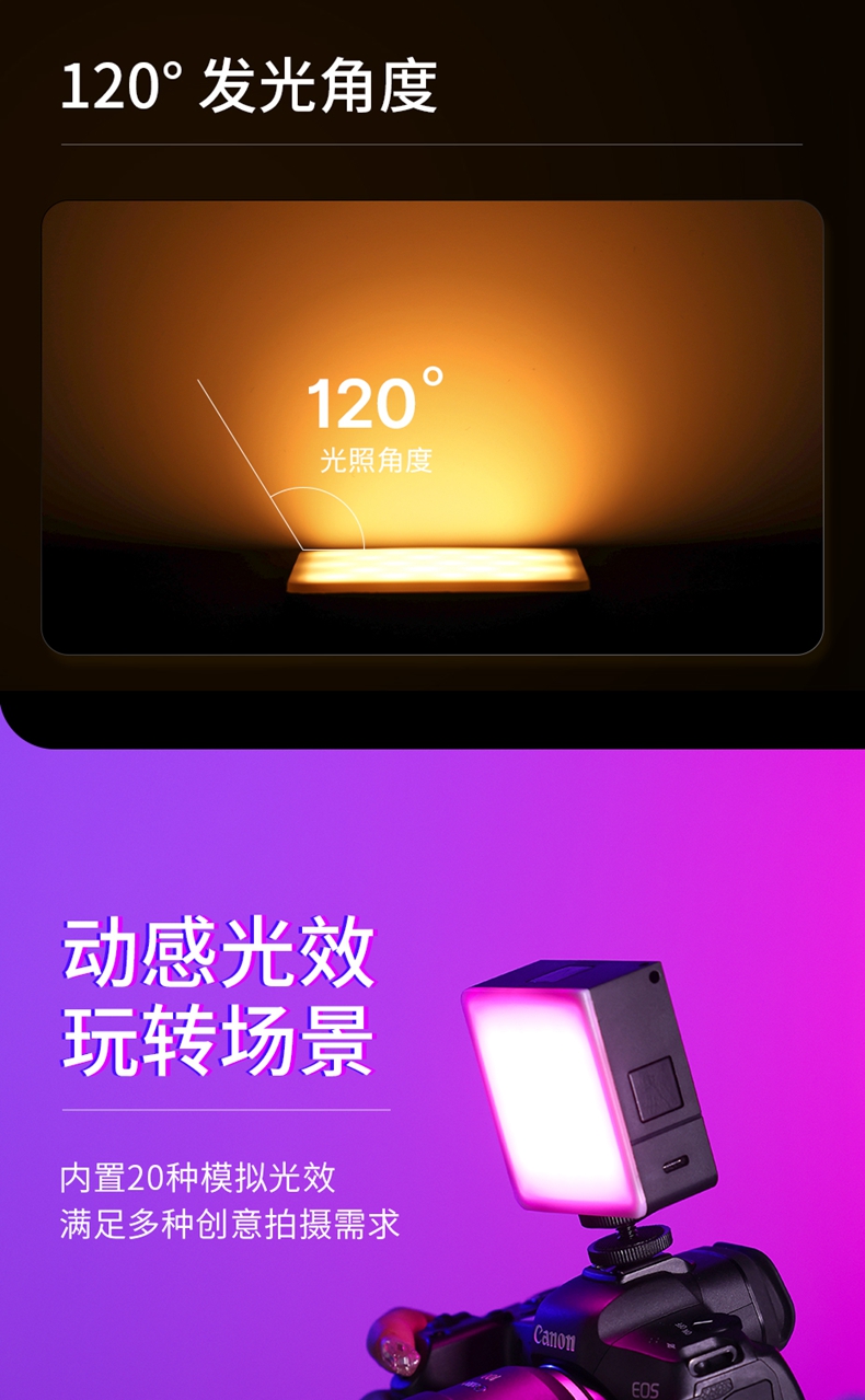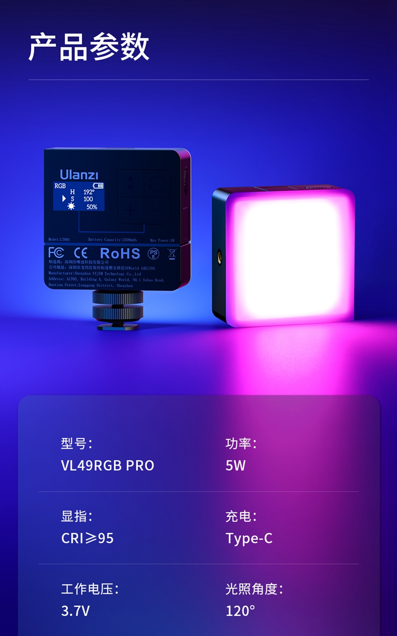 Ulanzi优篮子VL49RGB PRO补光灯迷你口袋方块小灯磁吸直播拍照打光便携式充电led灯桌面手持自拍相机摄影灯