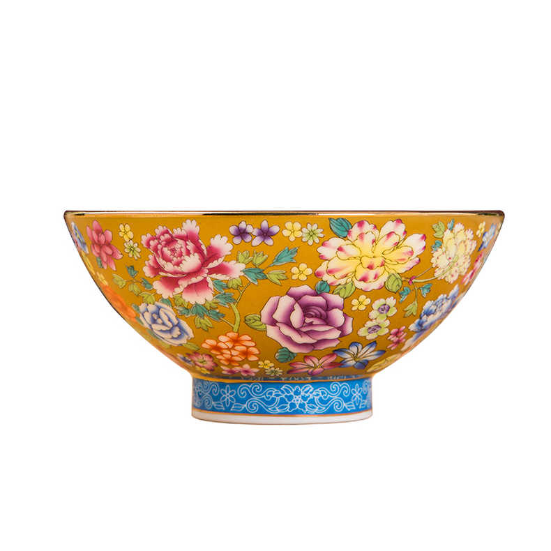 戴德生活馆金边珐琅彩斗笠碗家用单个高白万花中式创意宫廷风景德镇陶瓷餐具