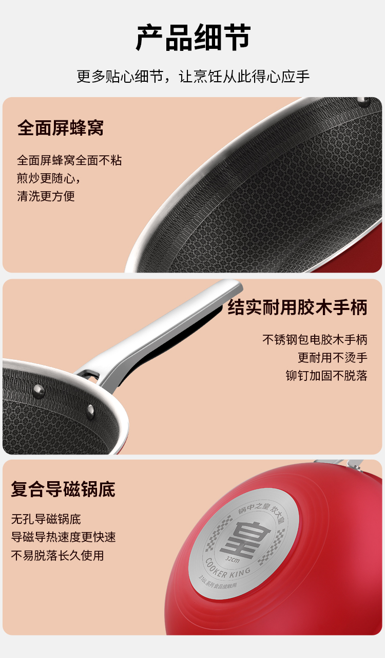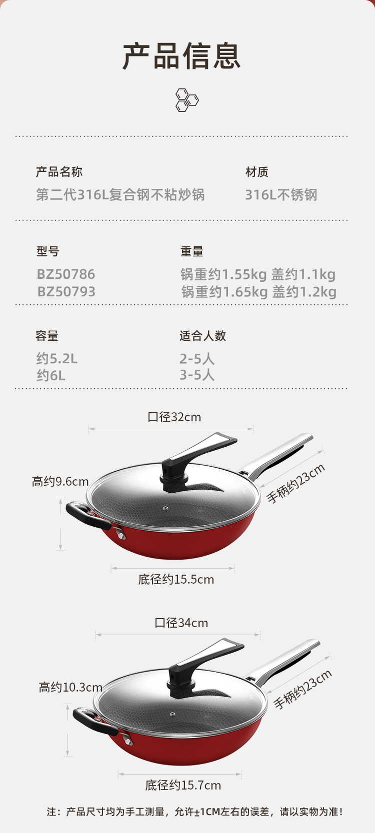 炊大皇 第二代316L复合钢不粘炒锅32cm BZ50786