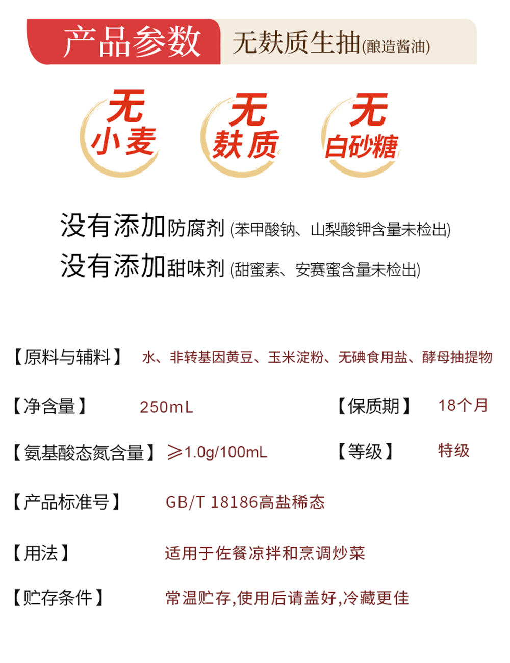 【酱门宗师】无麸质生抽 250ml/瓶