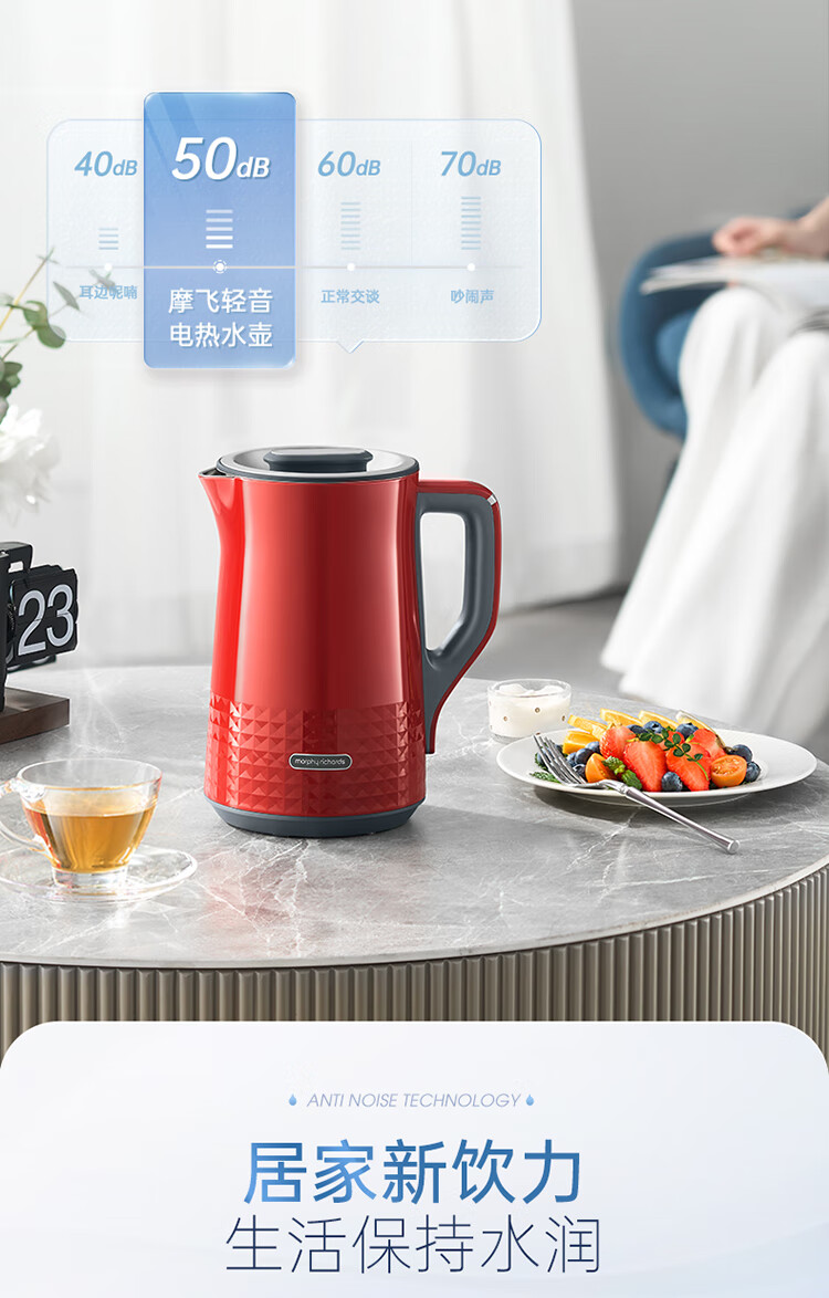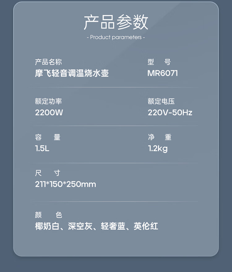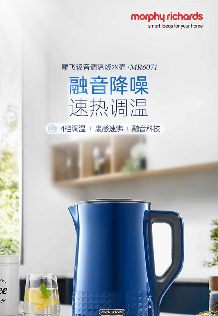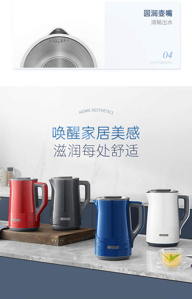 Morphy Richards摩飞电热水壶 MR6071 蓝色/红色/灰色/白色 1.5L