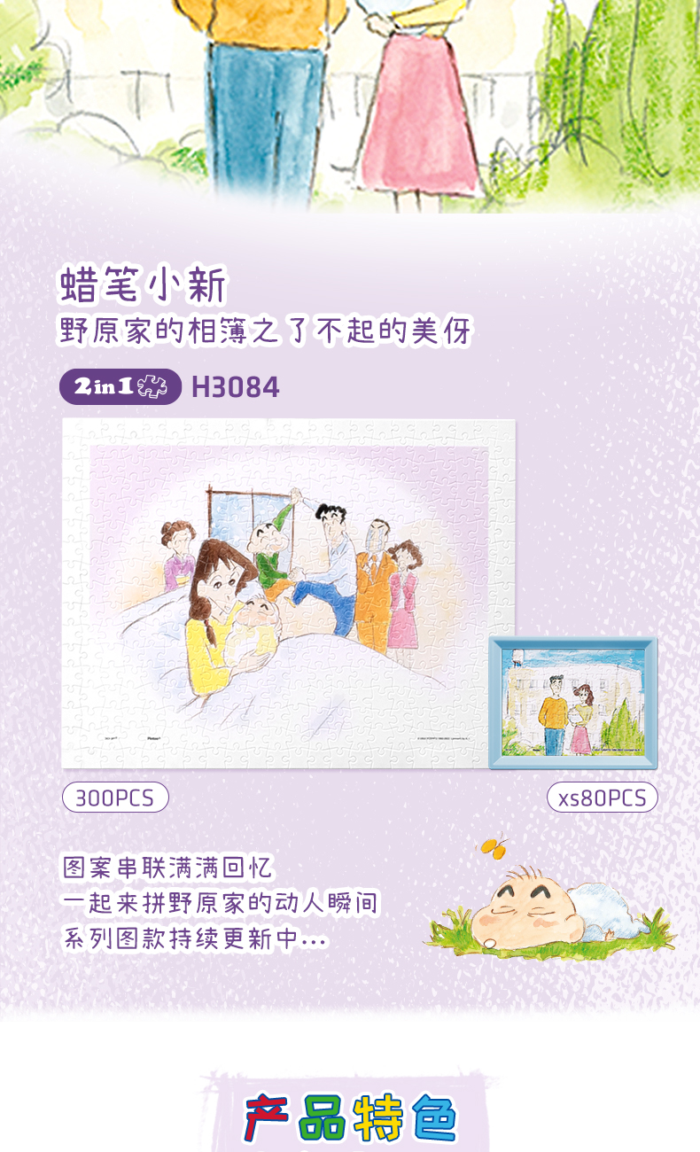 300片 平面塑料拼图 H3084 蜡笔小新-野原家的相簿之了不起的美伢(内附80片拼图)