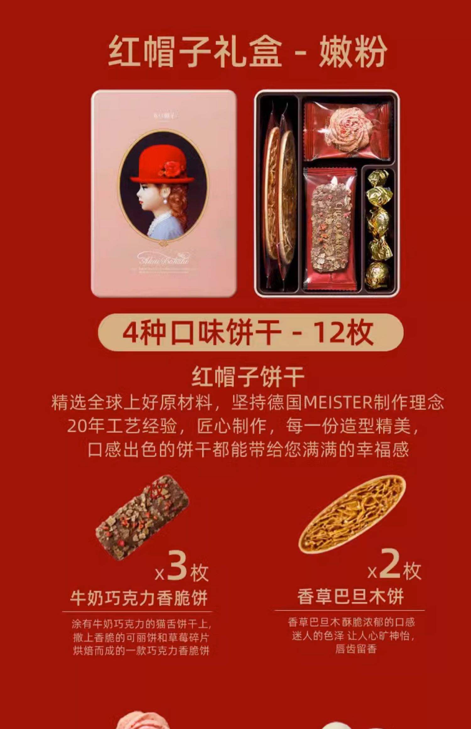 【礼想心动】红帽子巧克力什锦饼干嫩粉色礼盒67.1g/盒