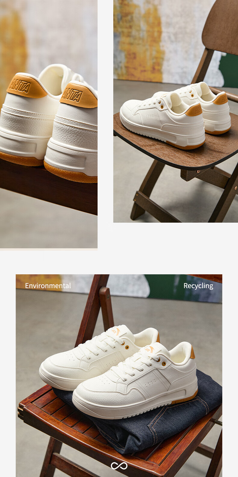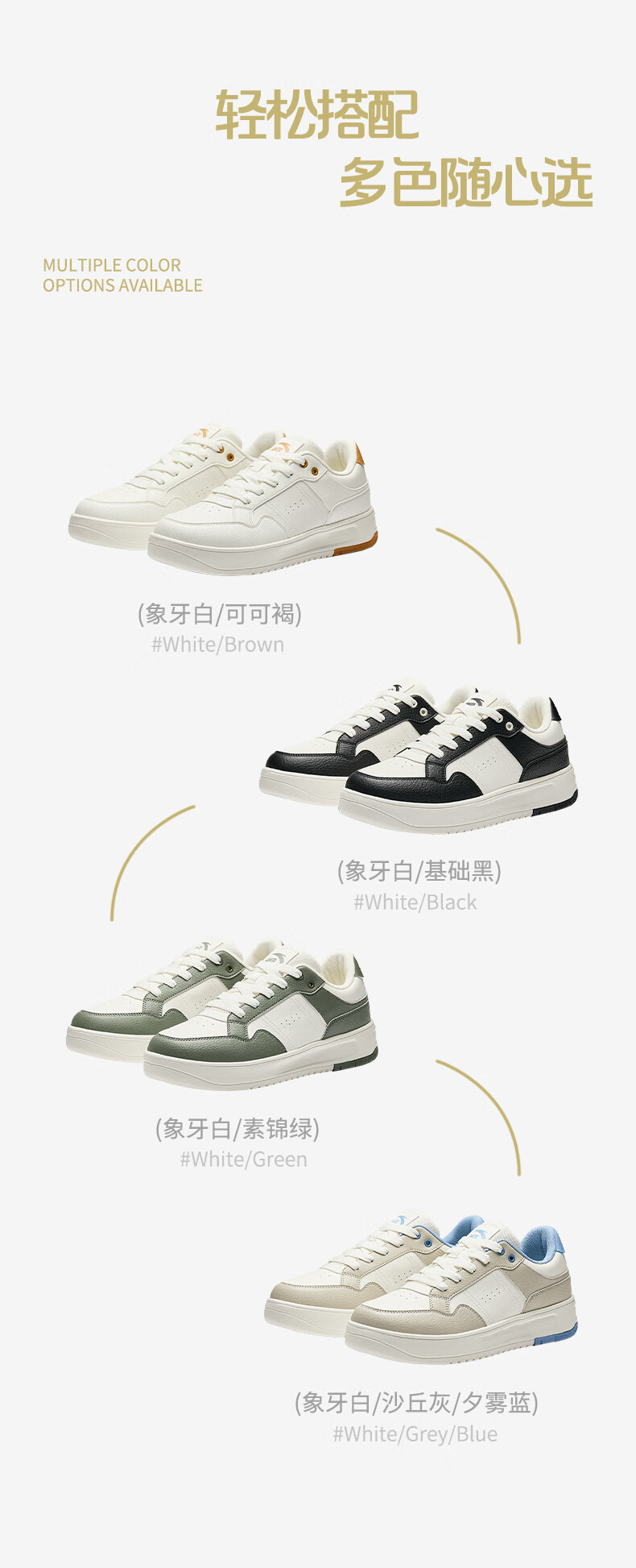 安踏破竹丨经典低帮撞色潮流板鞋男款简约小白鞋休闲鞋112518012