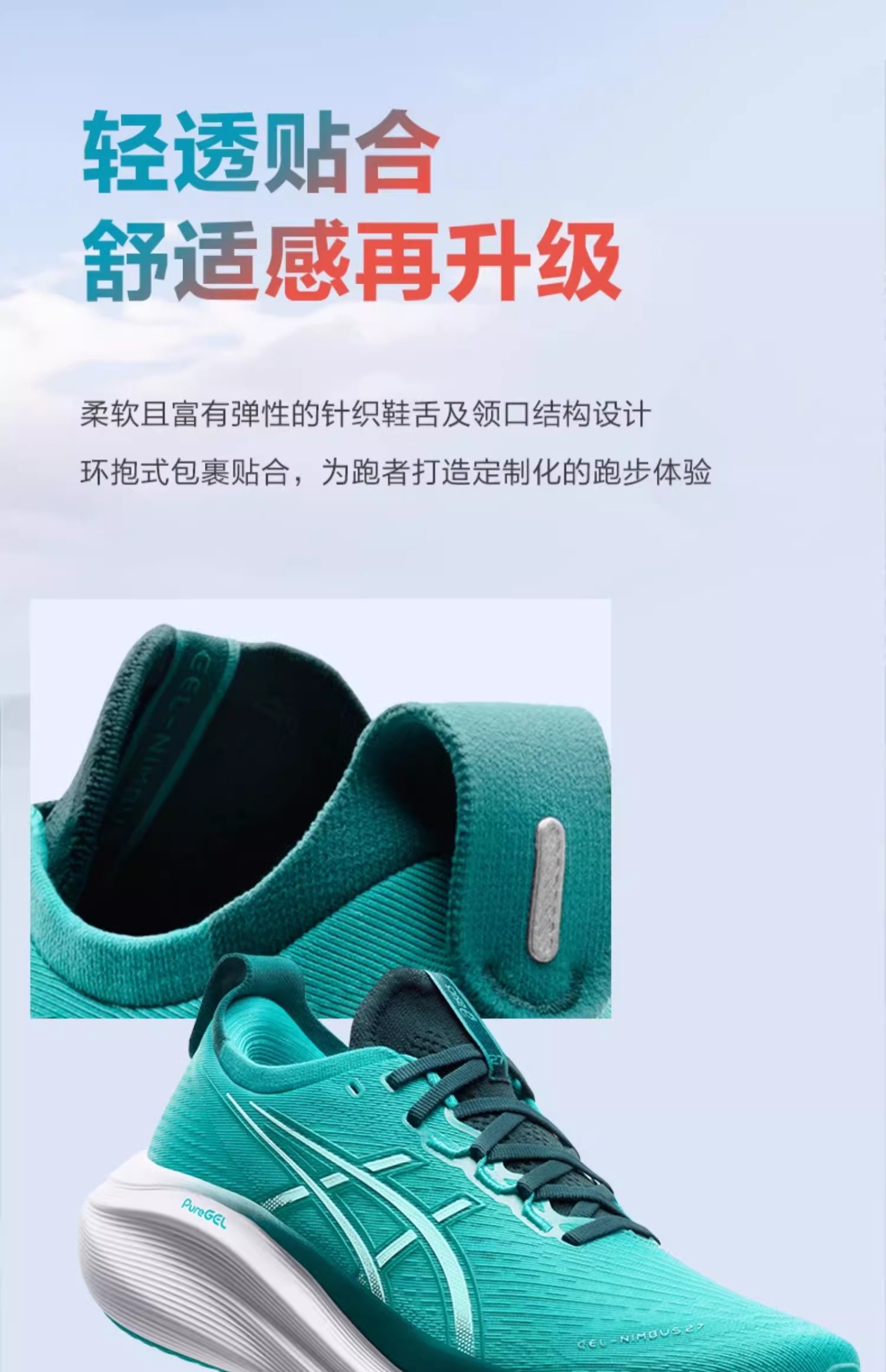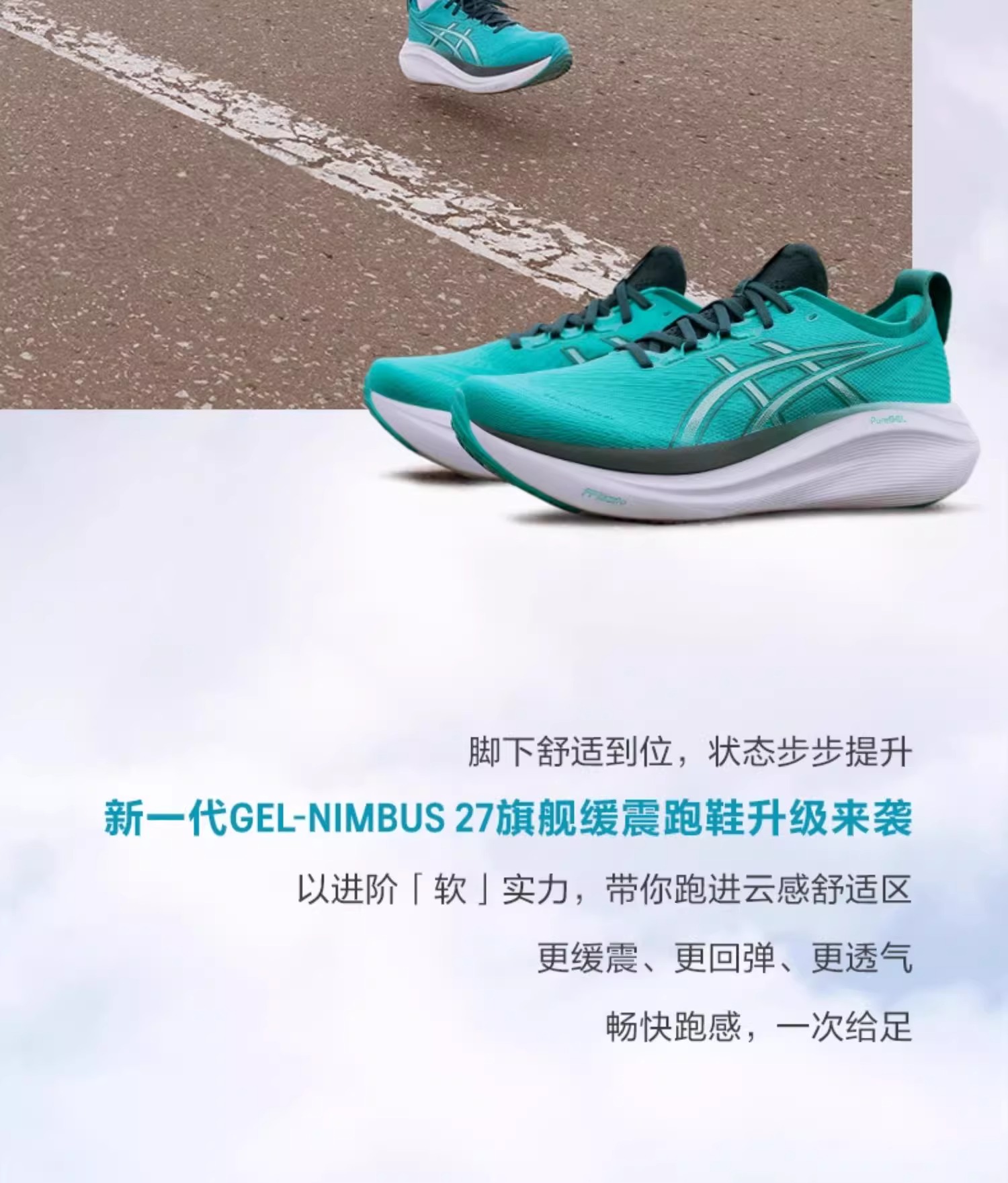 ASICS亚瑟士 NIMBUS 27 男款旗舰缓震透气舒适运动跑步鞋