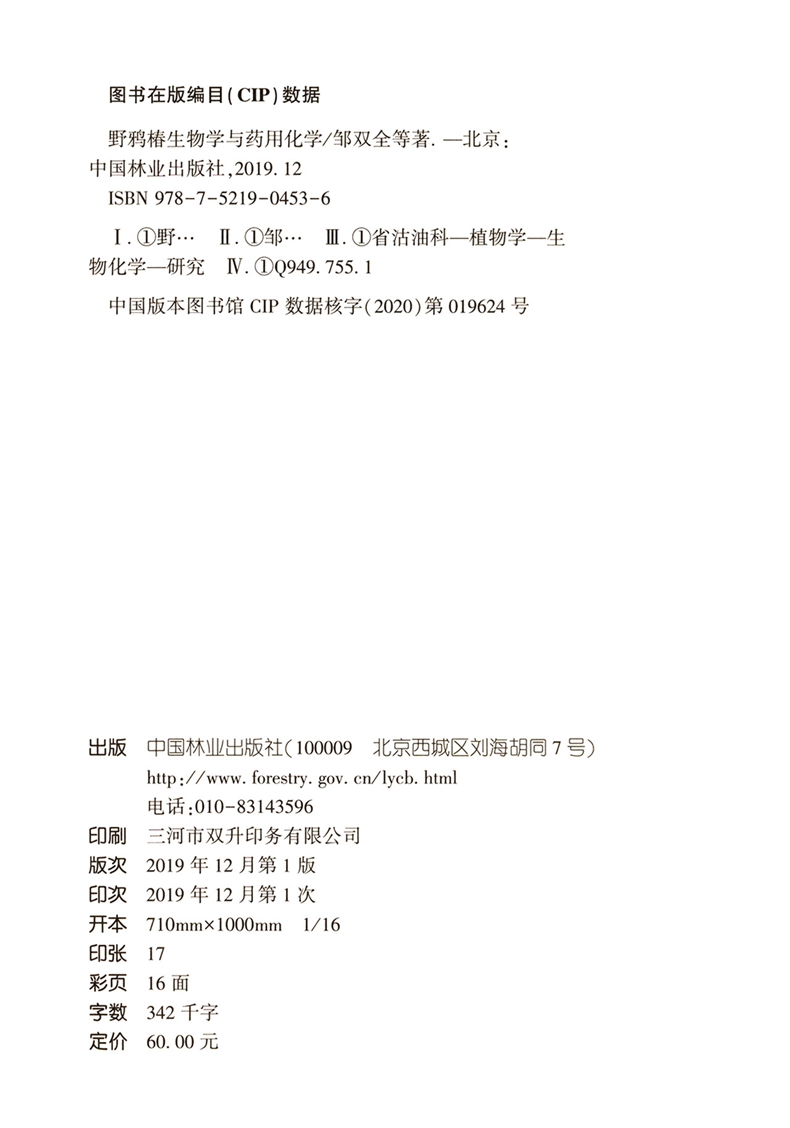 野鸦椿生物学与药用化学 0453 中国林业出版社