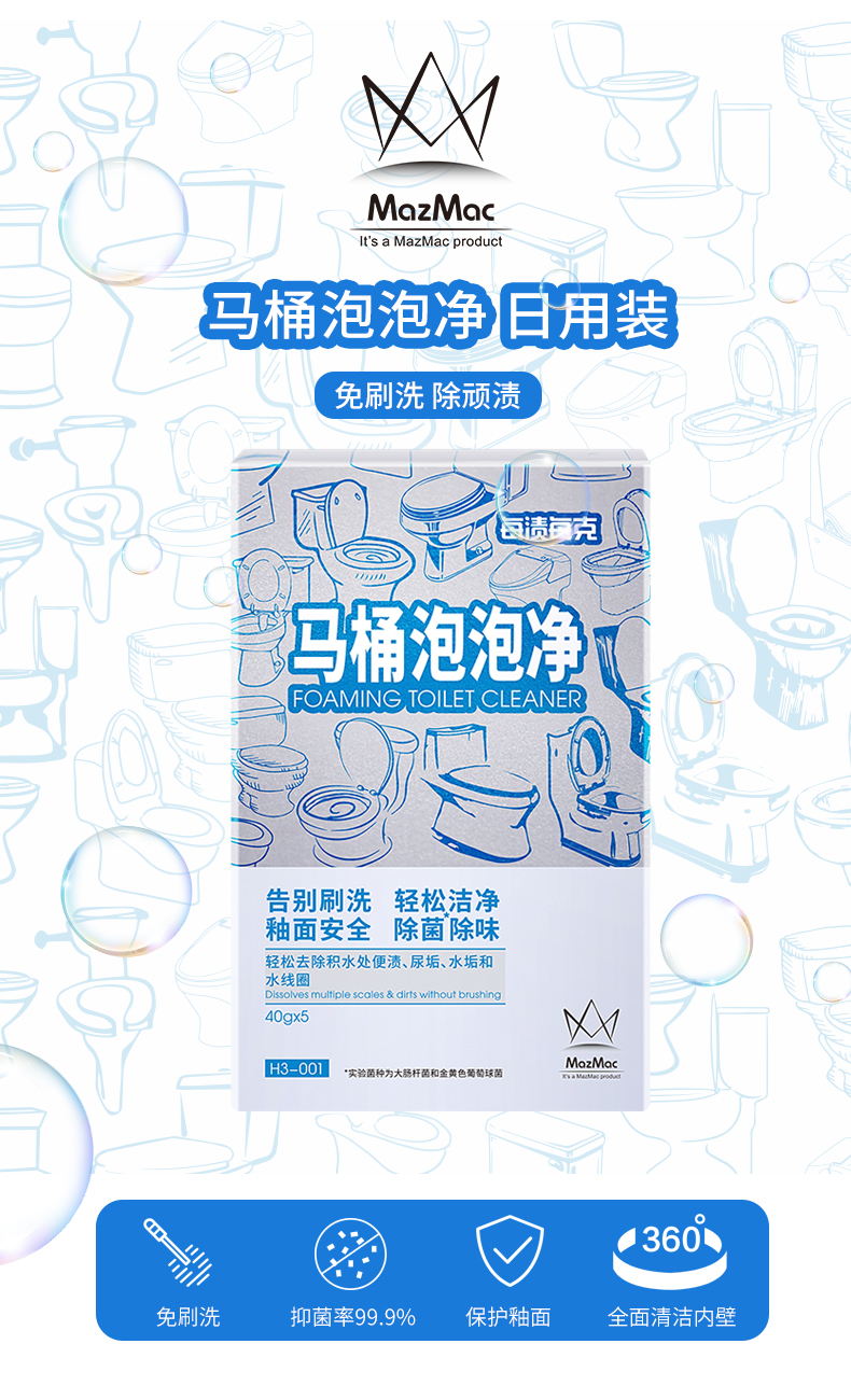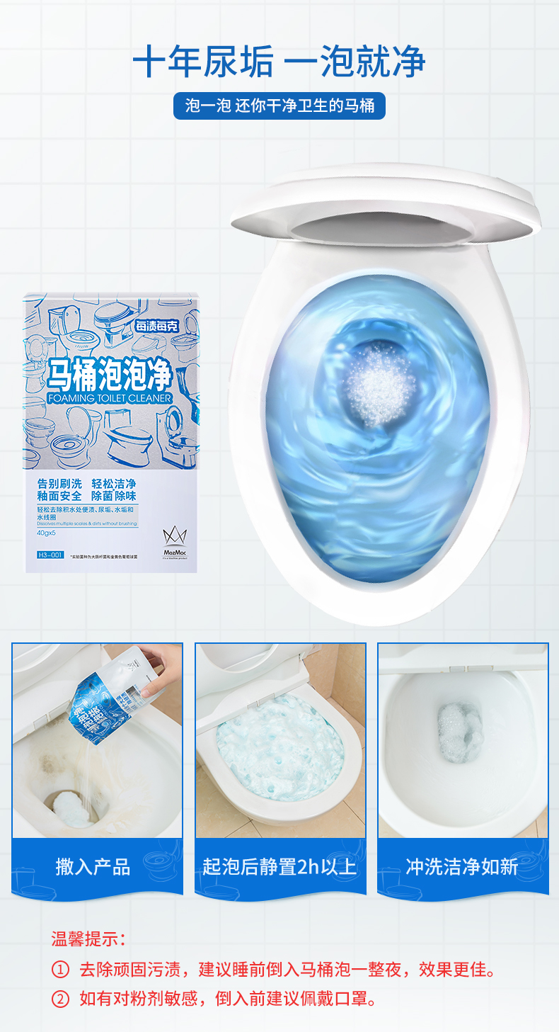 优选丨【给马桶洗个澡】每渍每克马桶泡泡净 快速发泡 无需刷洗 瓦解顽渍 呵护马桶釉面 无刺鼻气味 让马桶清洁轻松便捷 日用装 40g*5包/盒 盛泡装240g/袋