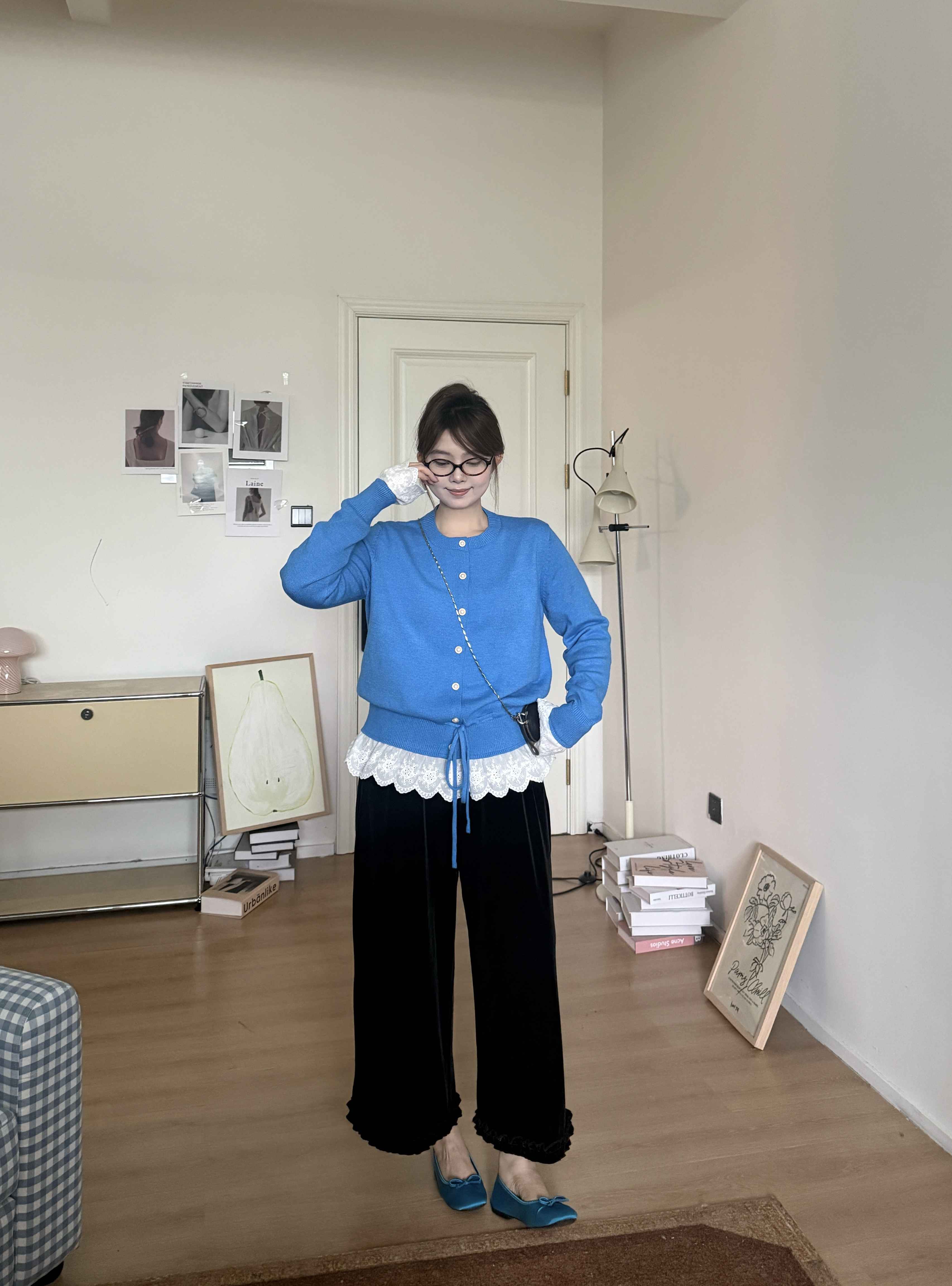 25AW上新【现货折上95折】 软软同款【琉璃之梦】法式温柔风抽绳下摆拼接蕾丝边针织开衫
