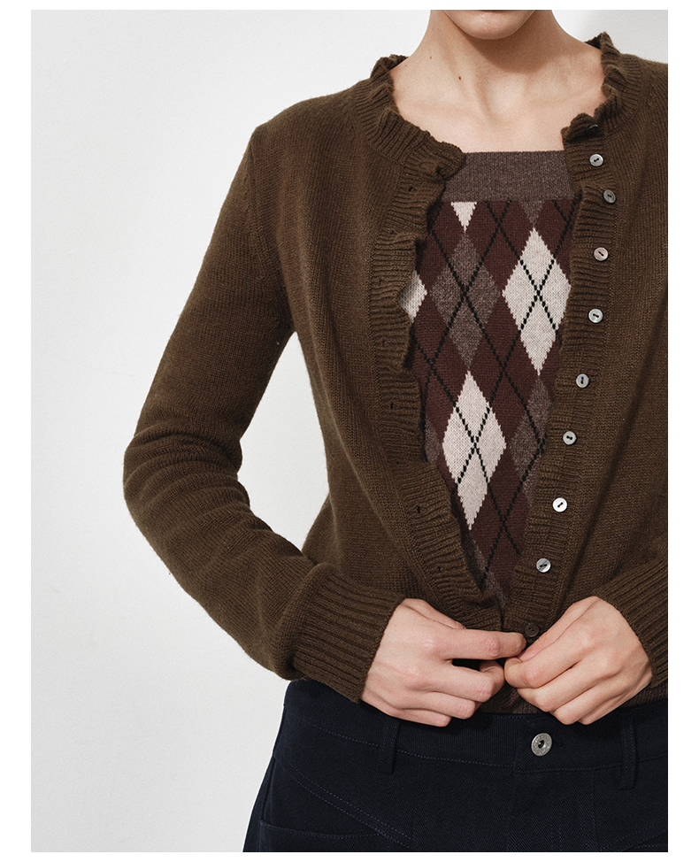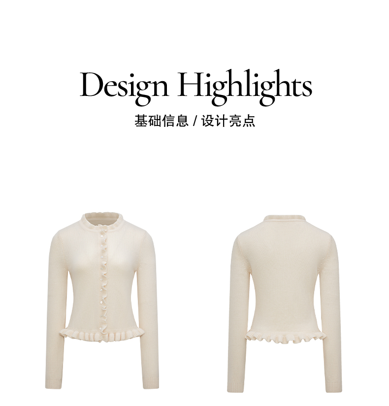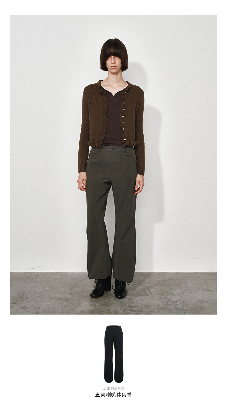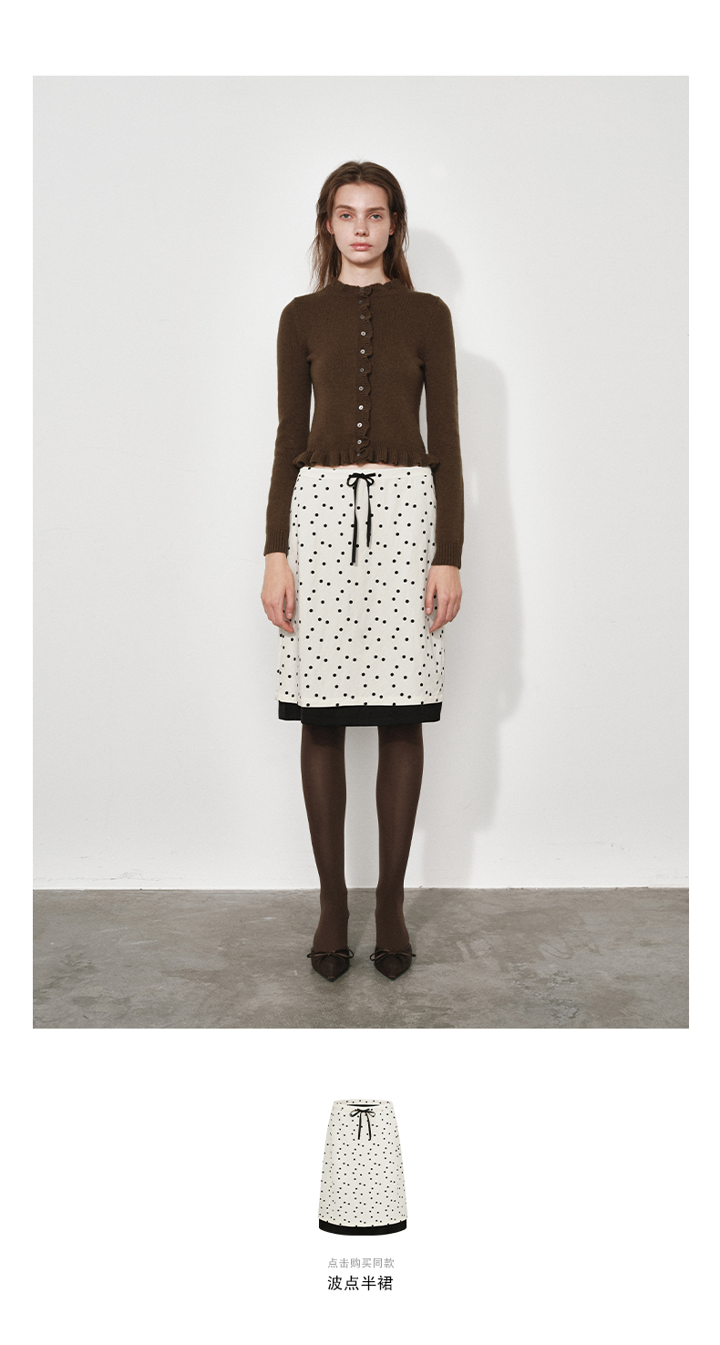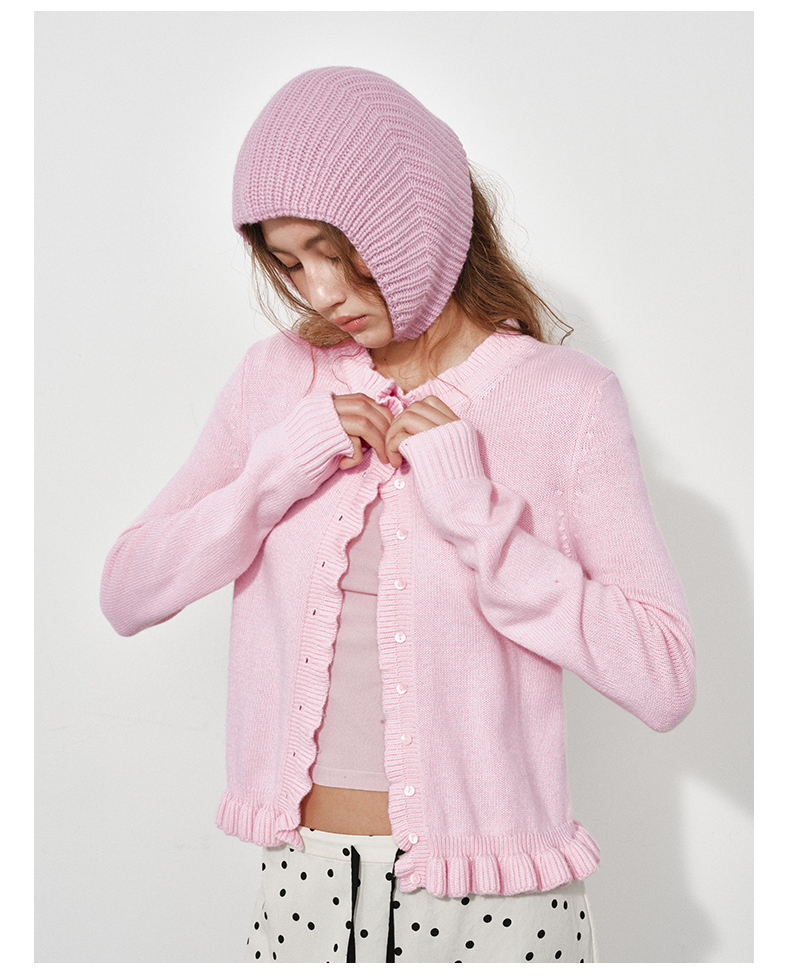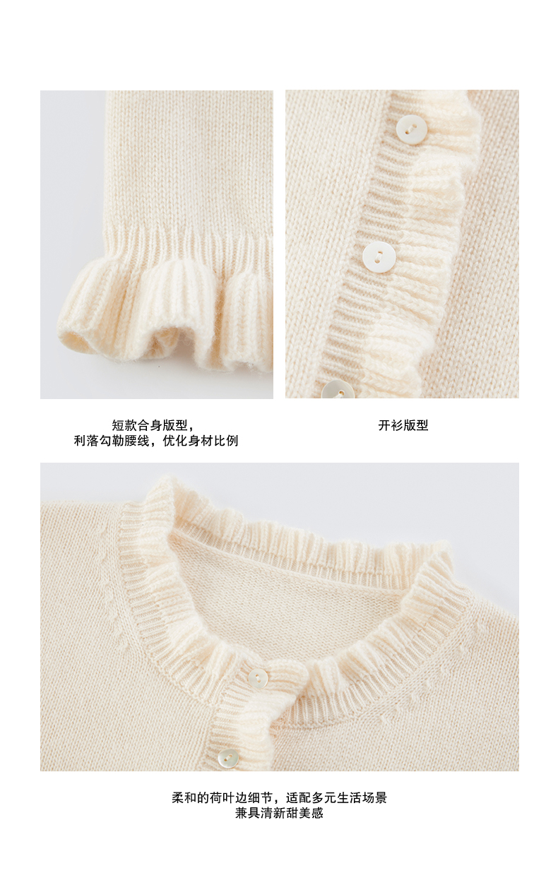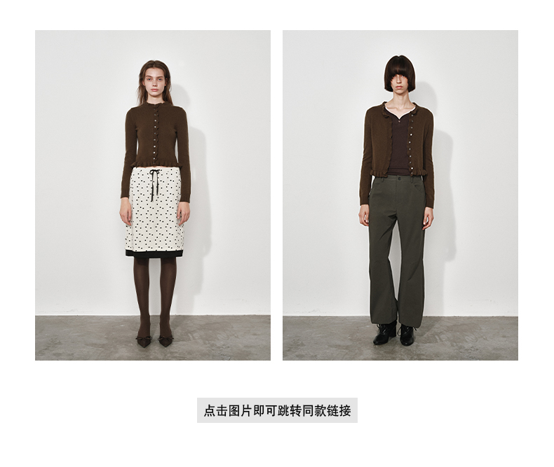 NUTH羊毛混纺正肩短款修身显瘦针织开衫女 深咖色/粉色/奶油白色