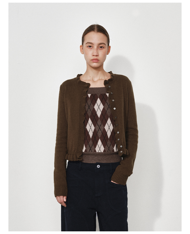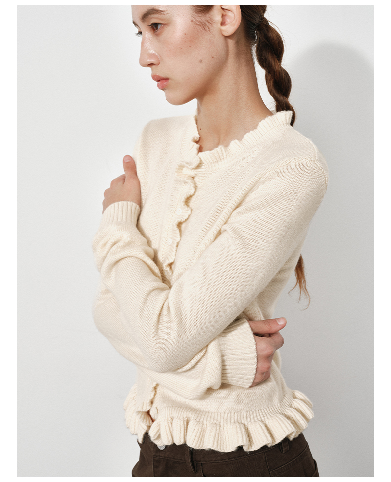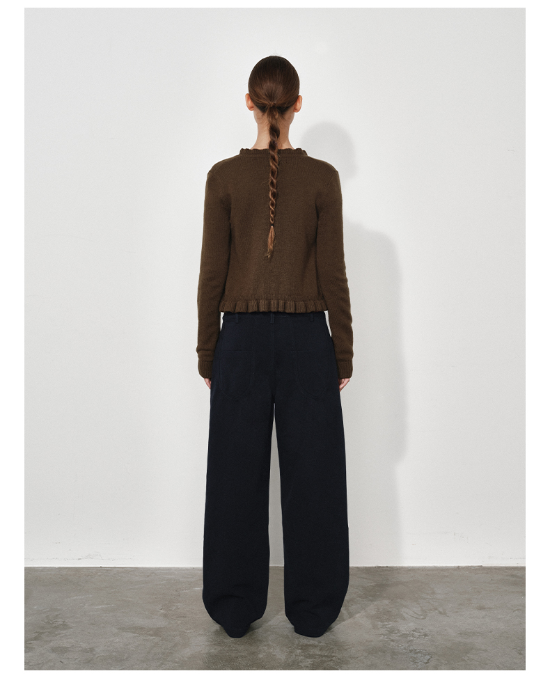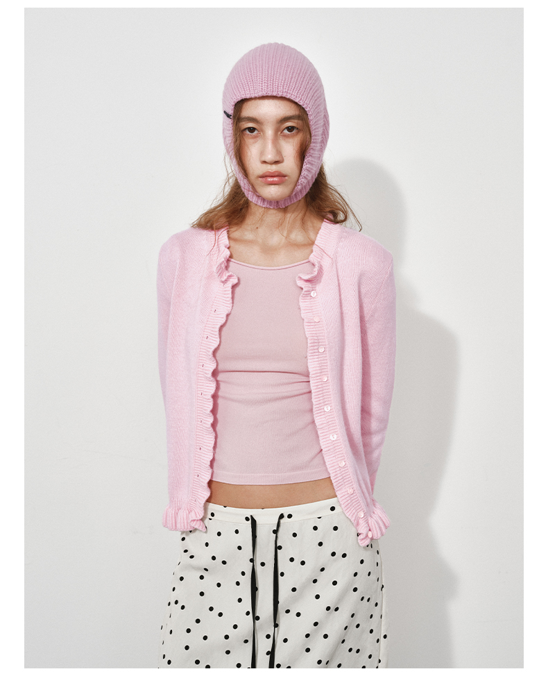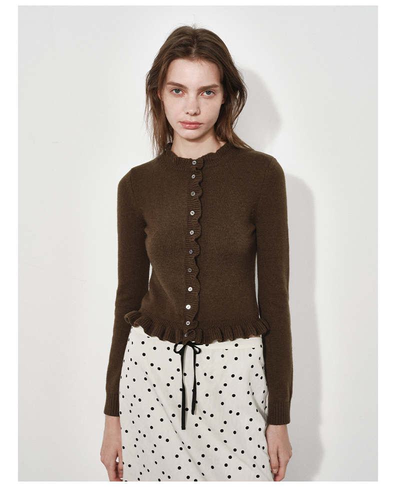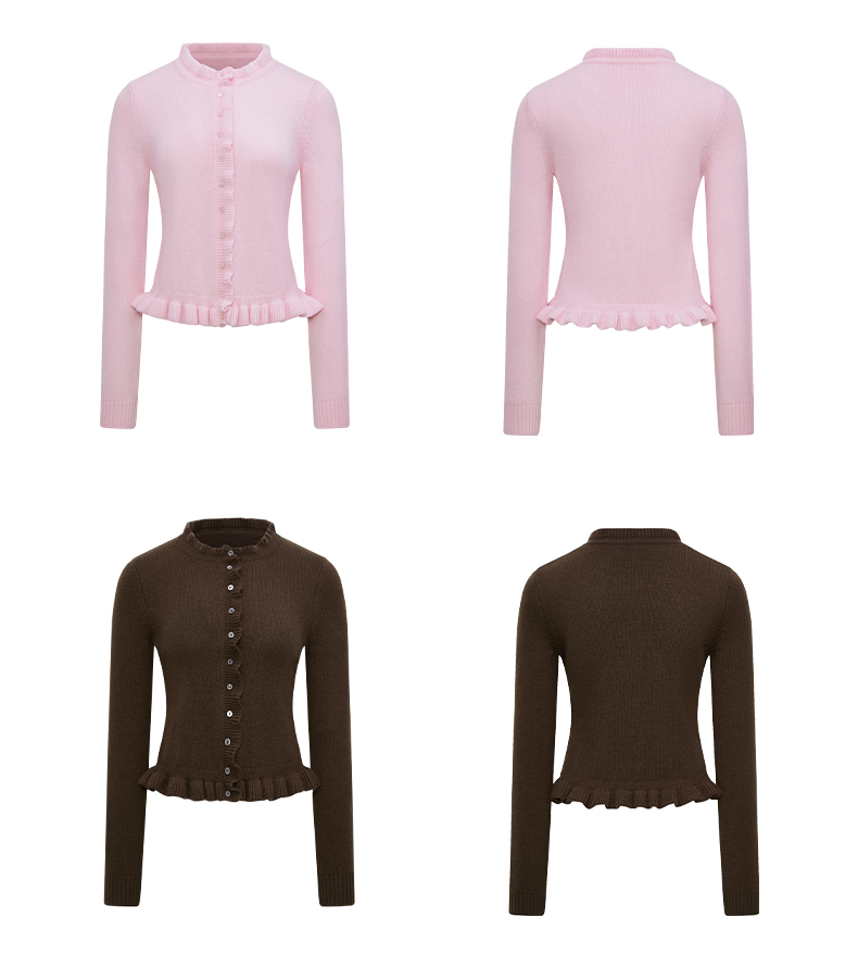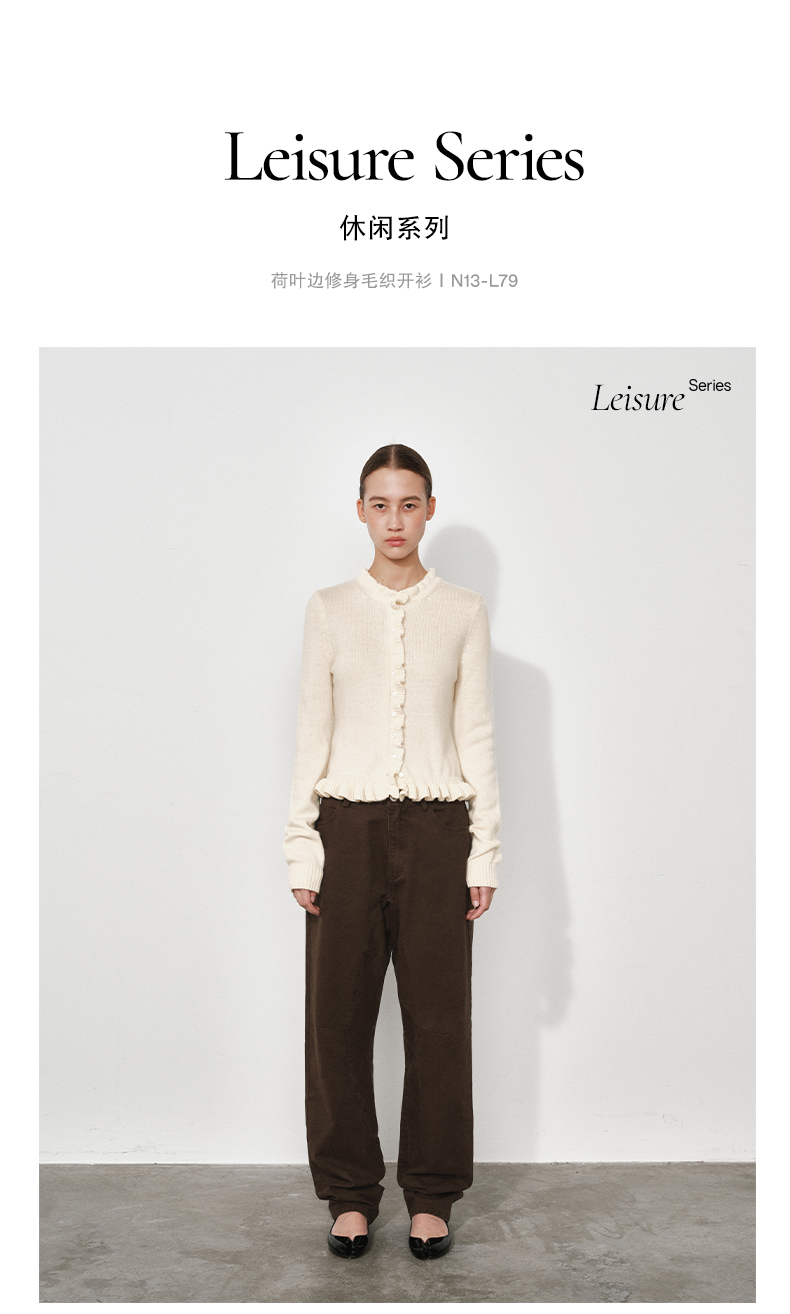 NUTH羊毛混纺正肩短款修身显瘦针织开衫女 深咖色/粉色/奶油白色