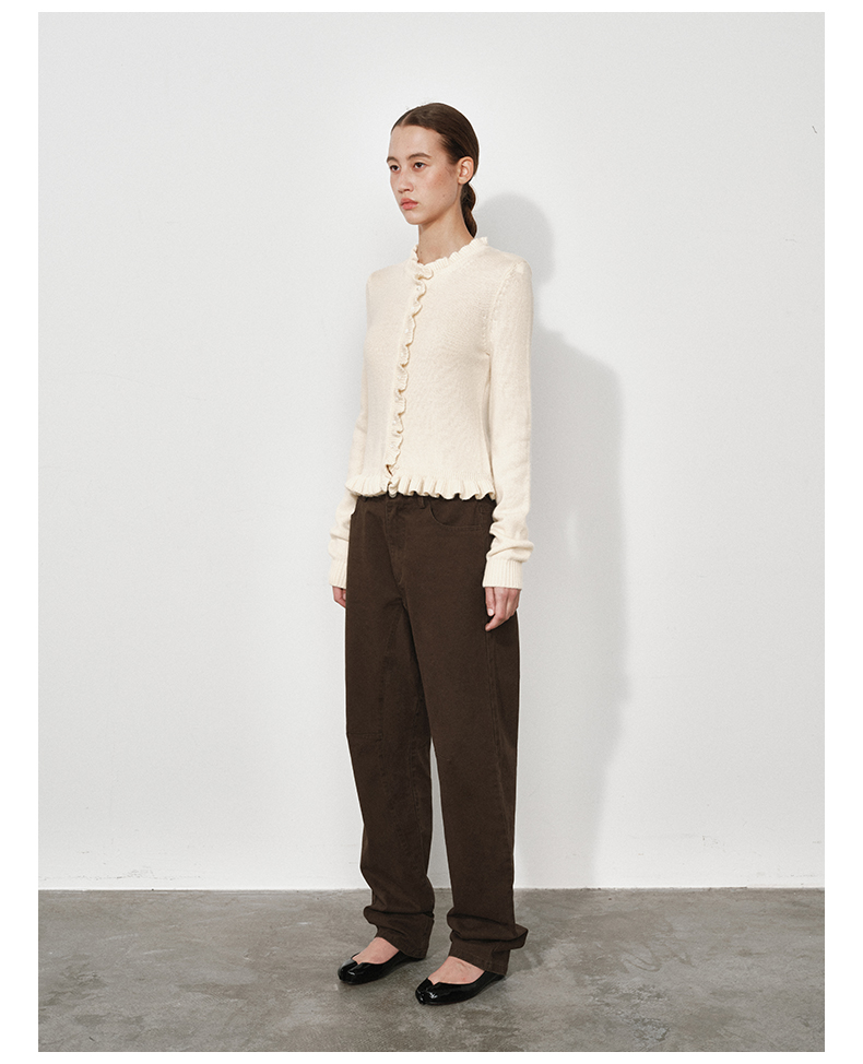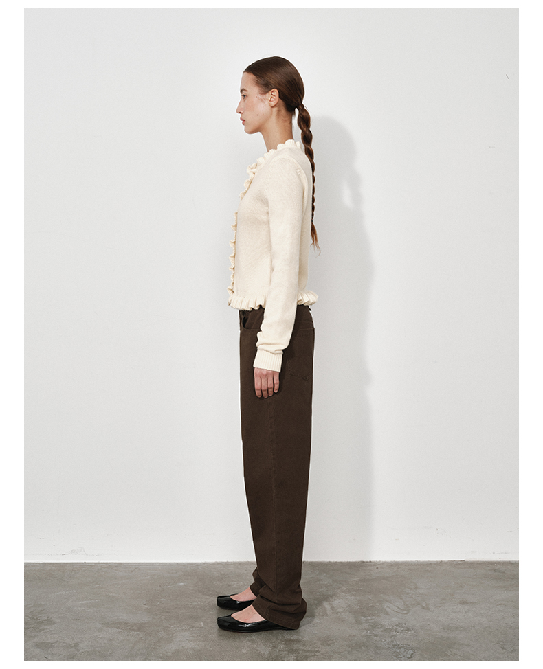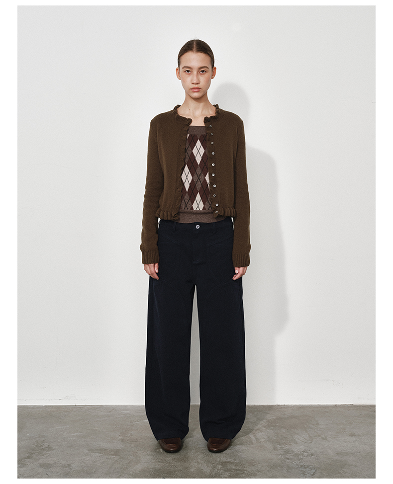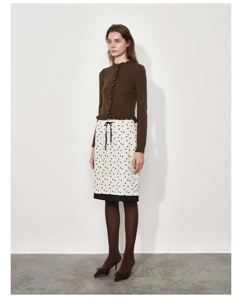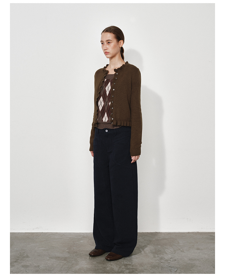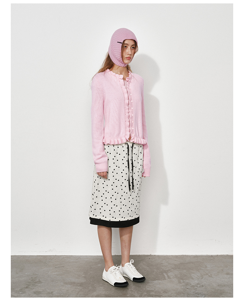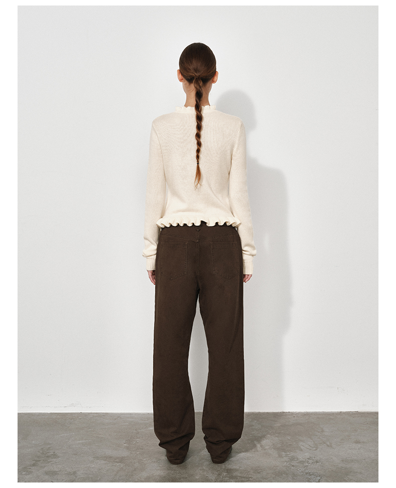 NUTH羊毛混纺正肩短款修身显瘦针织开衫女 深咖色/粉色/奶油白色