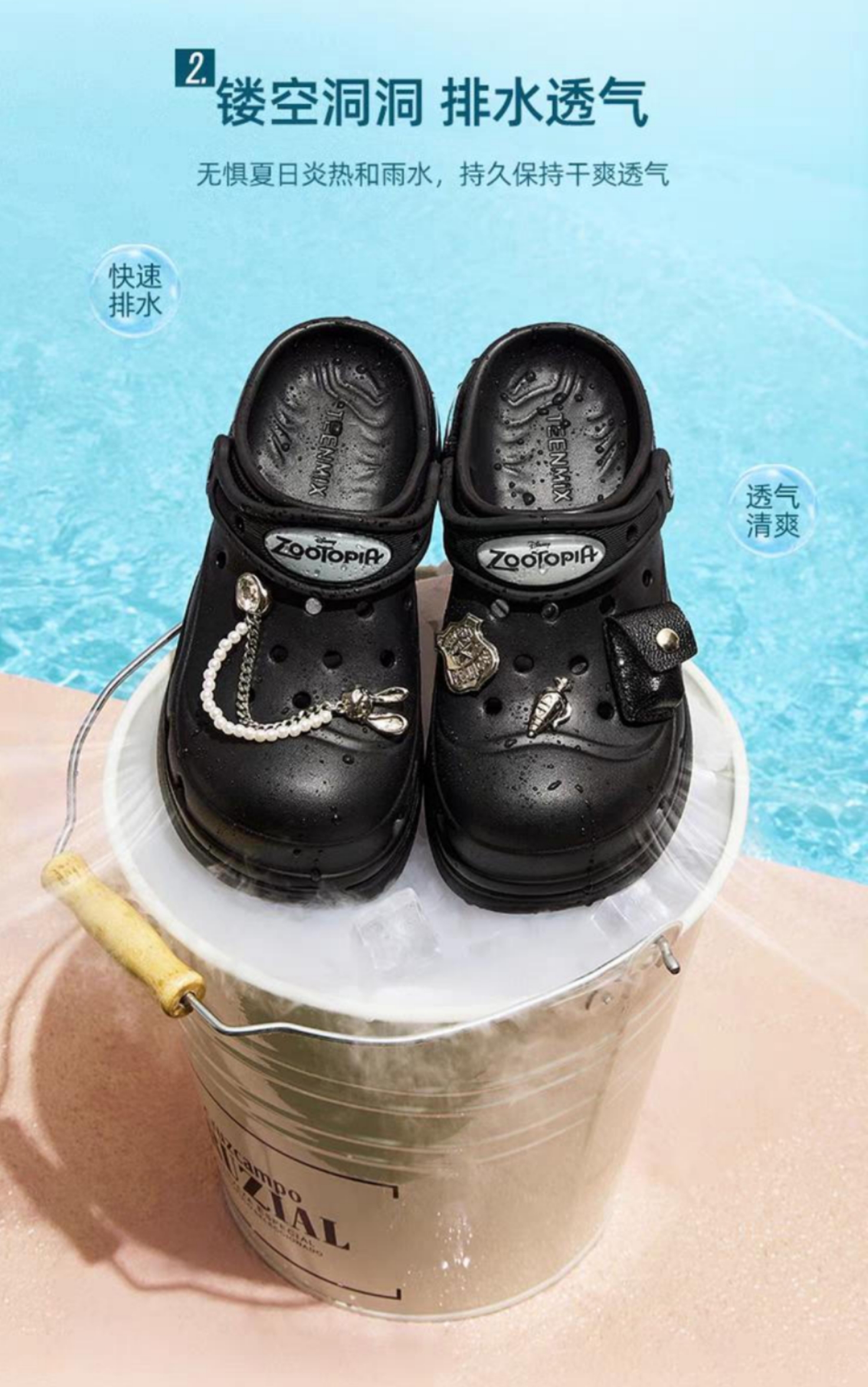 TEENMIX天美意2025夏新厚底休闲踩屎感洞洞鞋疯狂动物城联名洞洞鞋