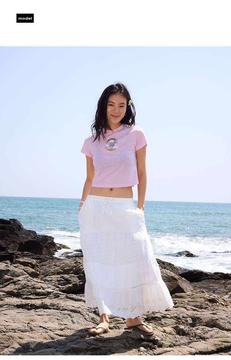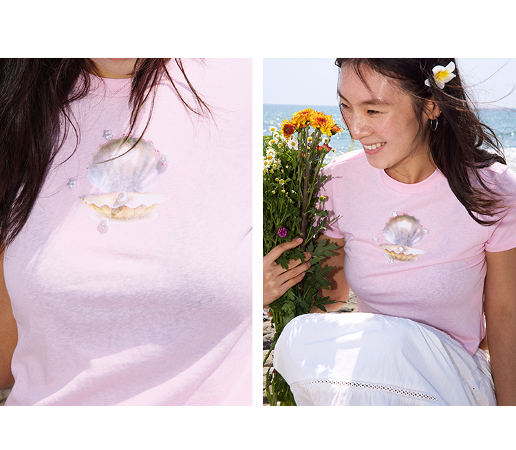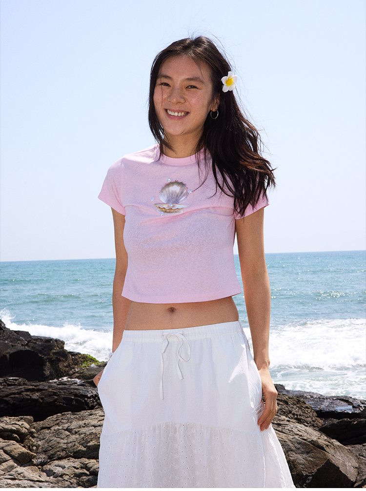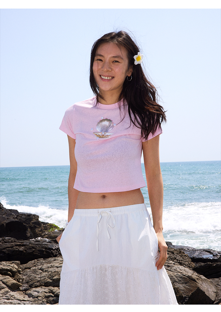 CryingCenter 贝壳珍珠短袖正肩短款轻薄微透 竹节棉T恤 哭喊中心