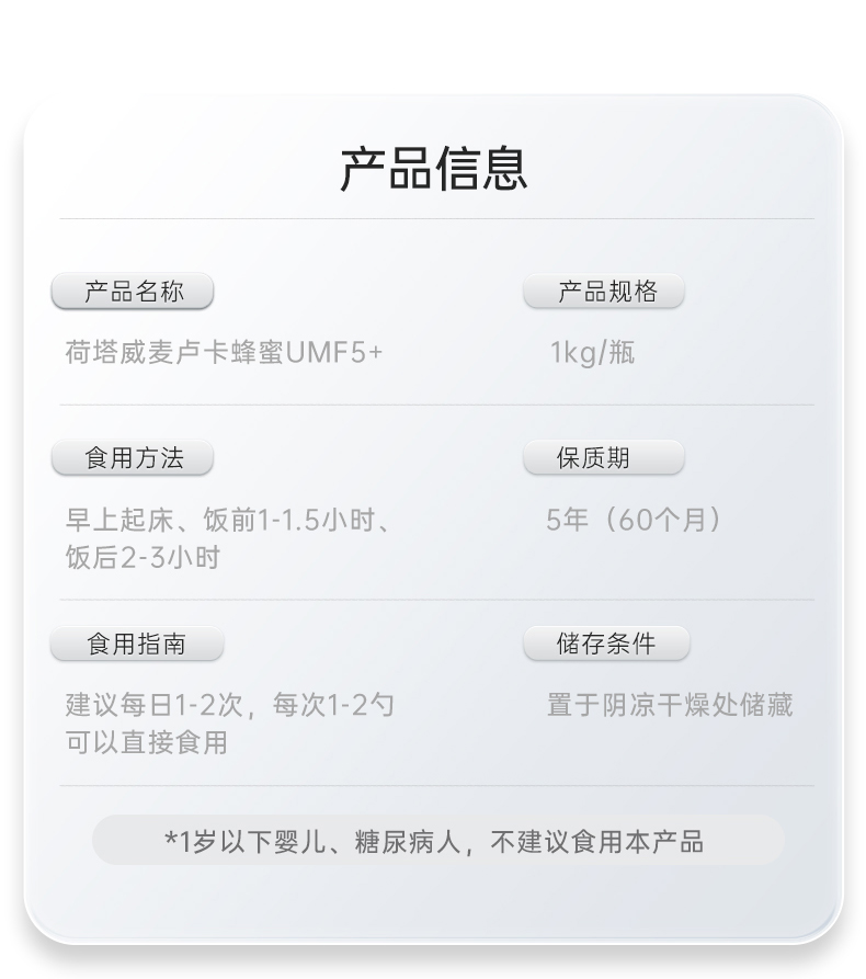 【新西兰进口】荷塔威UMF5+麦卢卡蜂蜜*250g/瓶 基础滋补 体验装