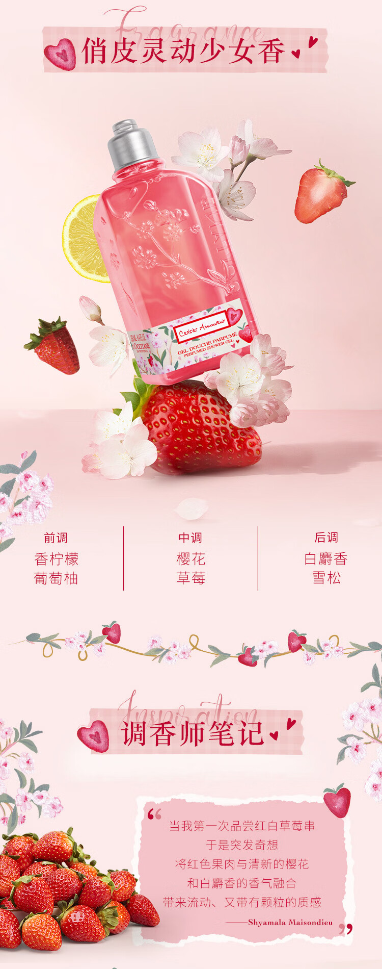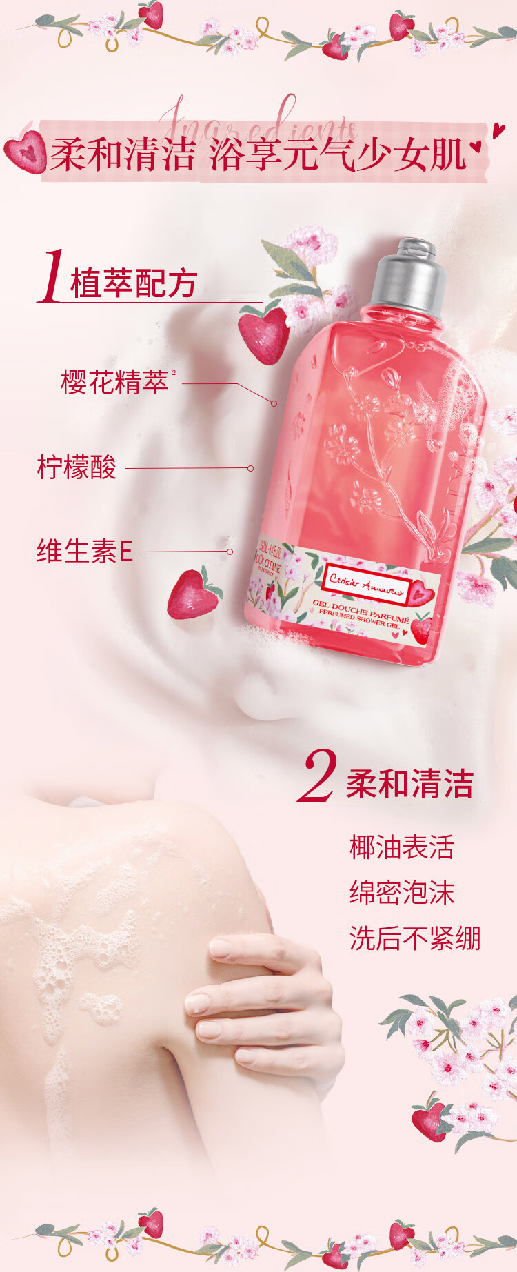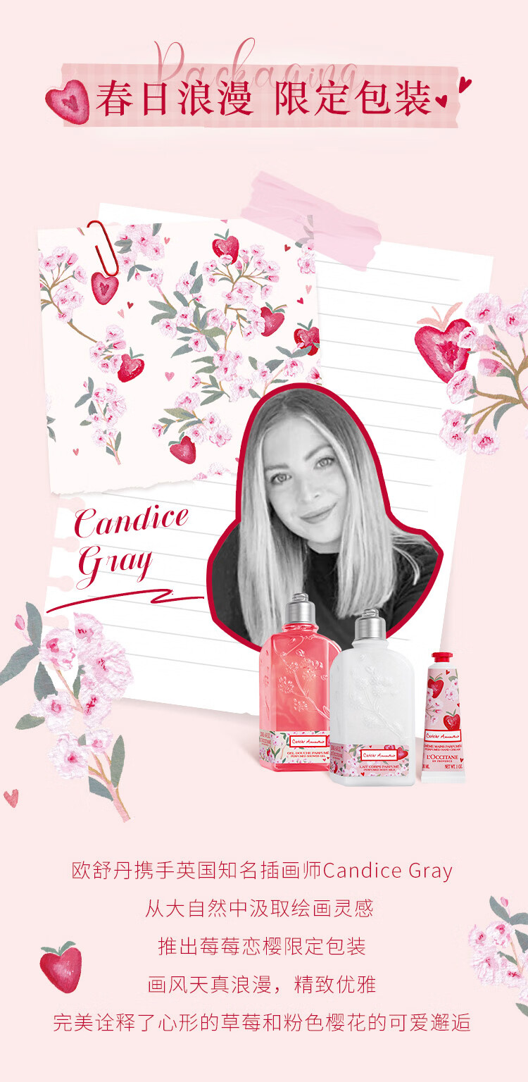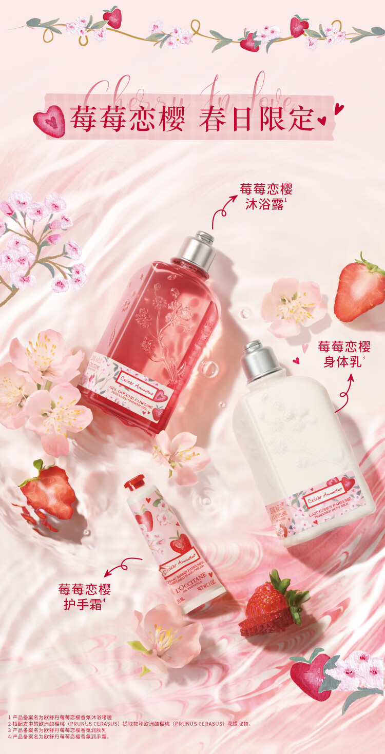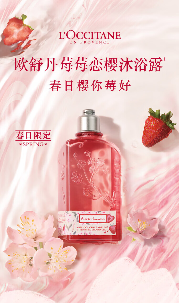 欧舒丹莓莓恋樱/马鞍草/薰衣草/云中桂香氛沐浴露250ml温和滋润保湿清洁花果调浪漫礼盒送女友 心选到家
