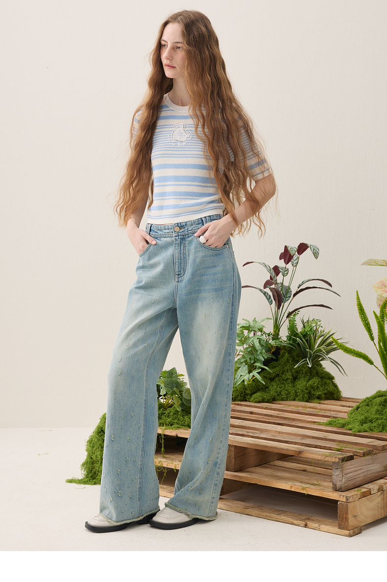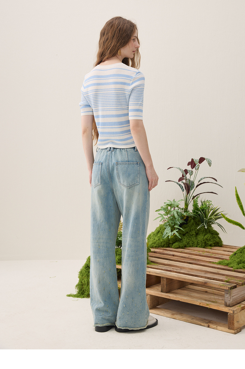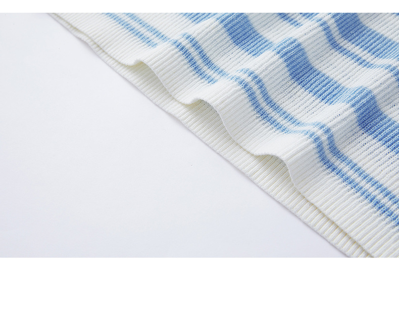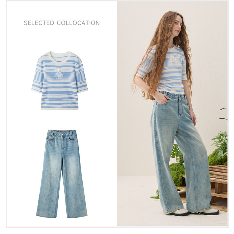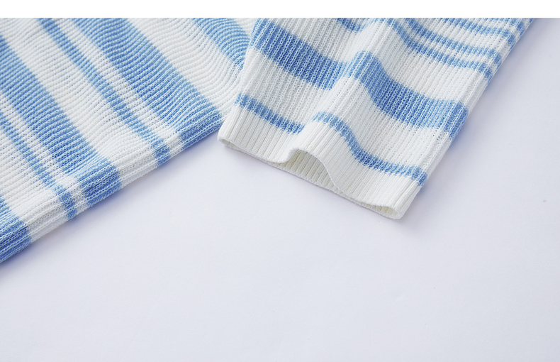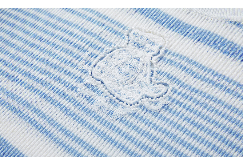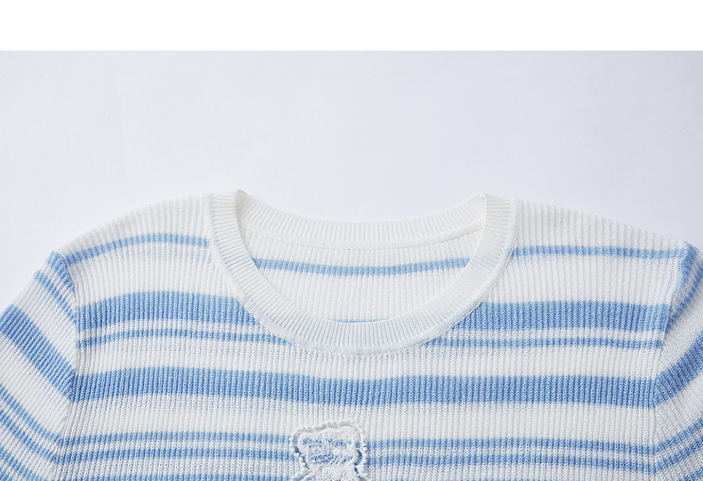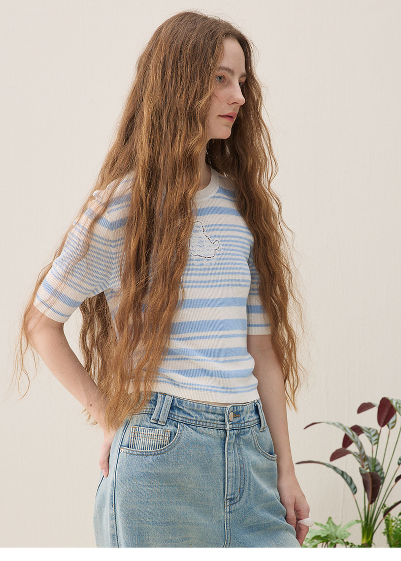 谜底短款针织衫短袖2026年春季新品条纹显瘦绣花上衣女261MZ0343