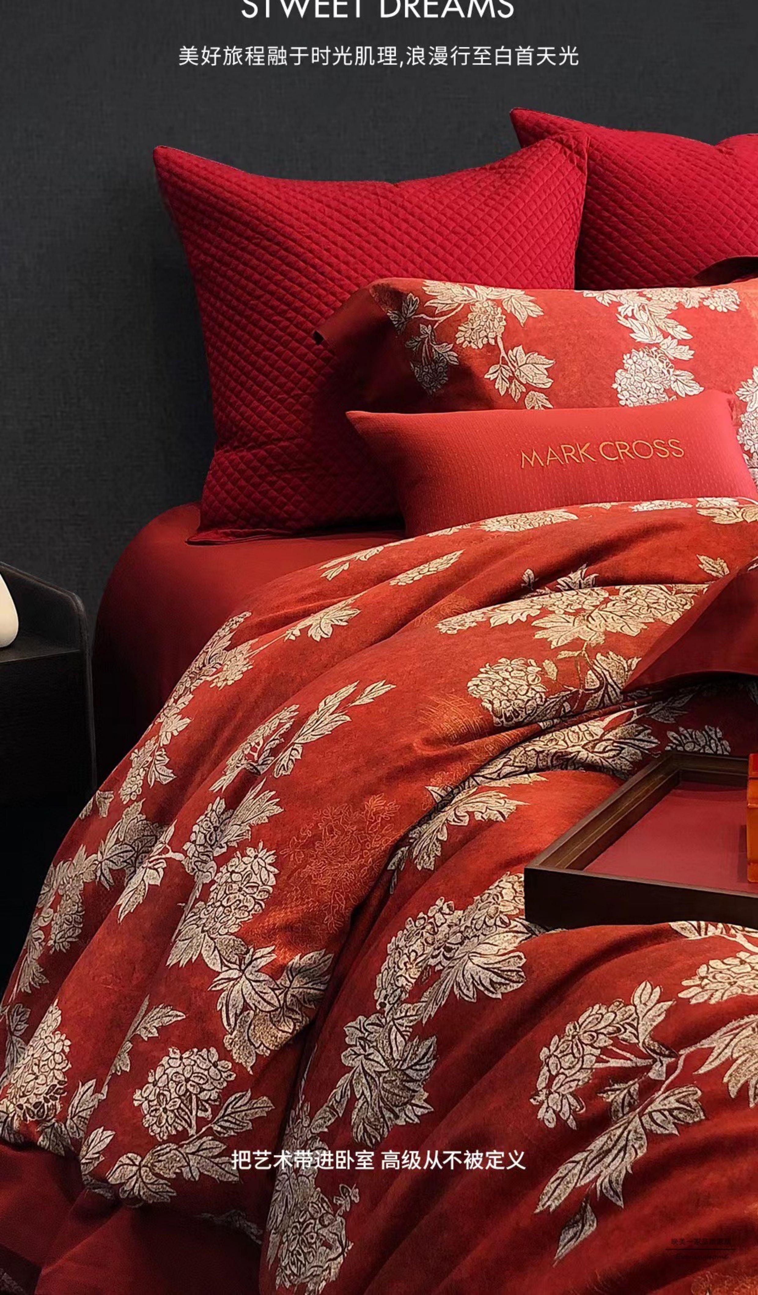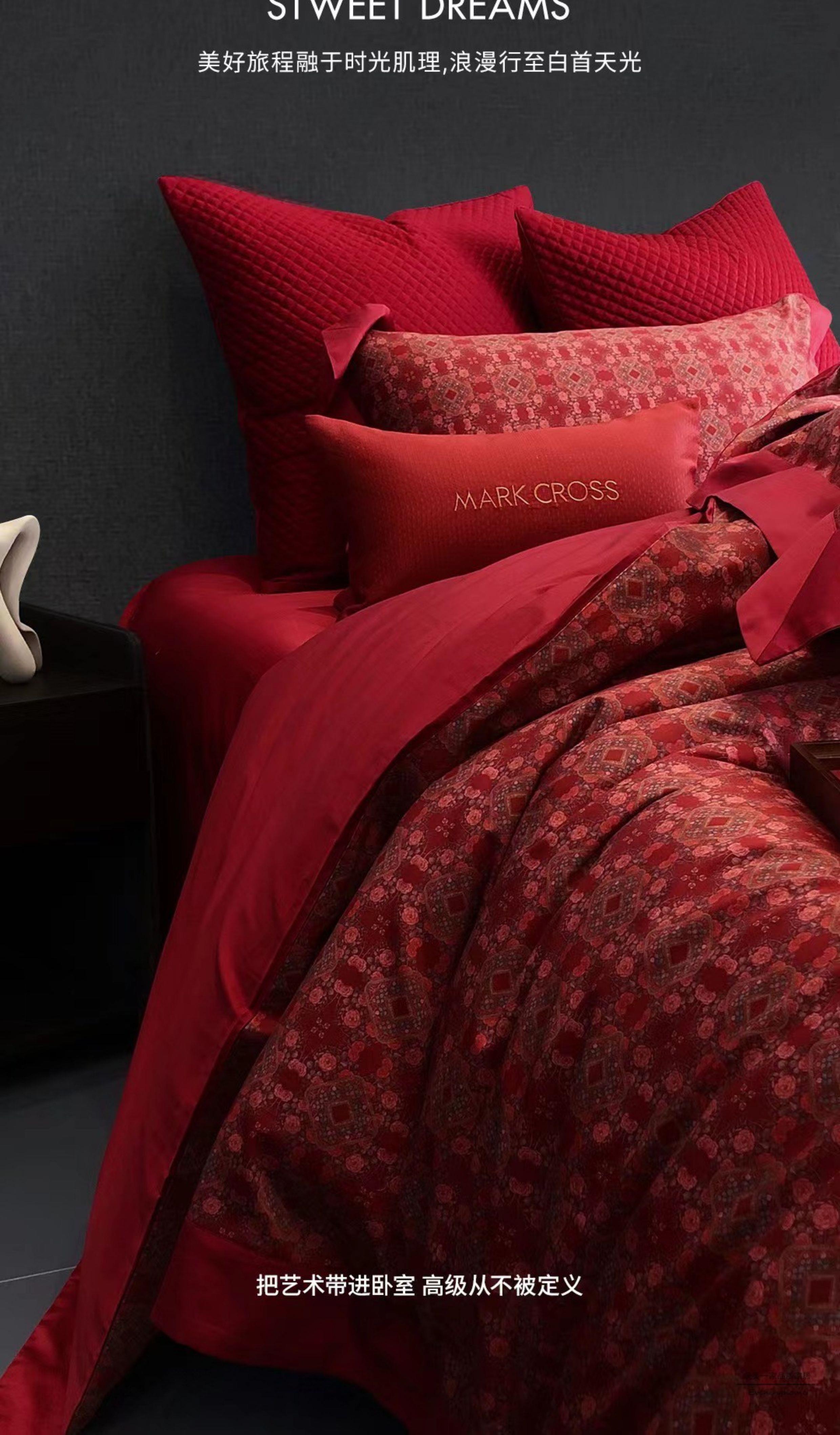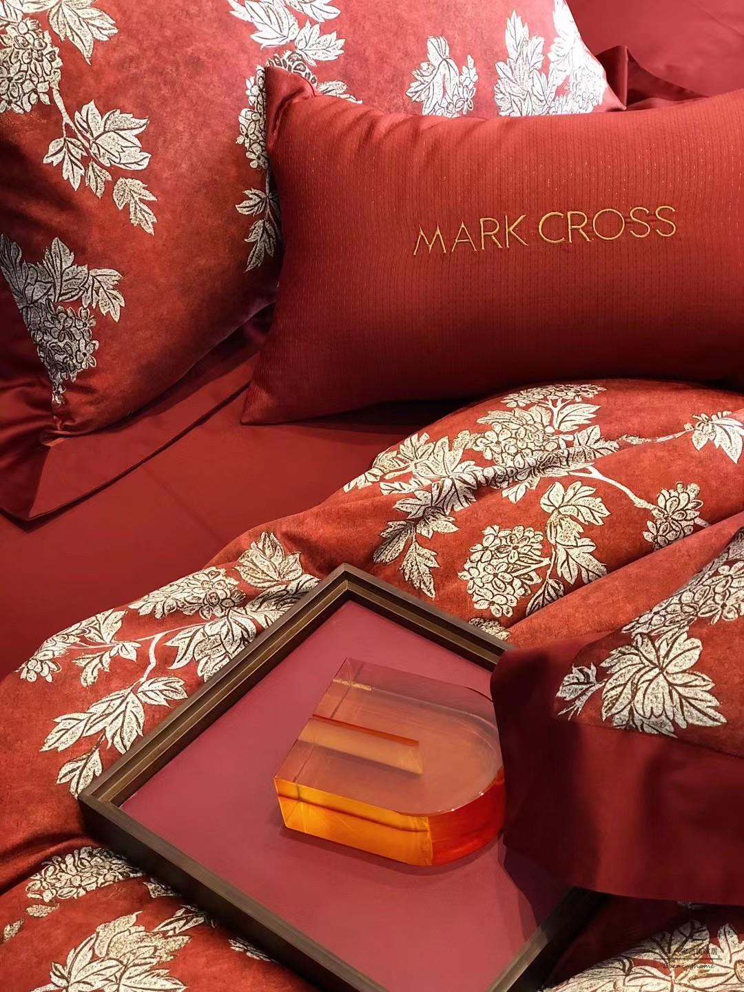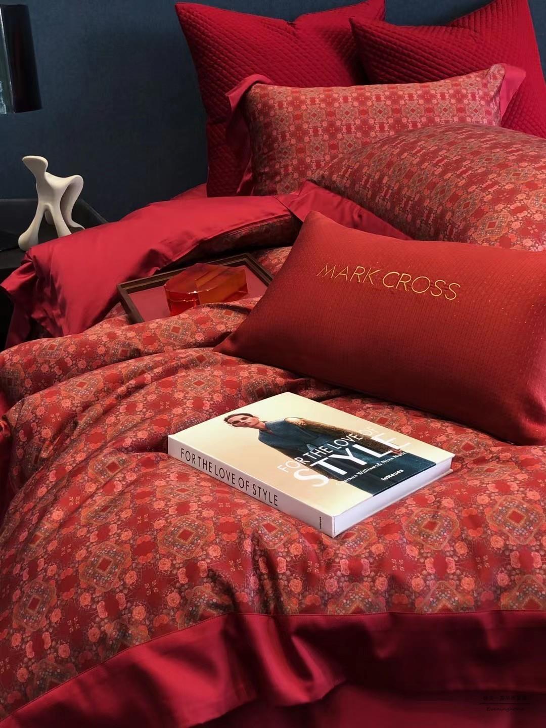 MARK CROSS 简欧式100支长绒棉纯棉床上四件套红色结婚房全棉备婚