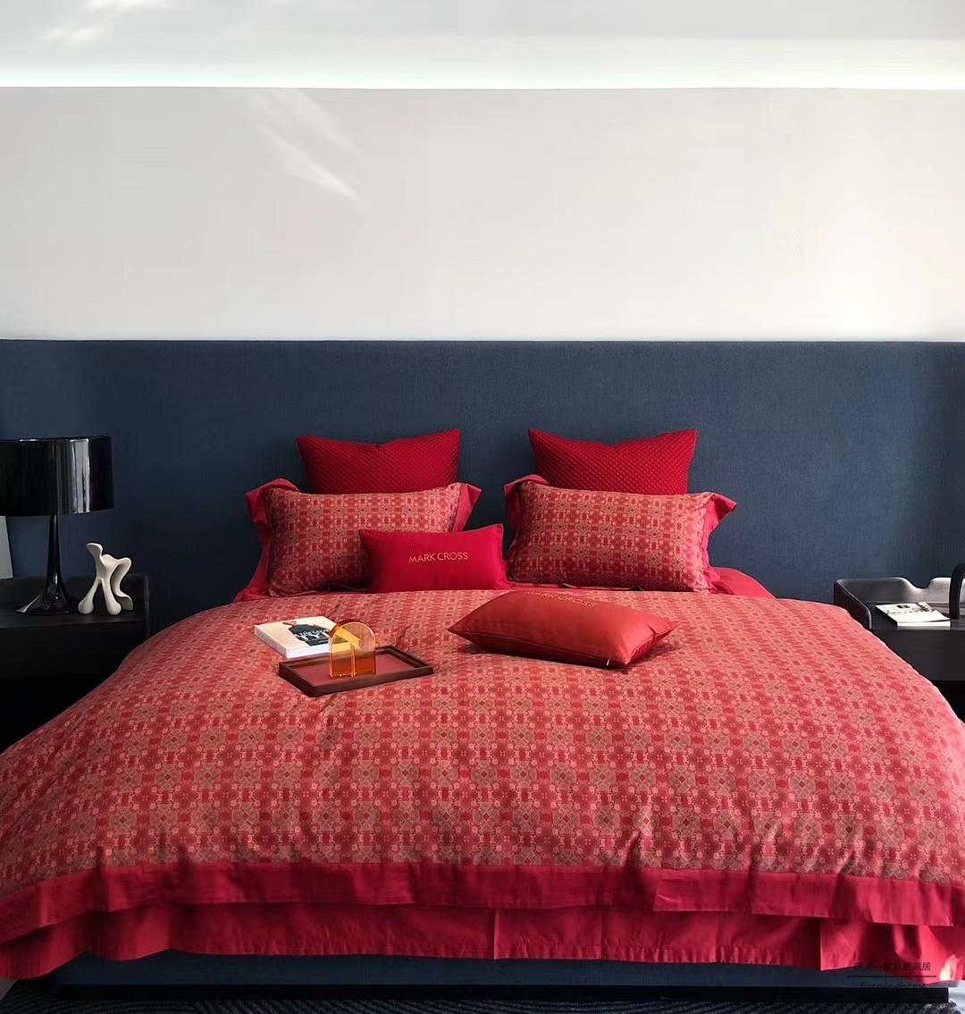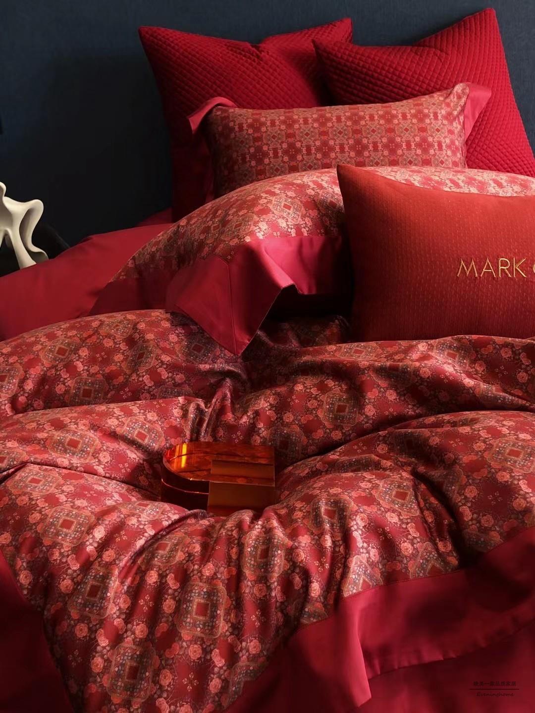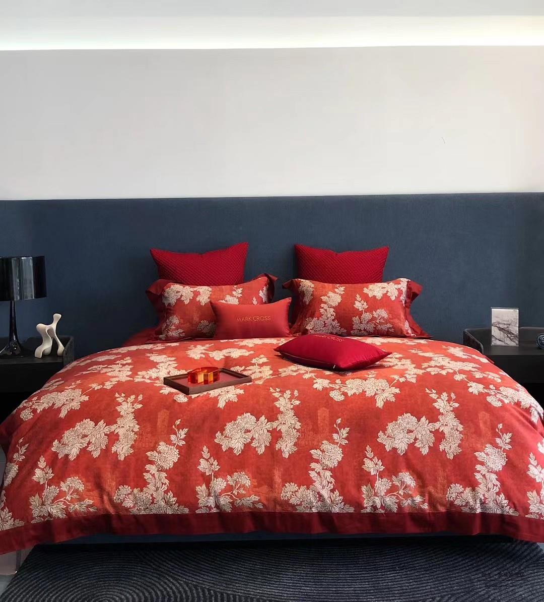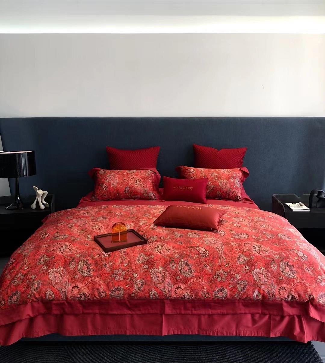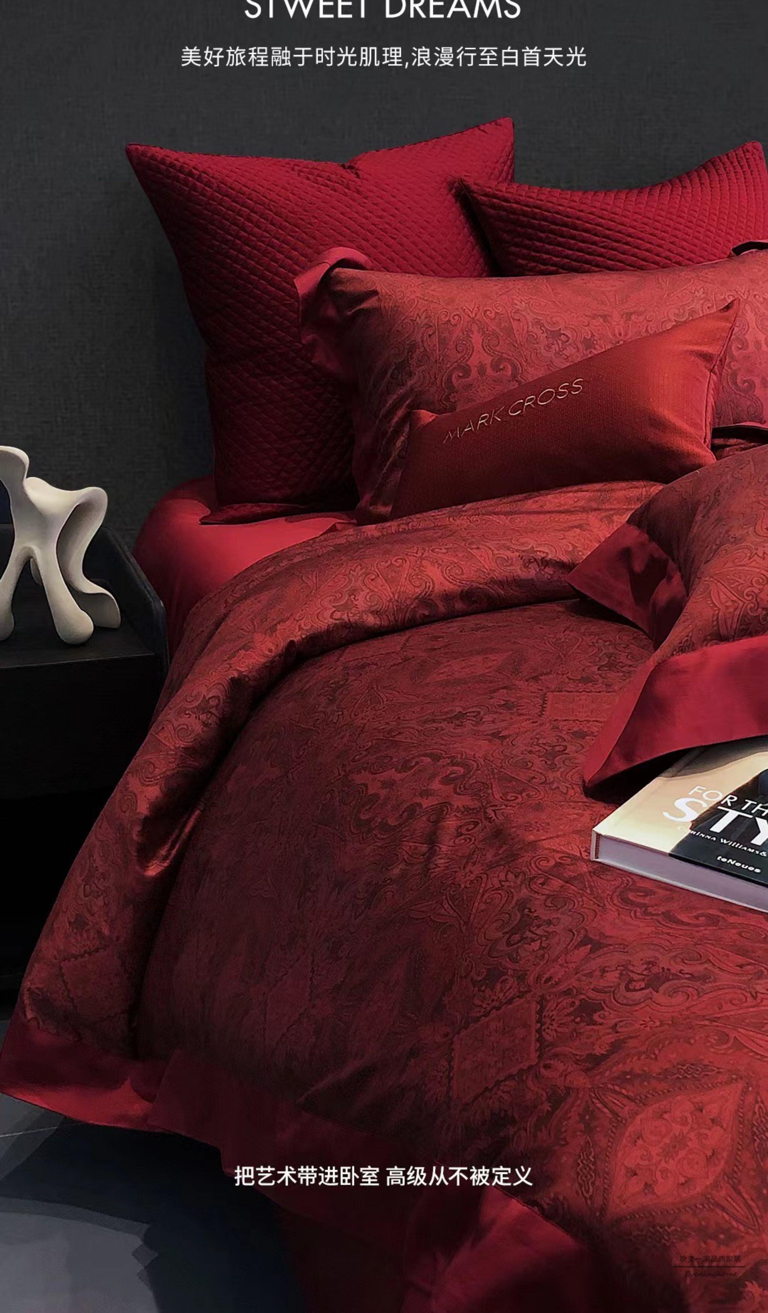 MARK CROSS 简欧式100支长绒棉纯棉床上四件套红色结婚房全棉备婚