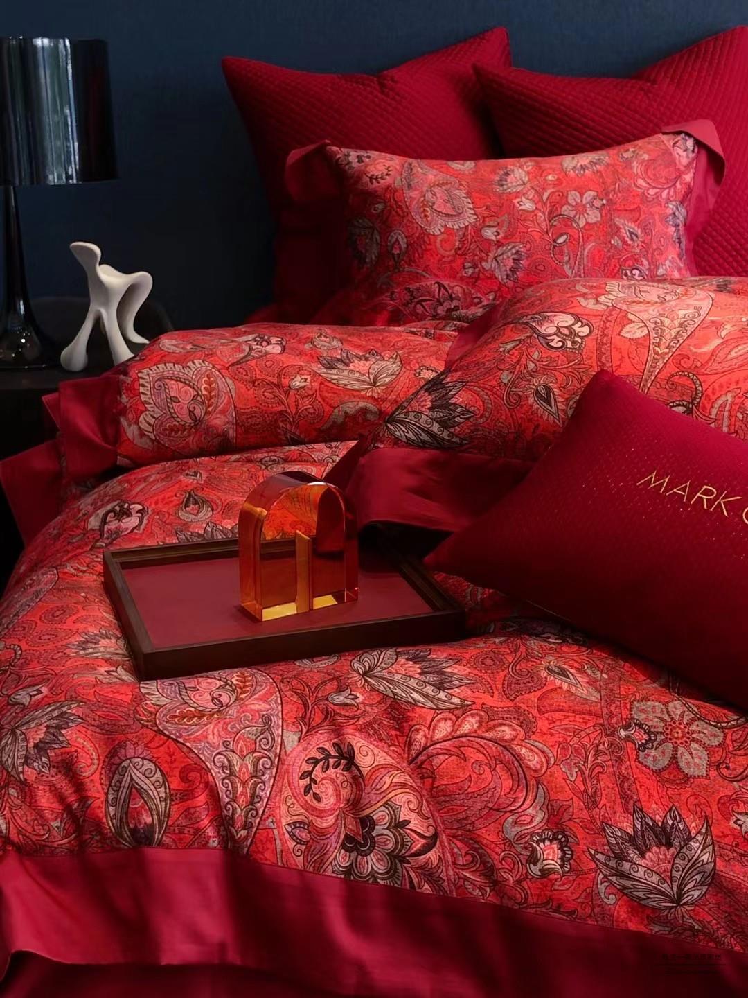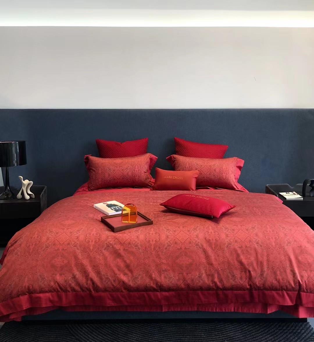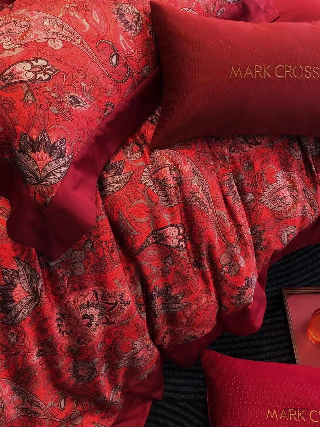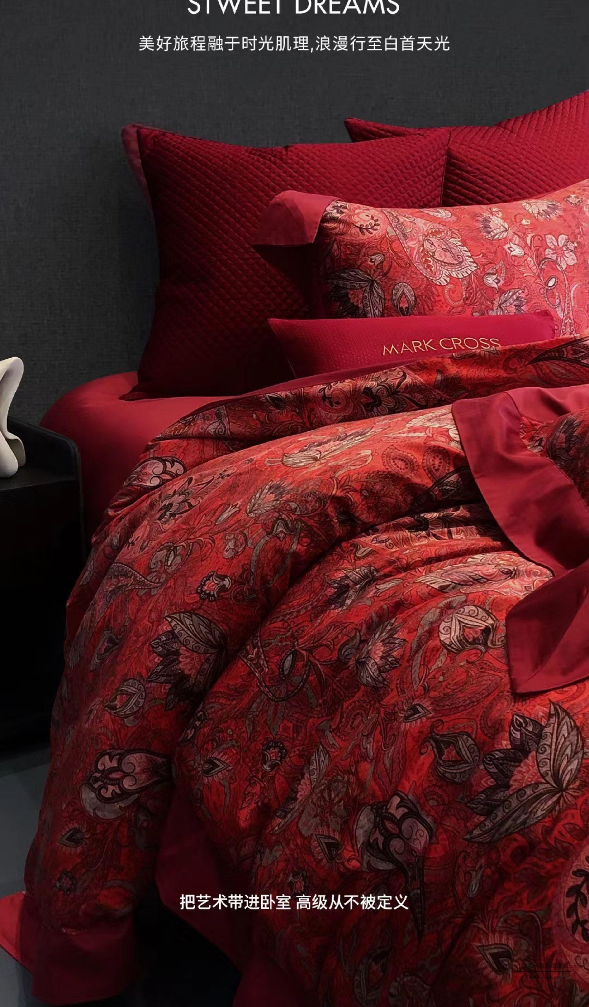 MARK CROSS 简欧式100支长绒棉纯棉床上四件套红色结婚房全棉备婚