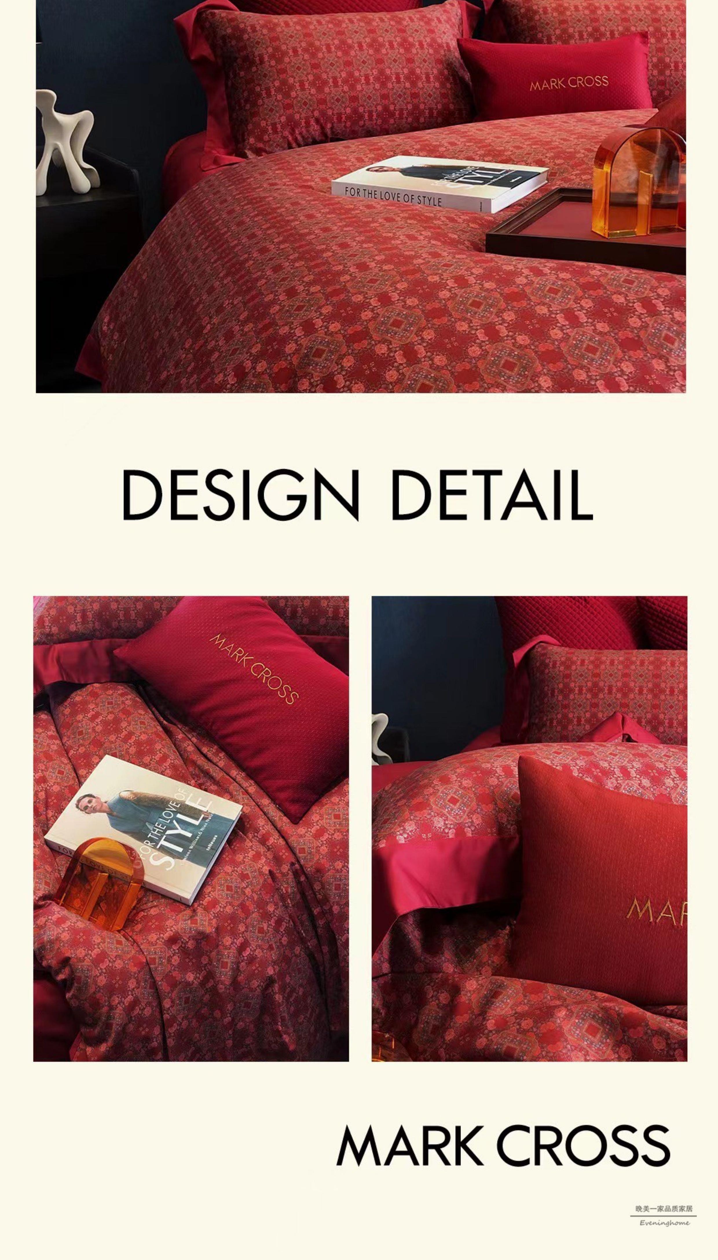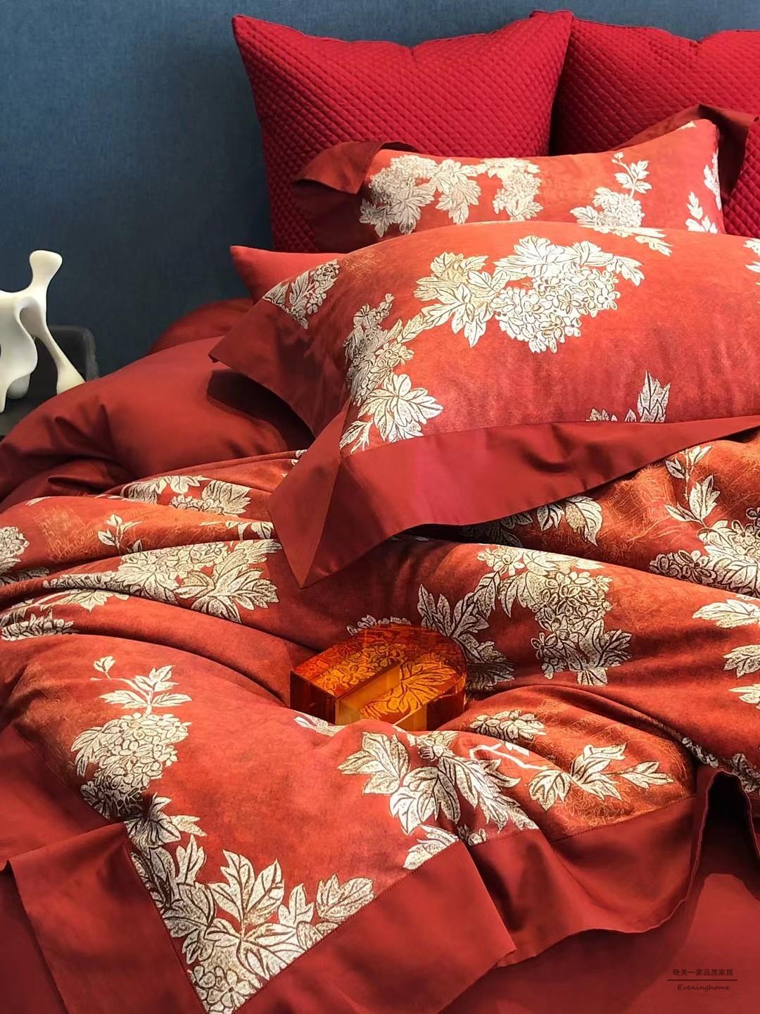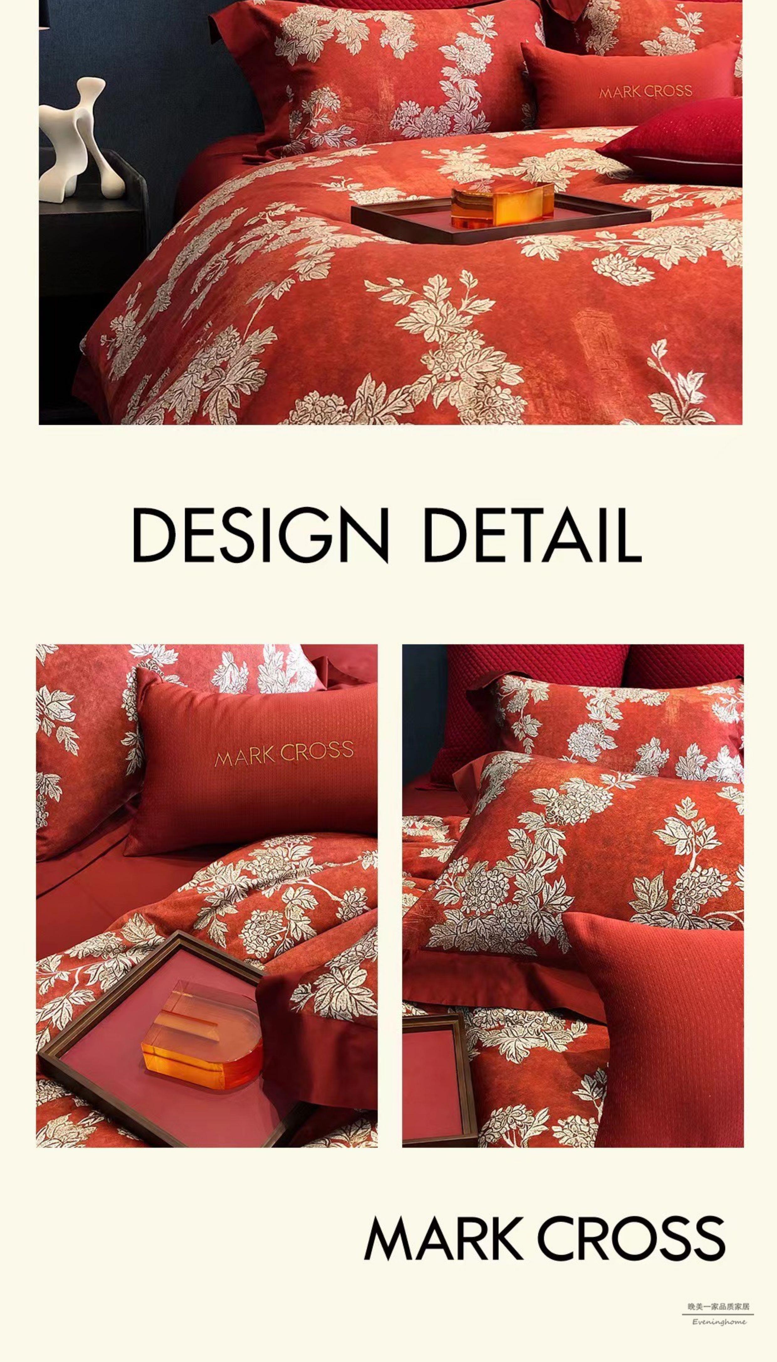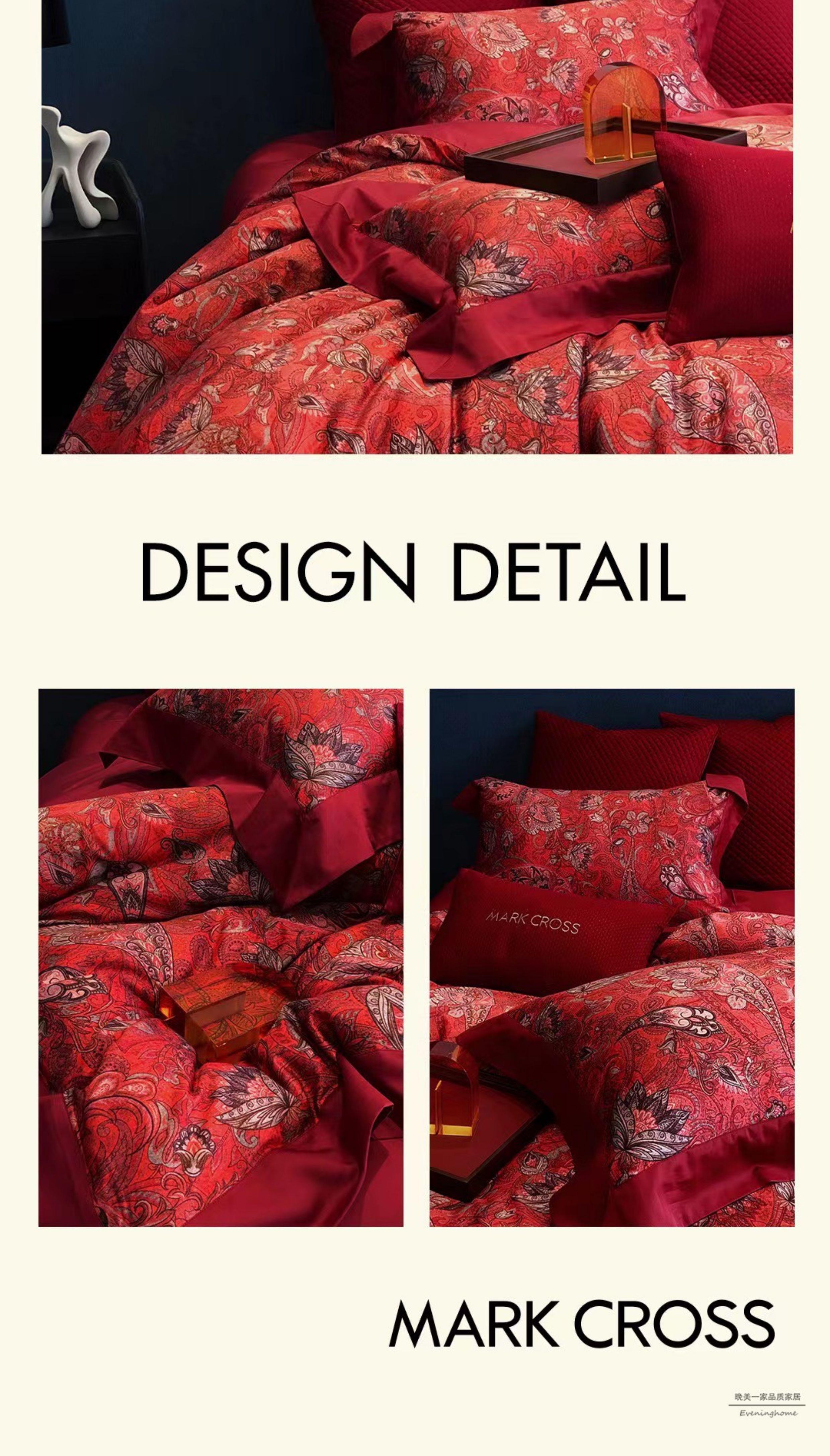 MARK CROSS 简欧式100支长绒棉纯棉床上四件套红色结婚房全棉备婚