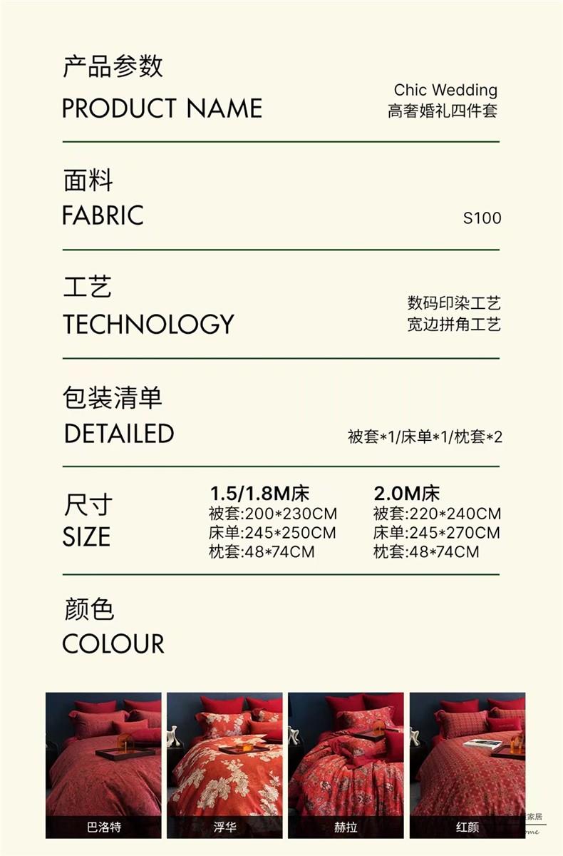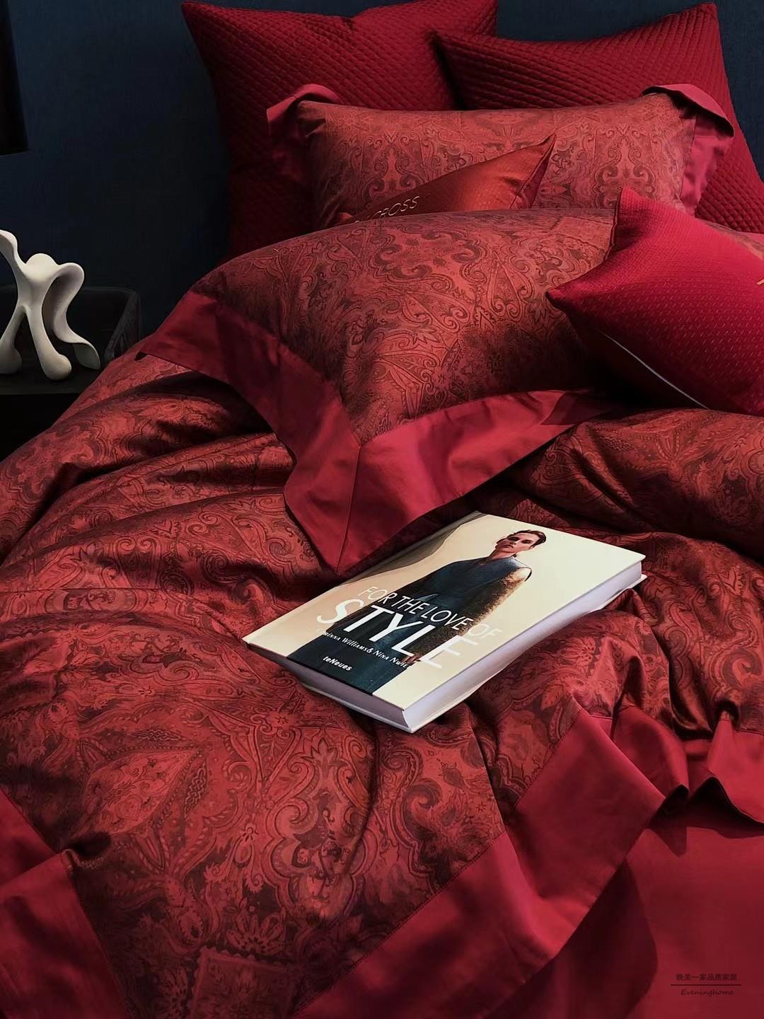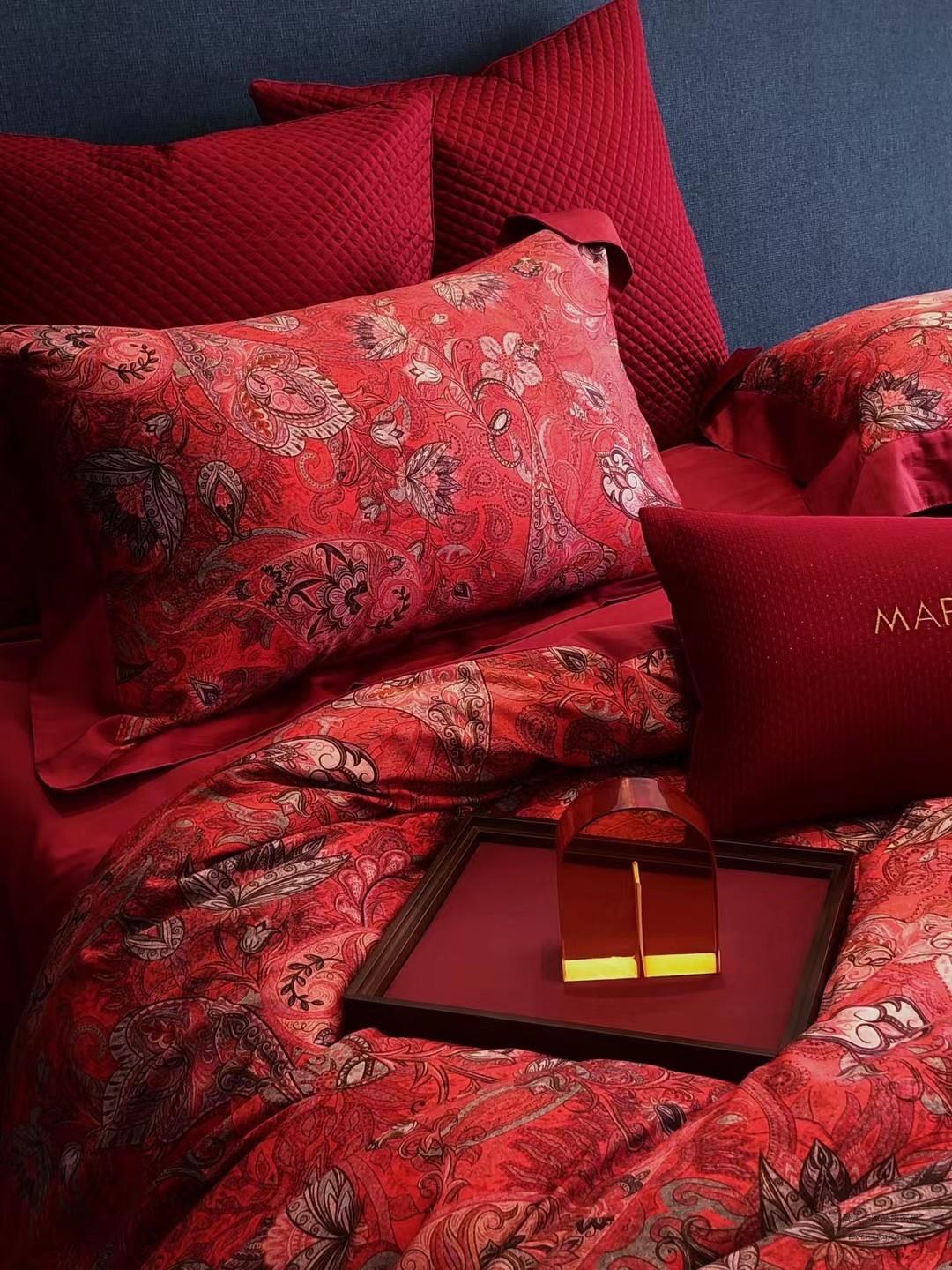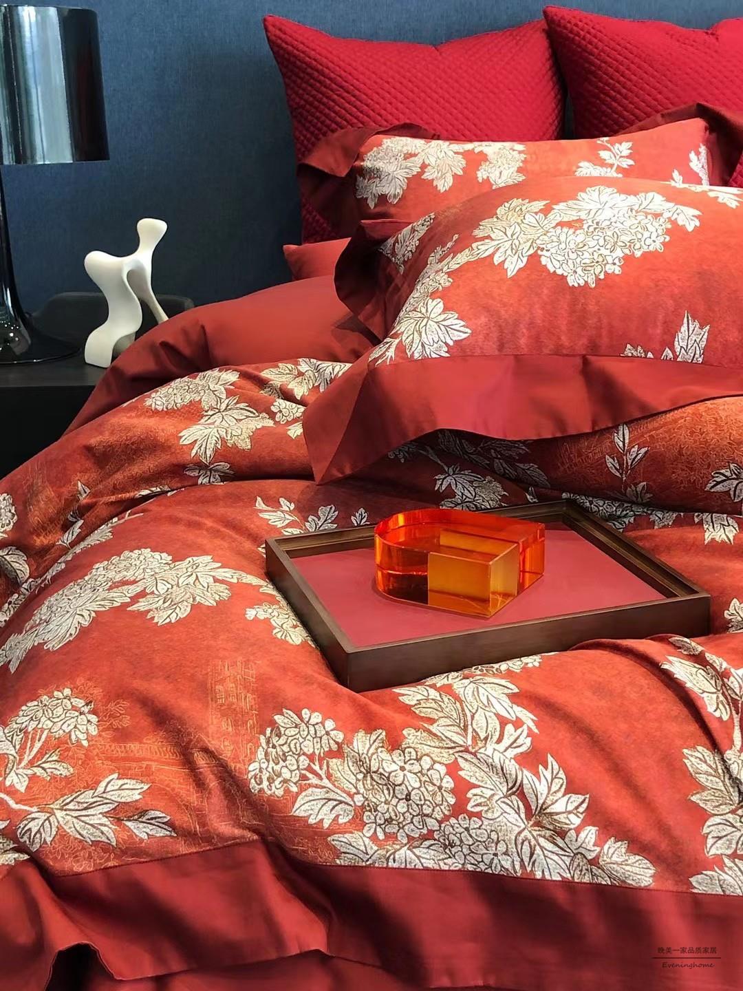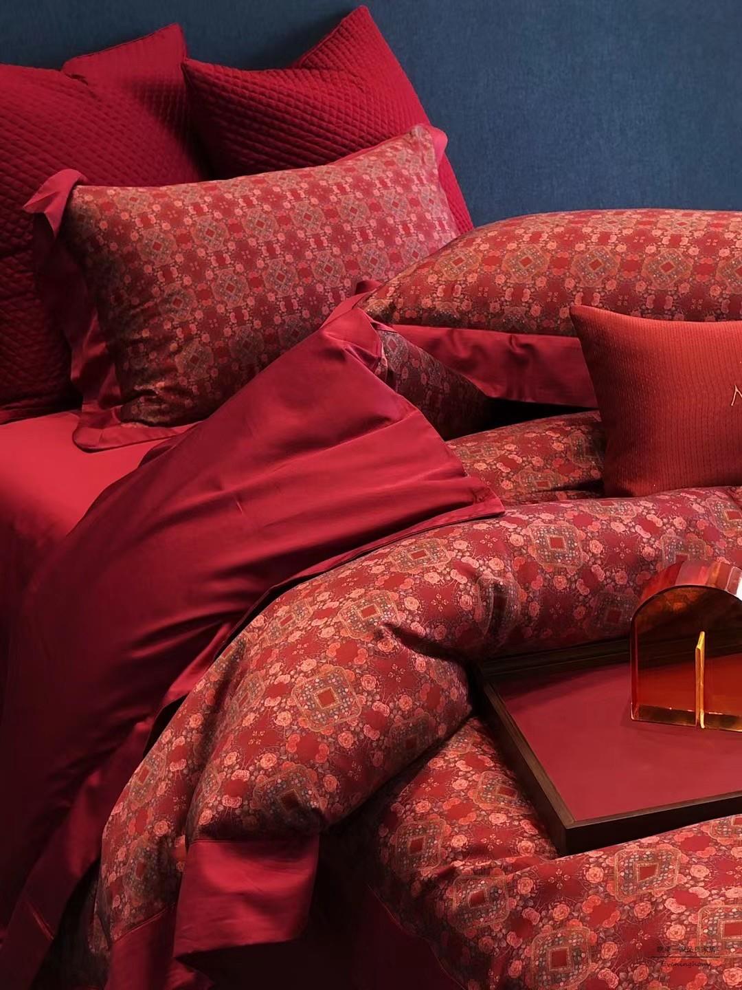 MARK CROSS 简欧式100支长绒棉纯棉床上四件套红色结婚房全棉备婚
