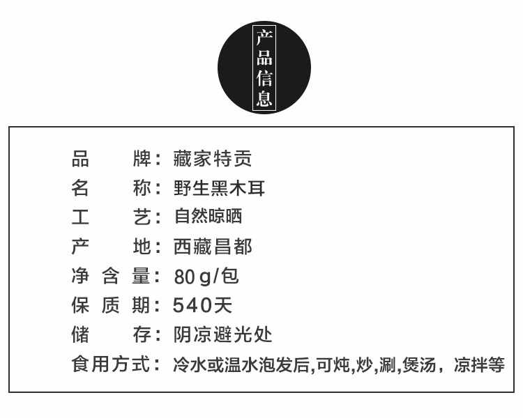 西藏特产 昌都藏家特贡野生黑木耳80g